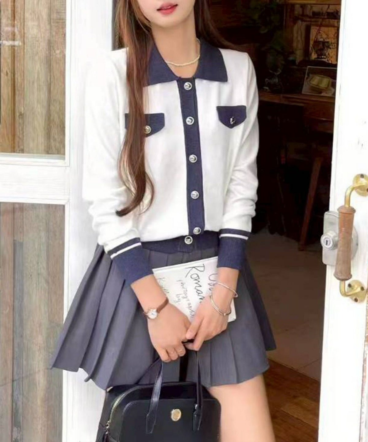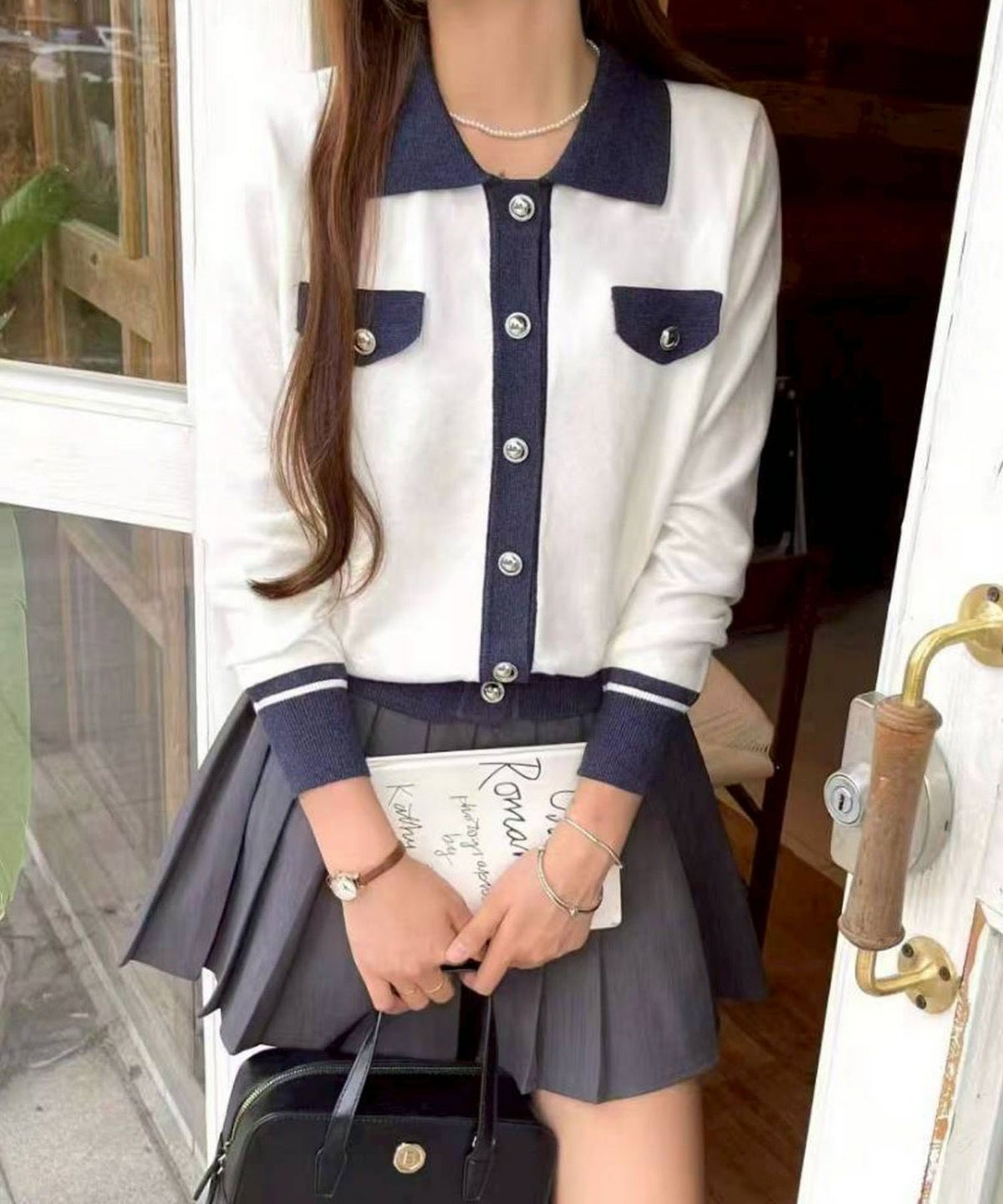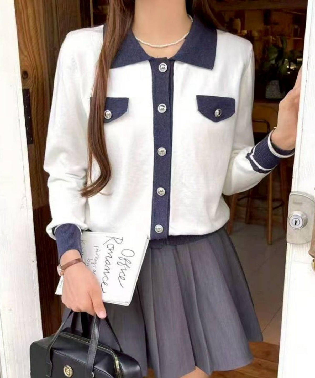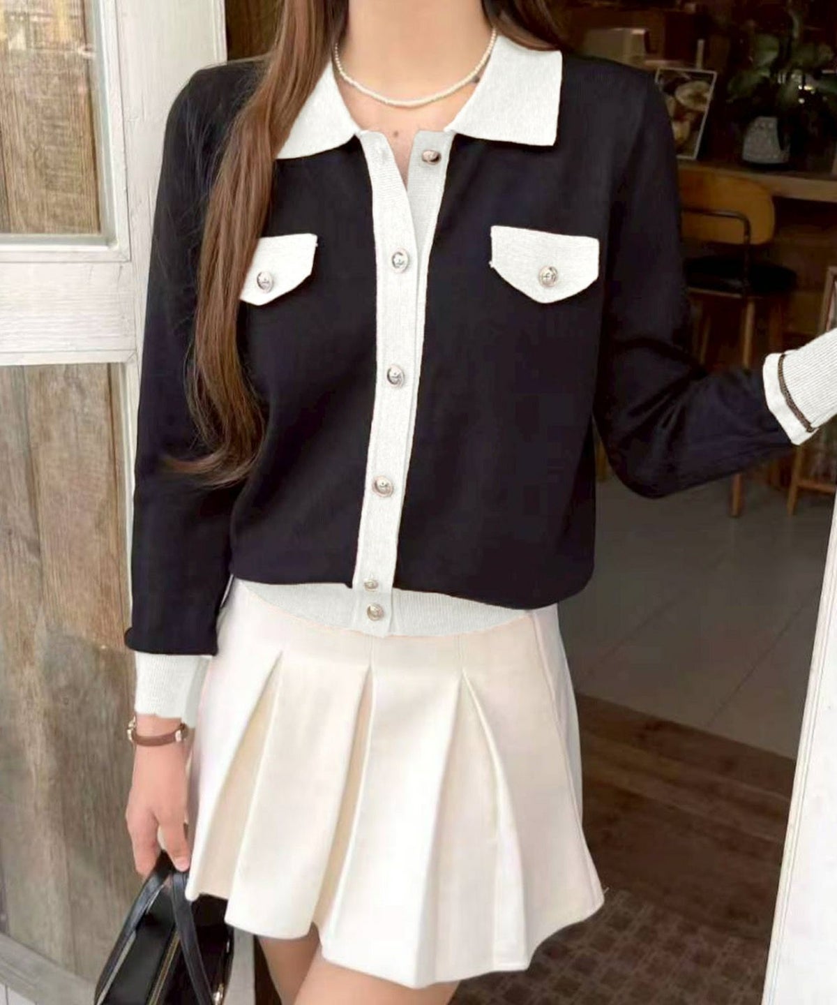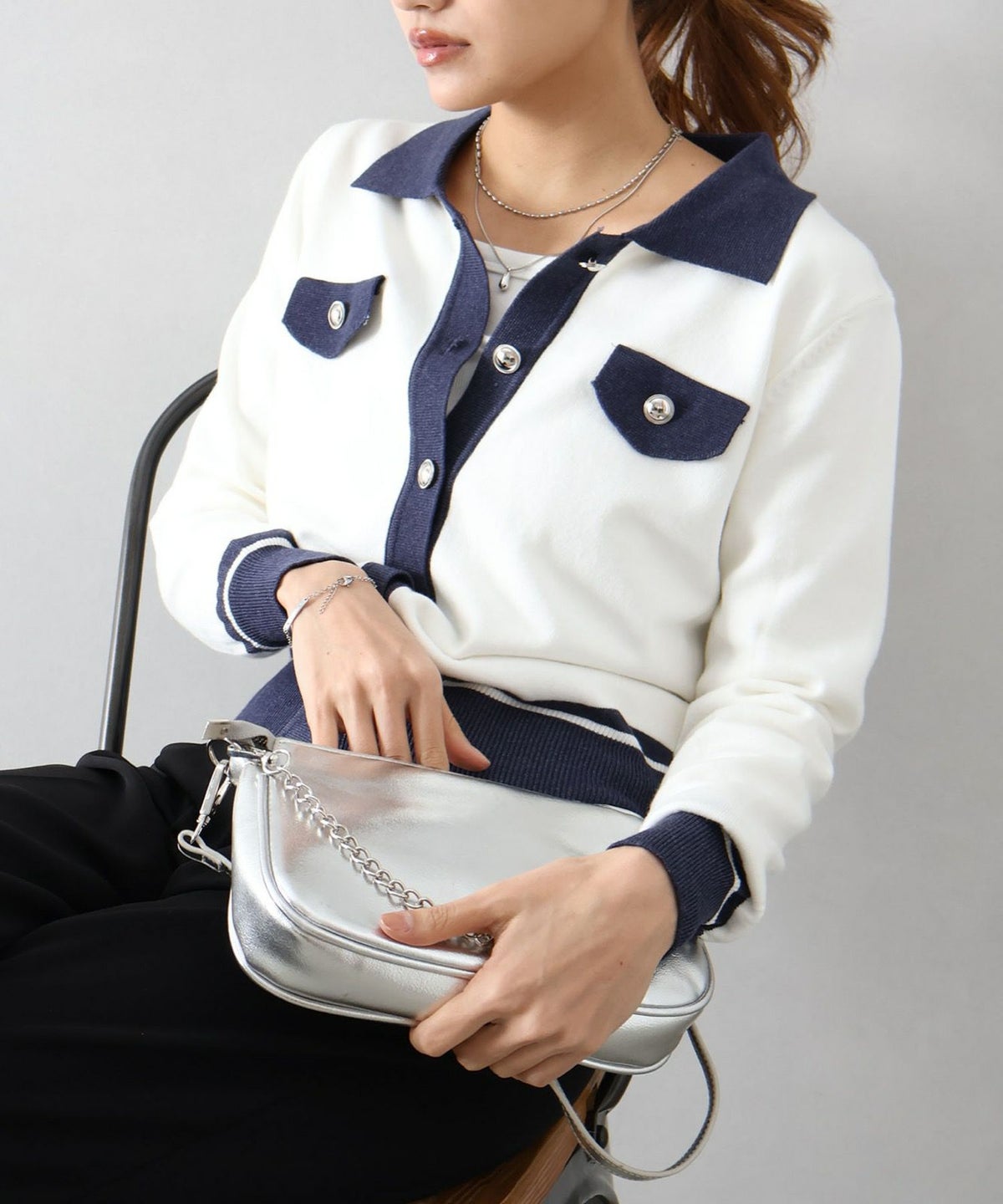 バイカラー衿付カーディガン