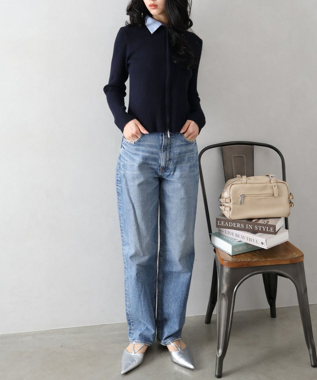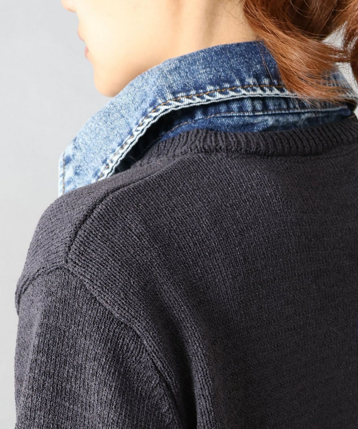 デニム切替ケーブルカーディガン