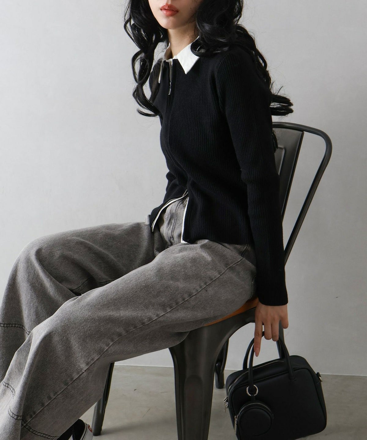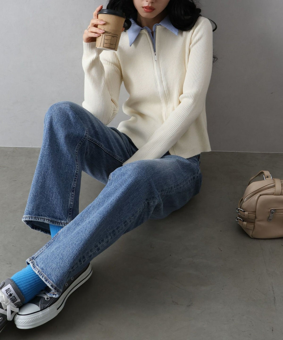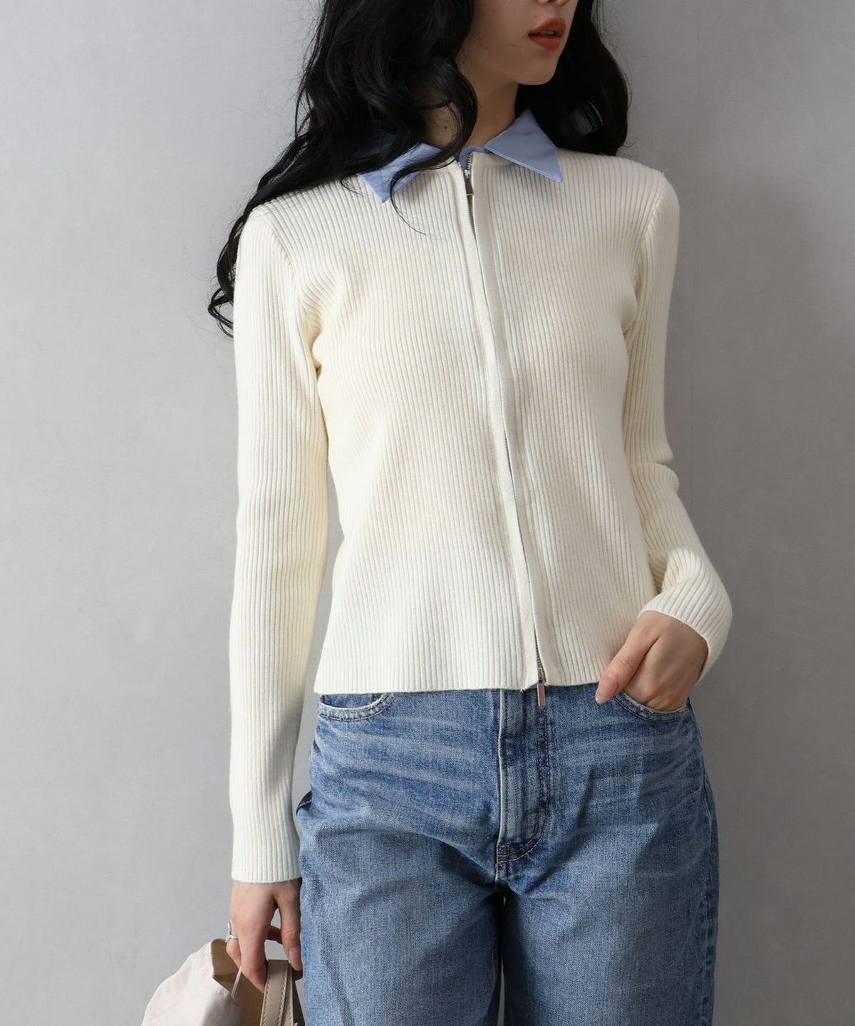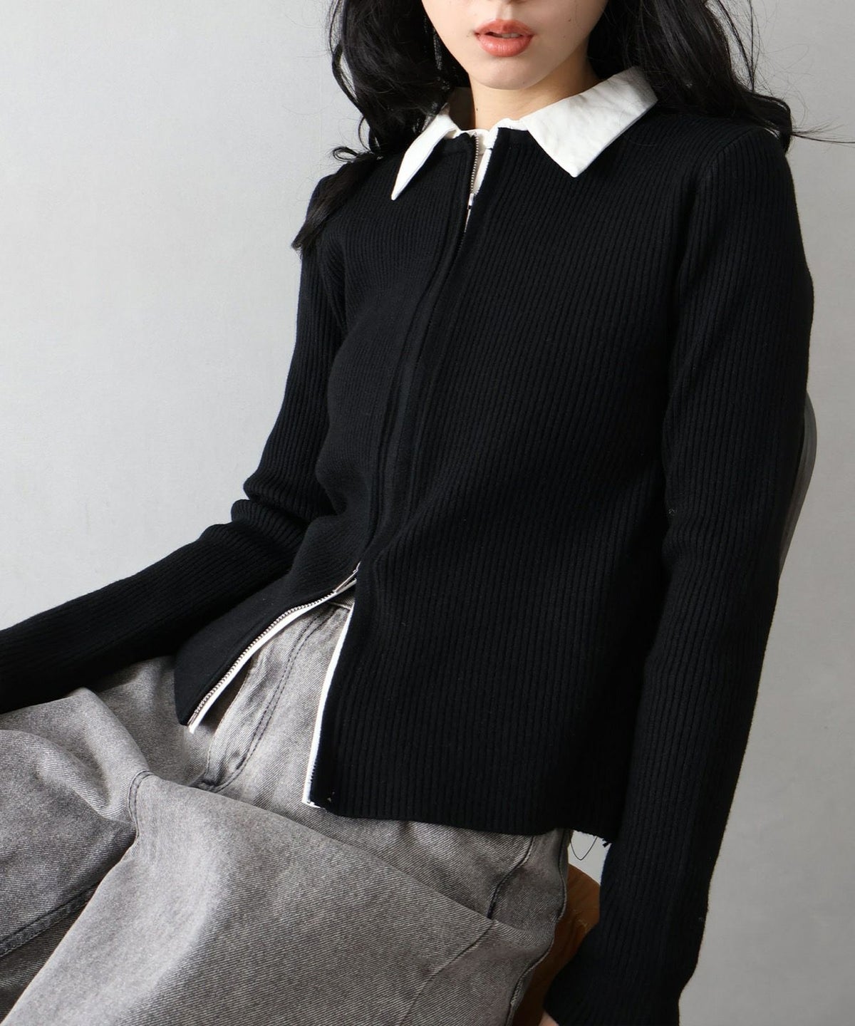 配色切替ジップカーディガン