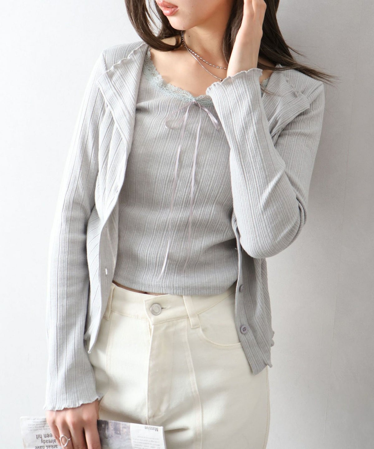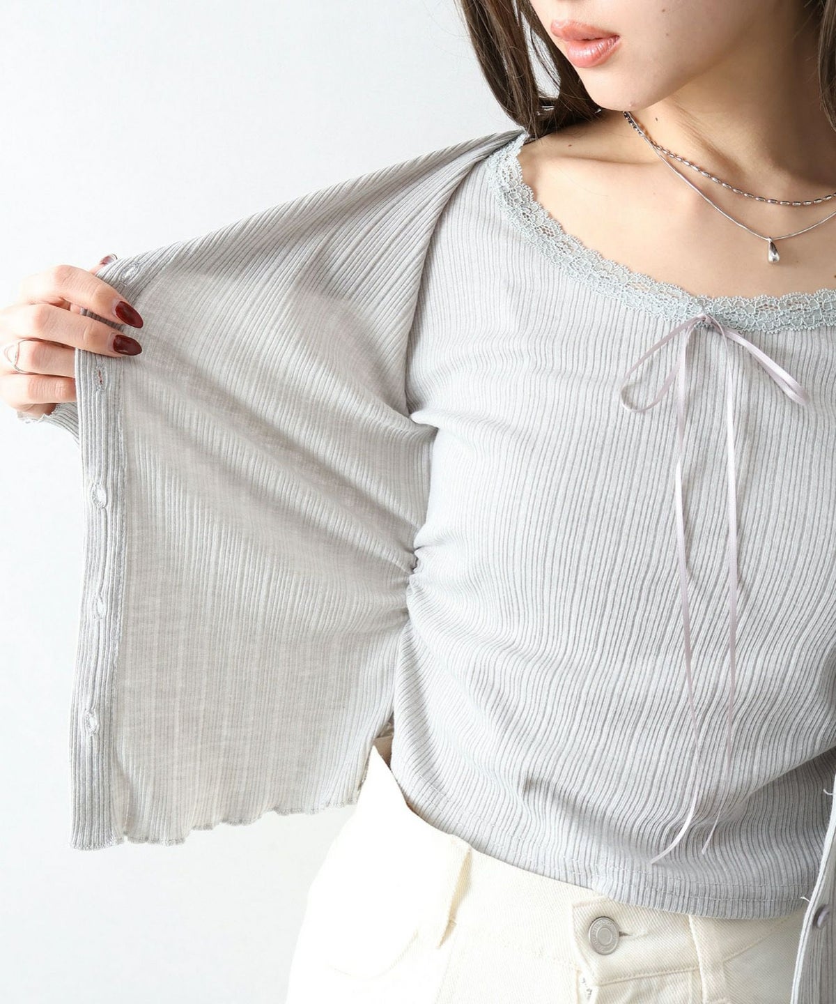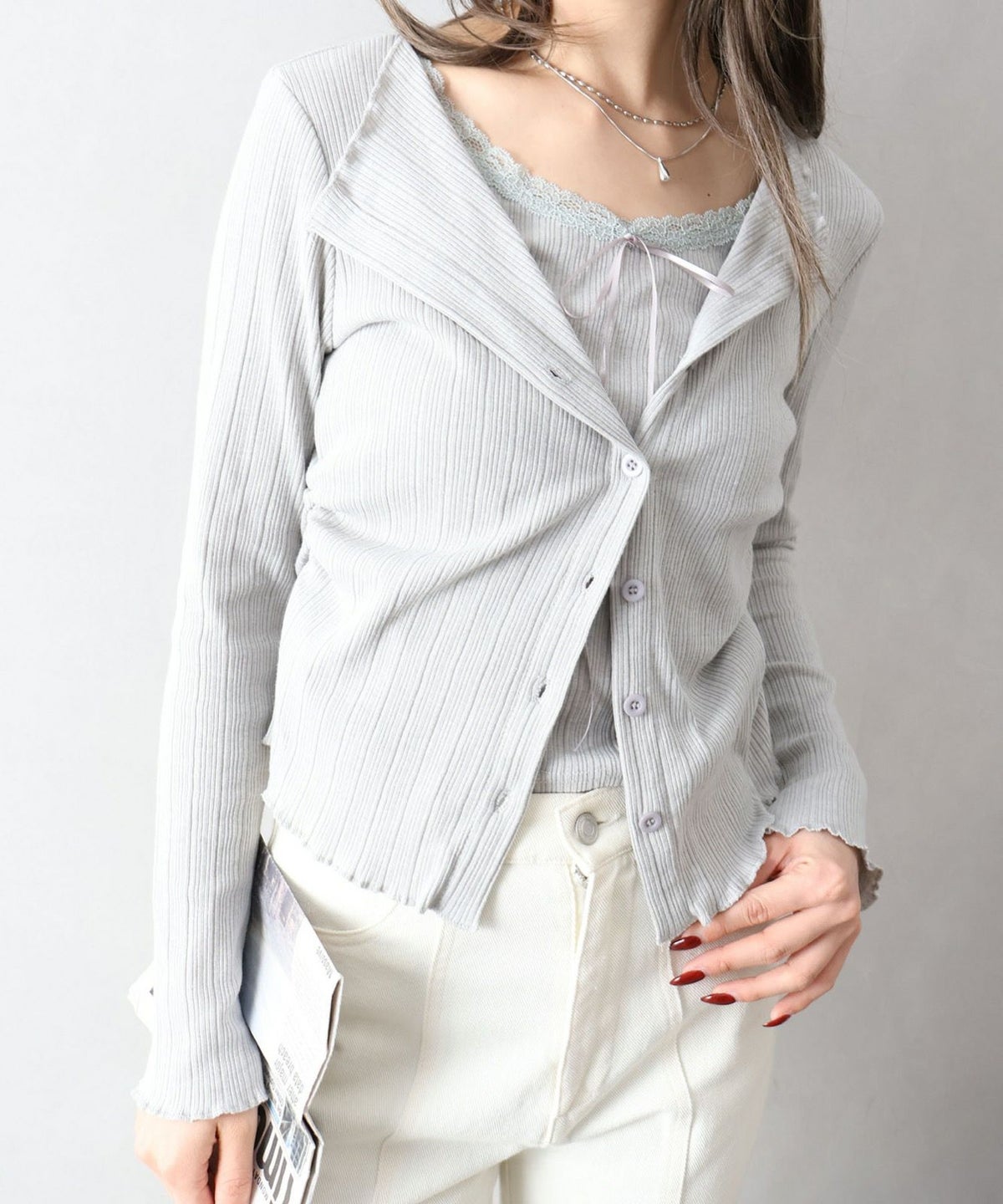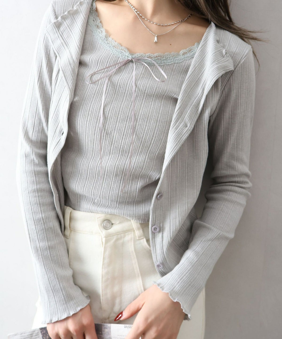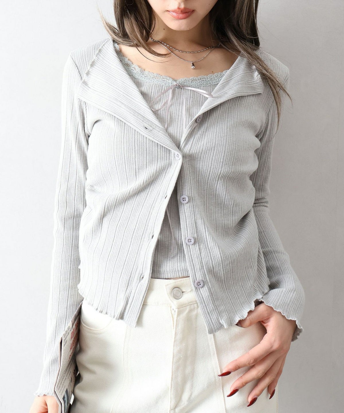 レース付フェイクカーディガン