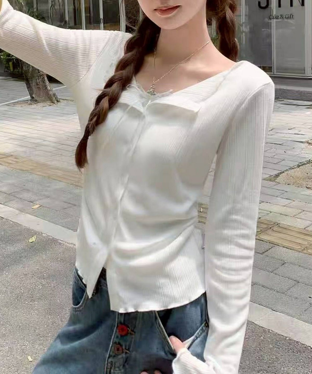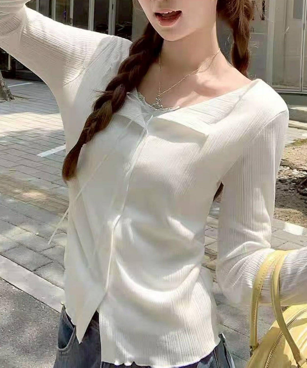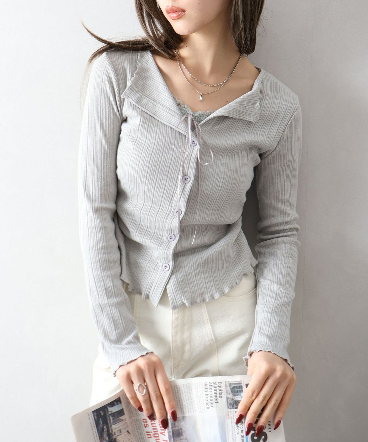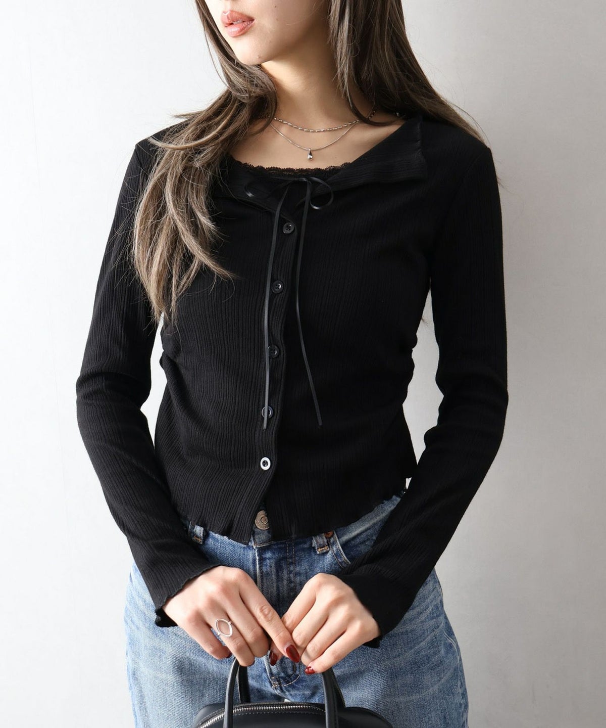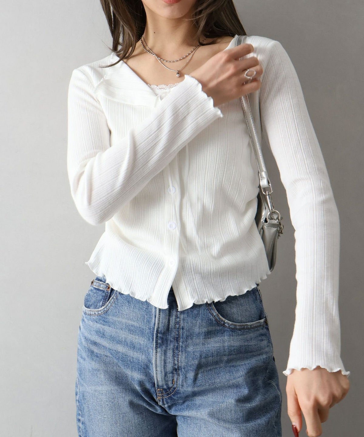 レース付フェイクカーディガン