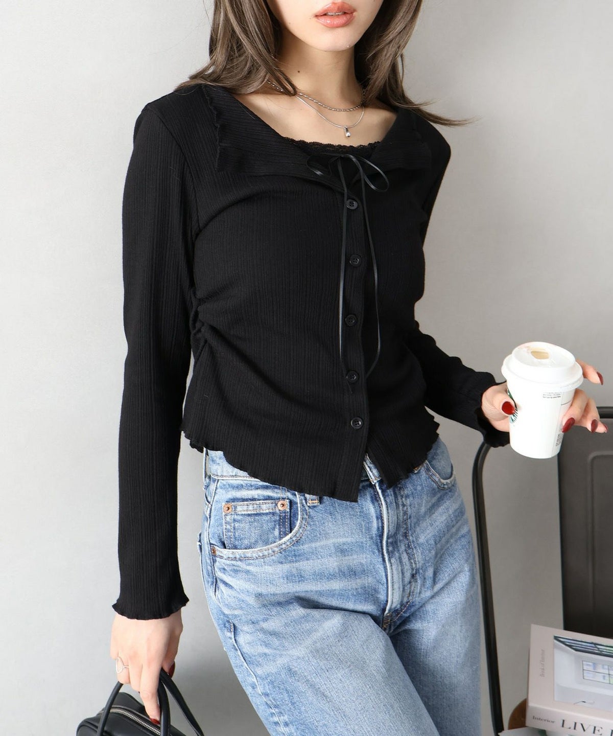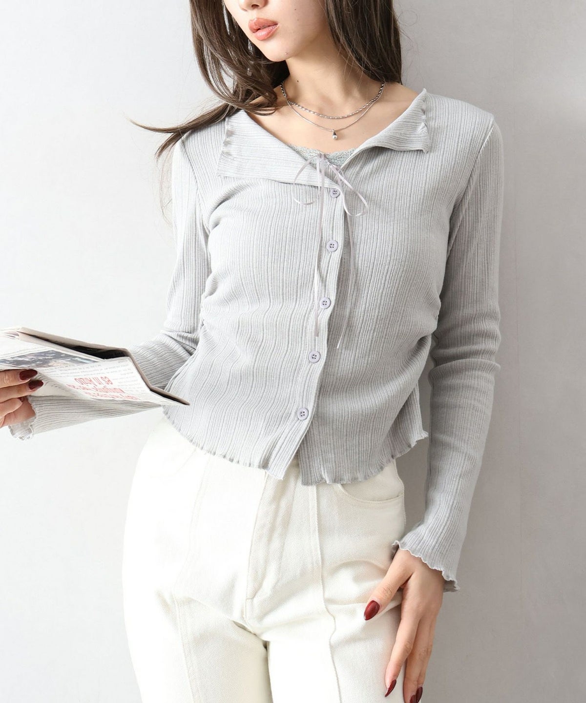 ドットチュールリブカーディガン