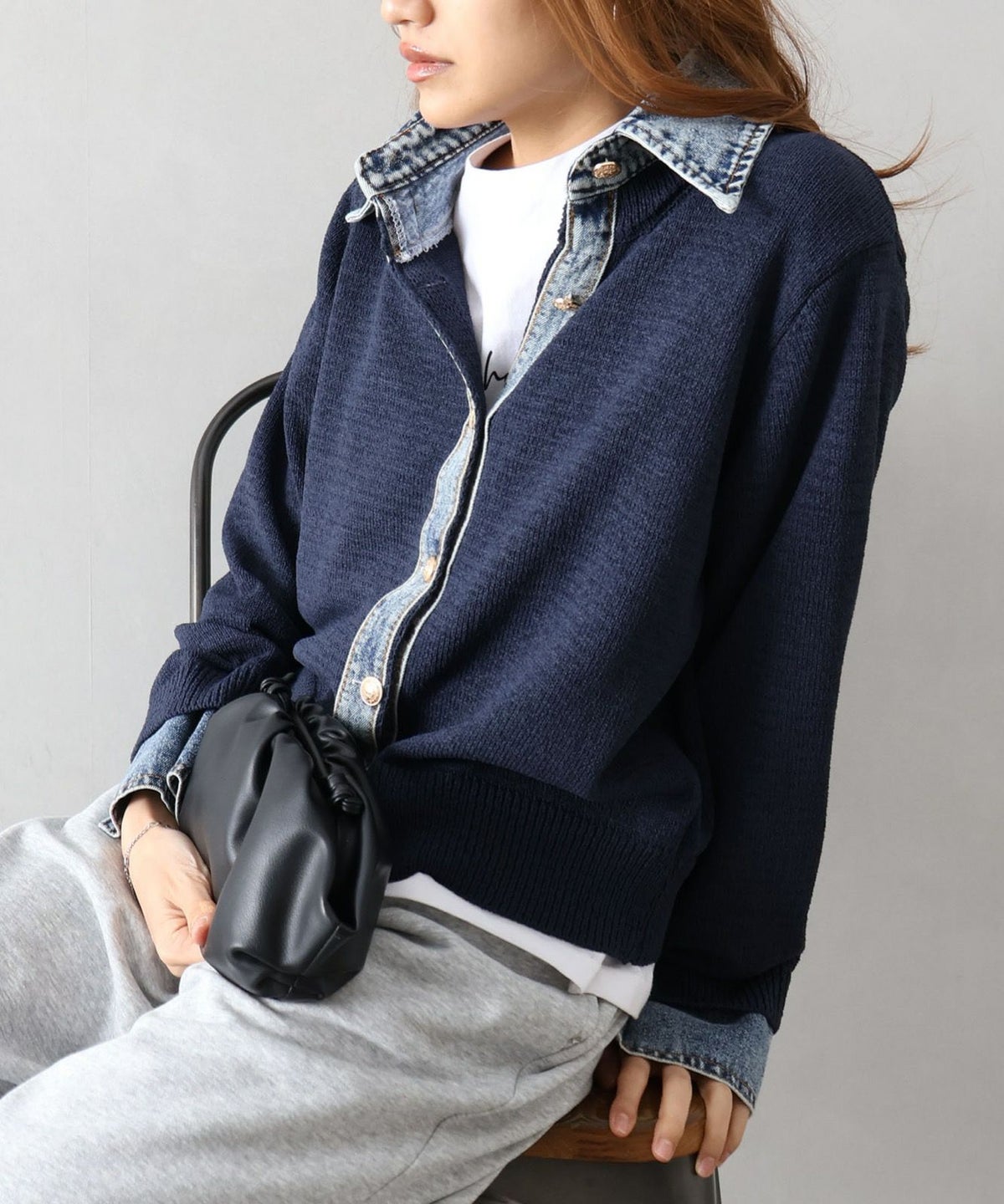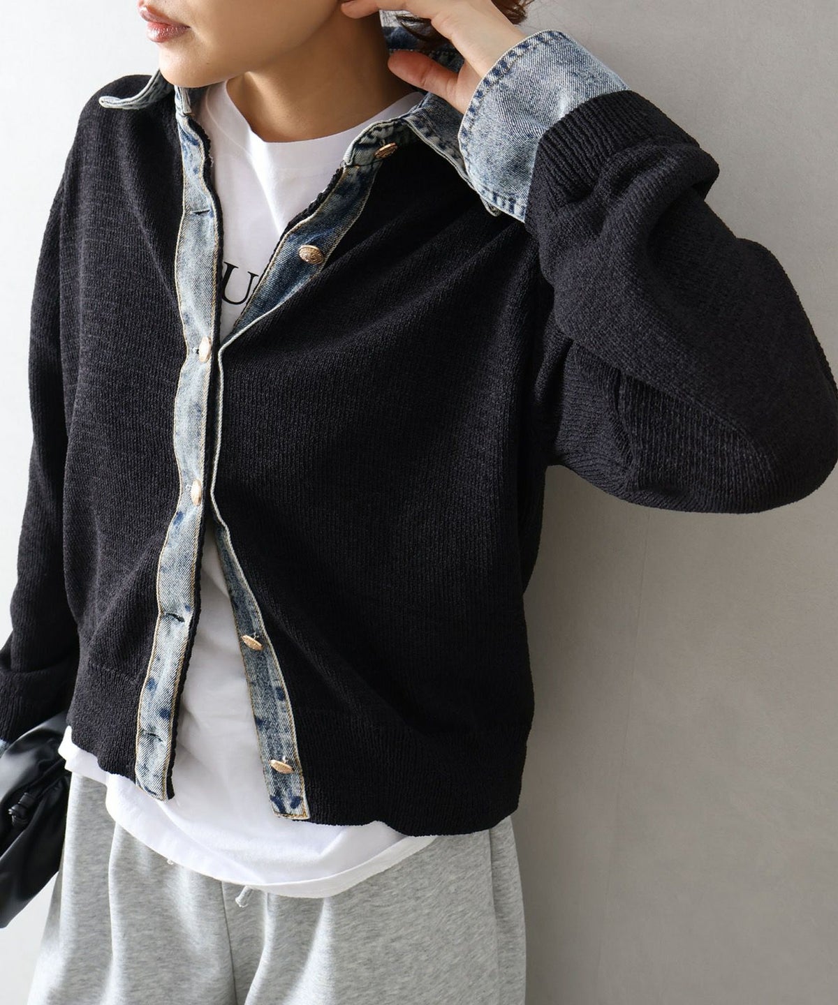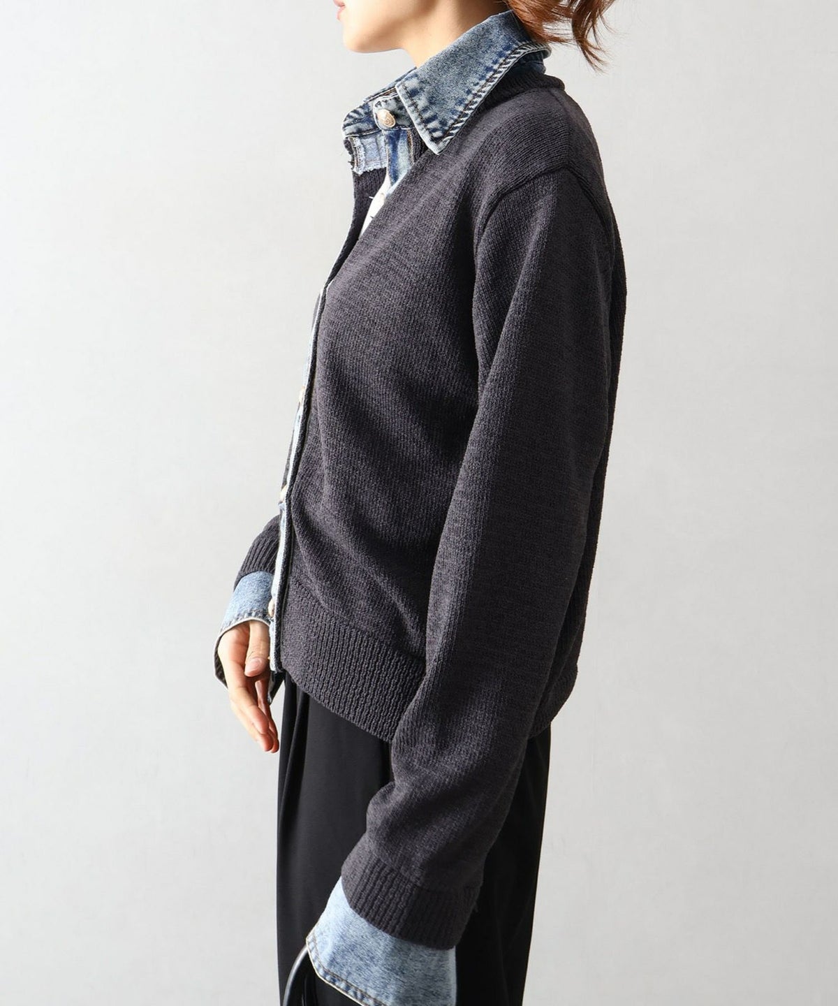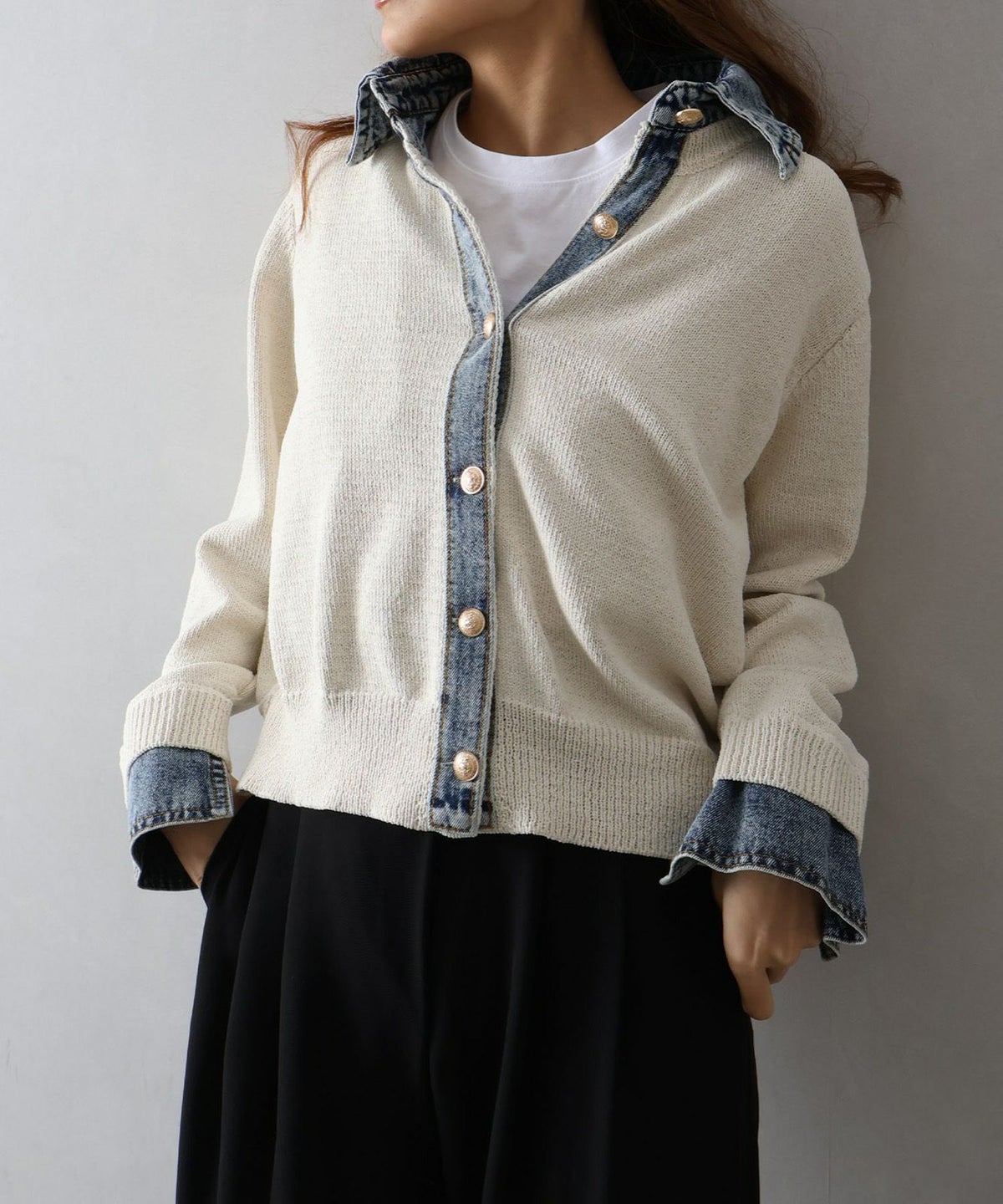 デニム切替レイヤードカーディガン