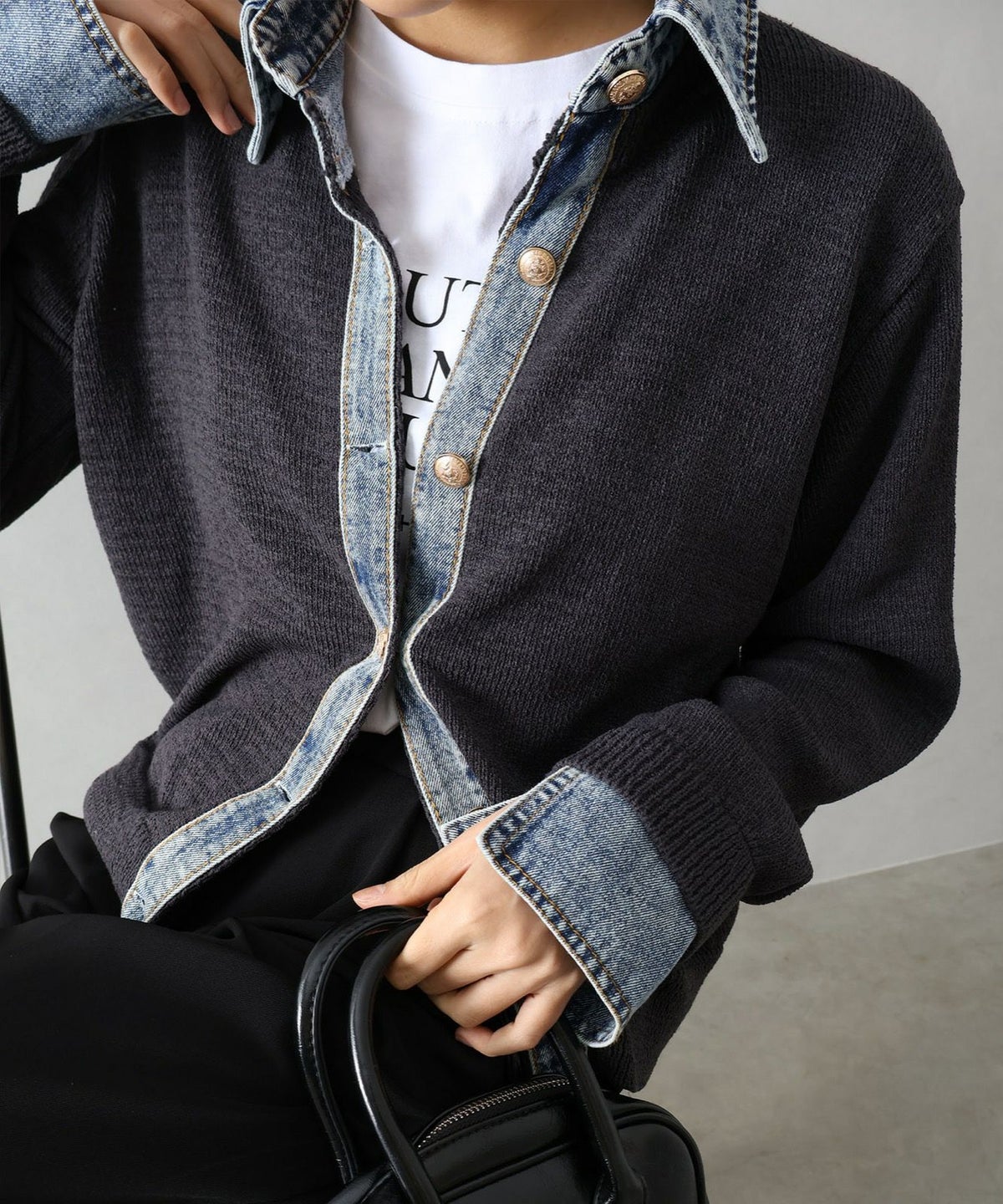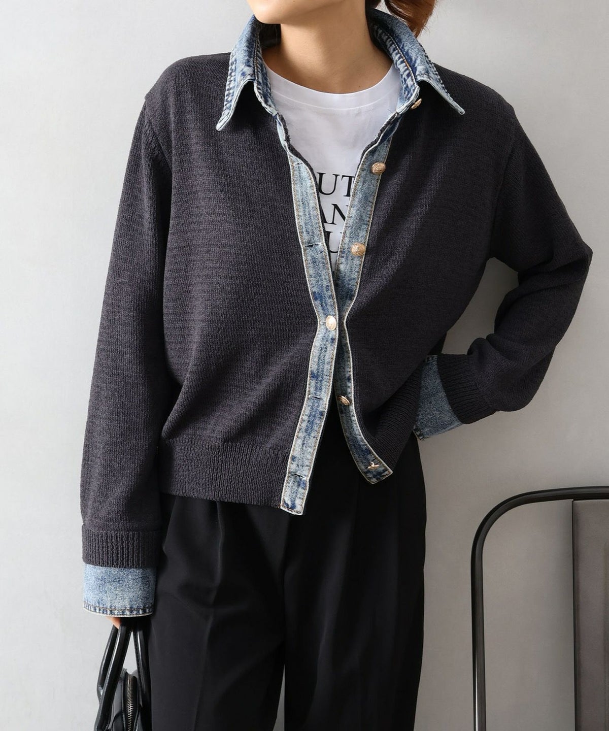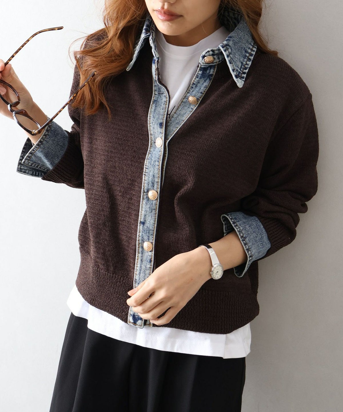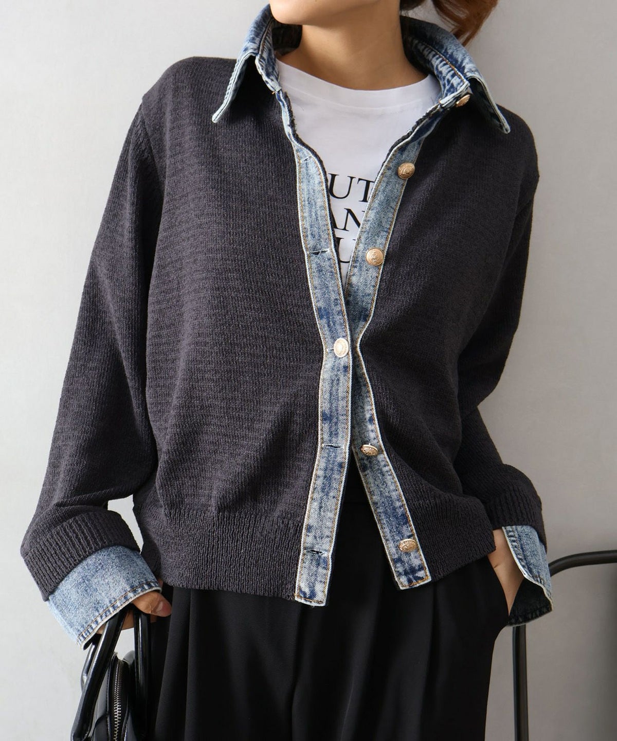 デニム切替レイヤードカーディガン