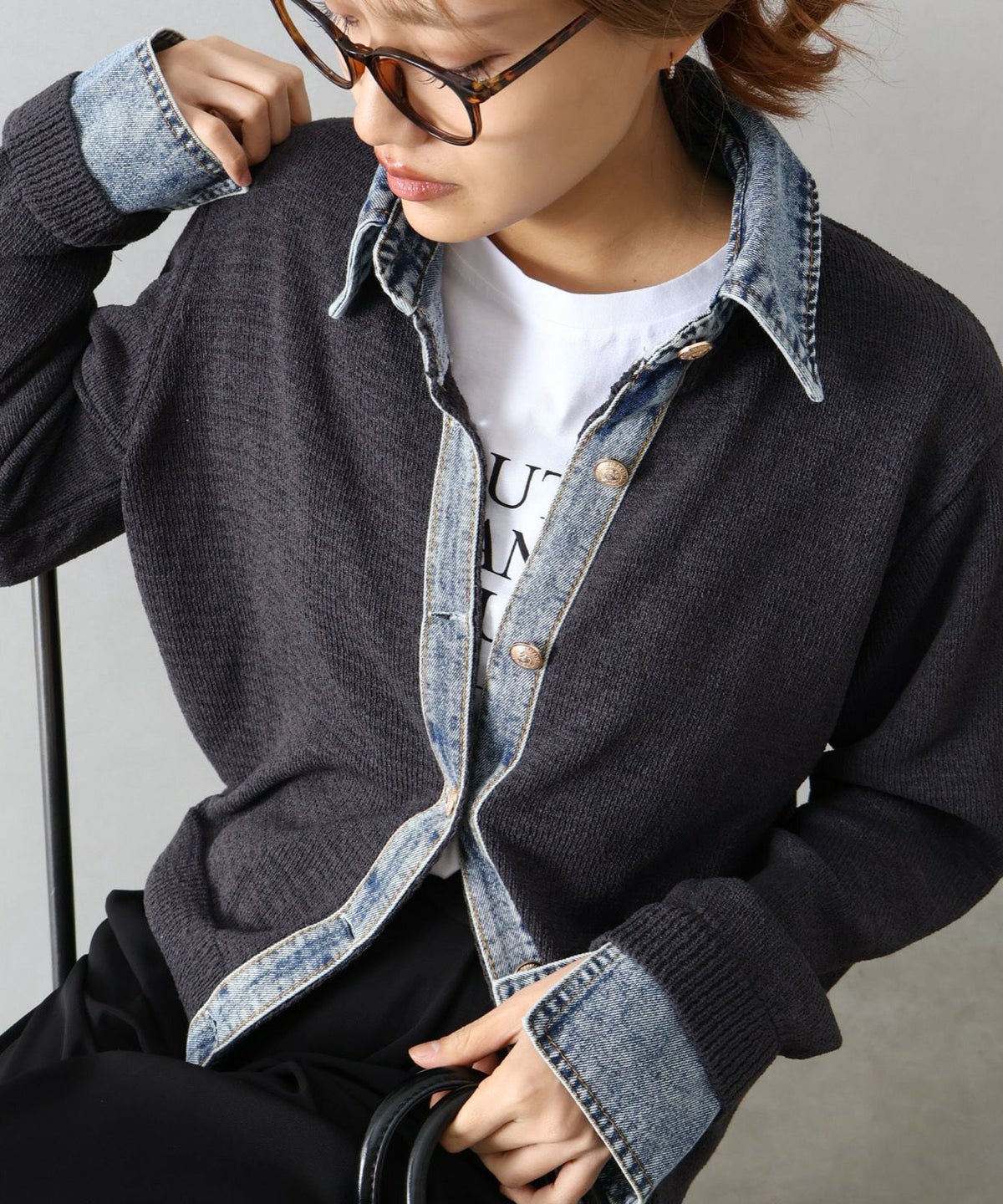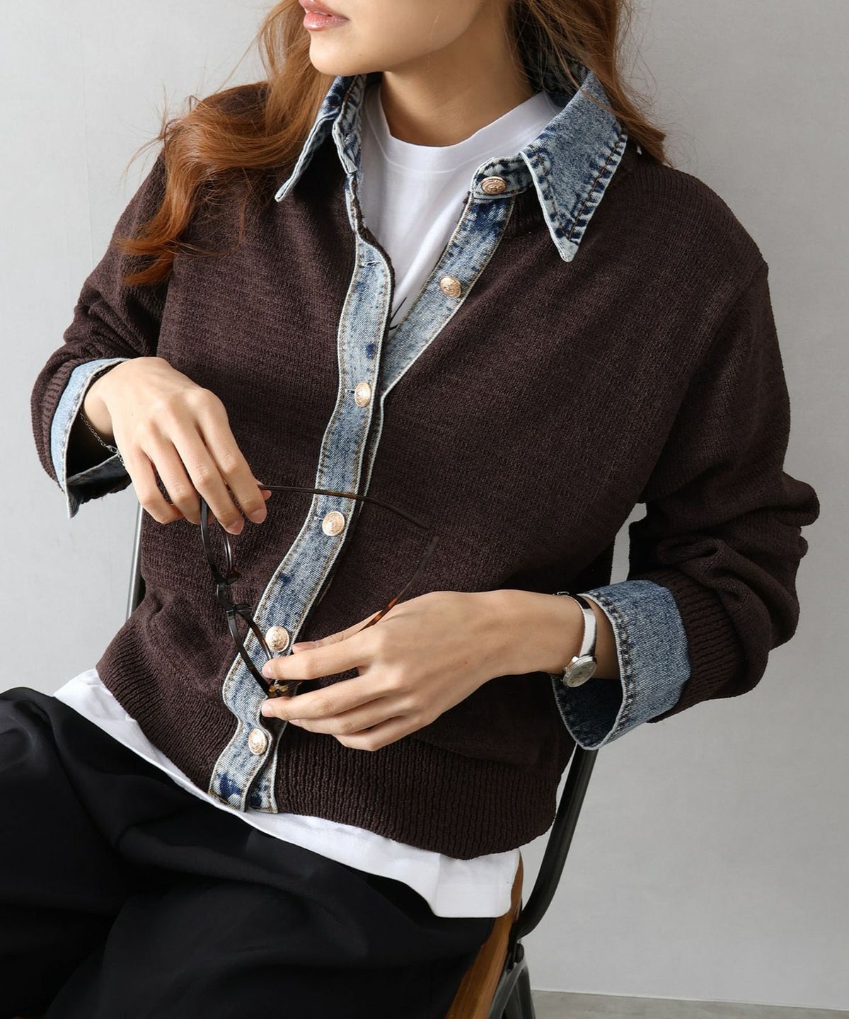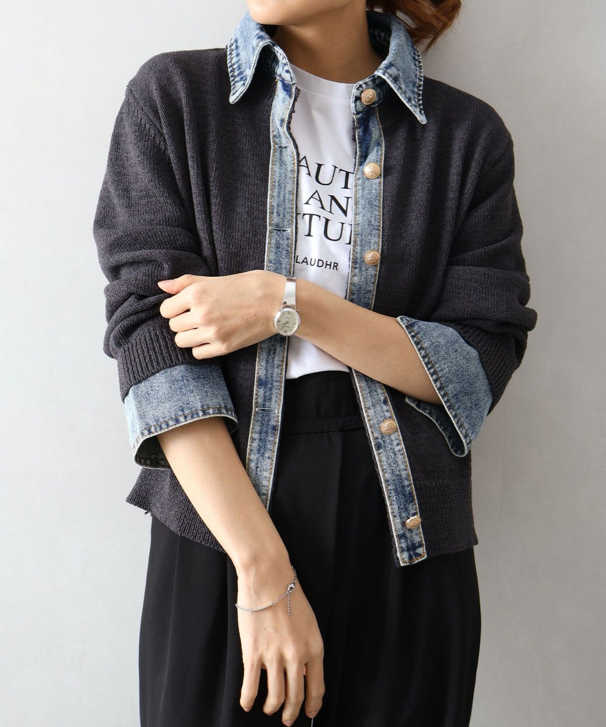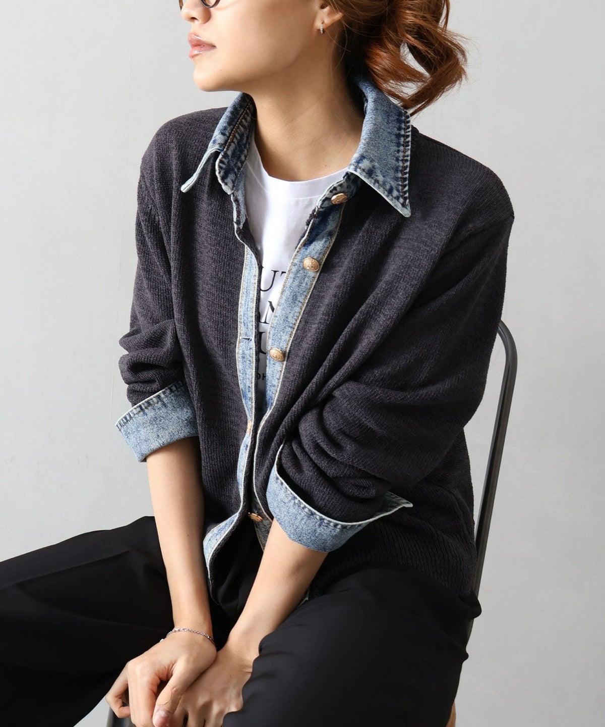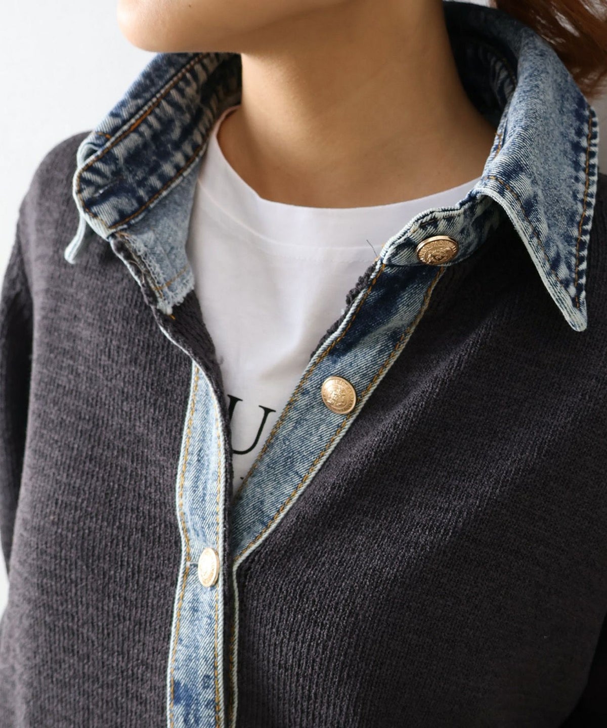 デニム切替レイヤードカーディガン
