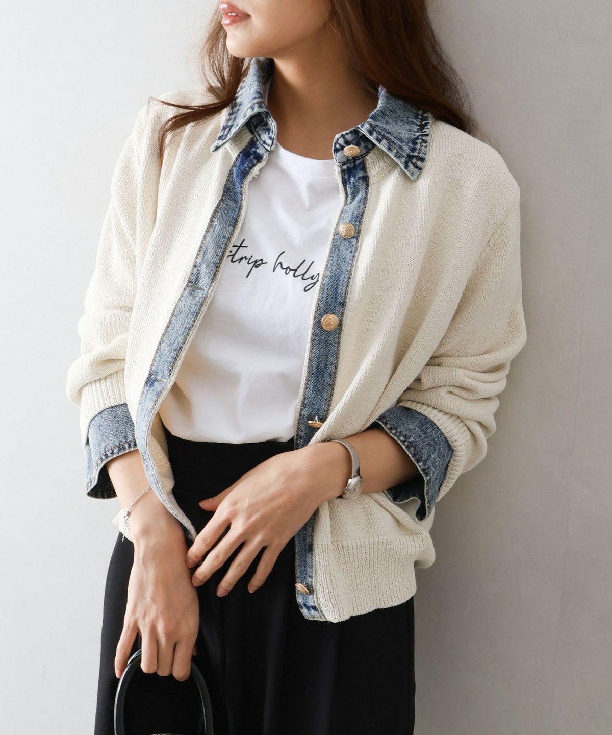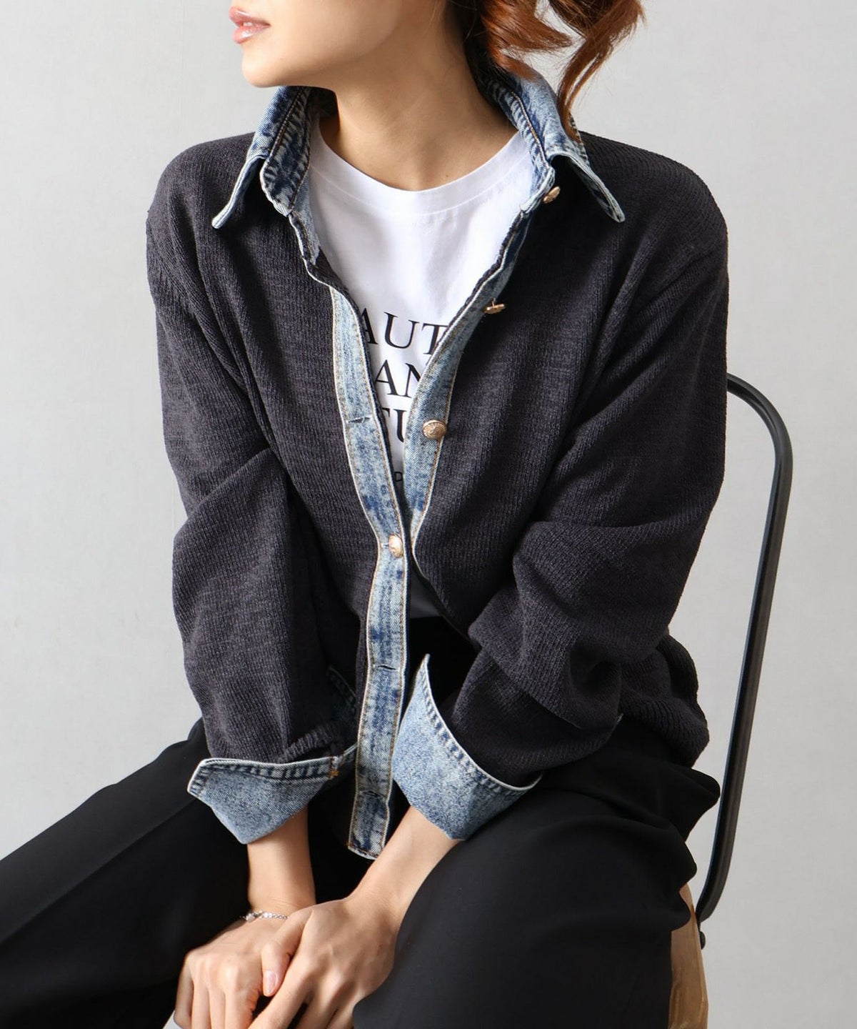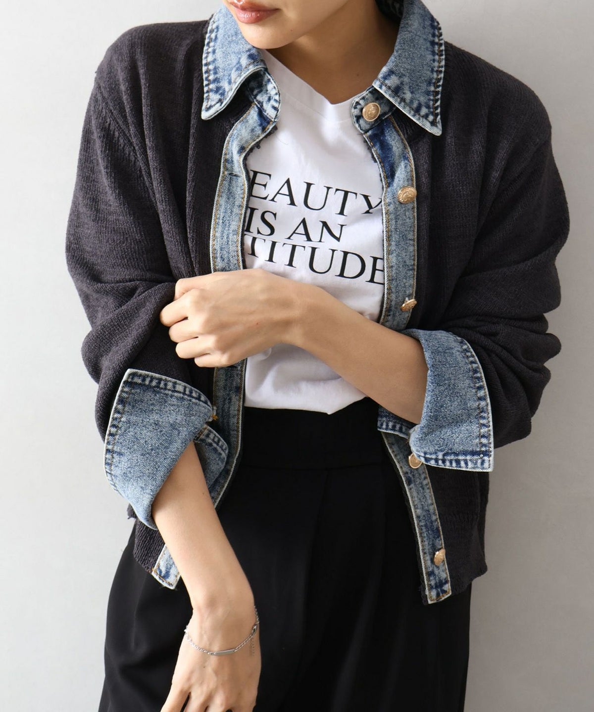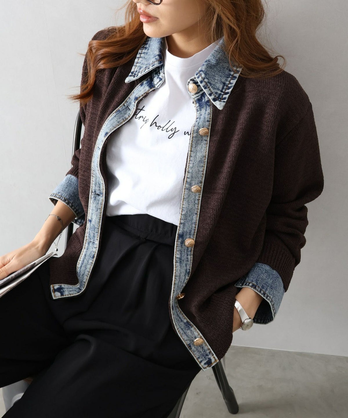 デニム切替レイヤードカーディガン