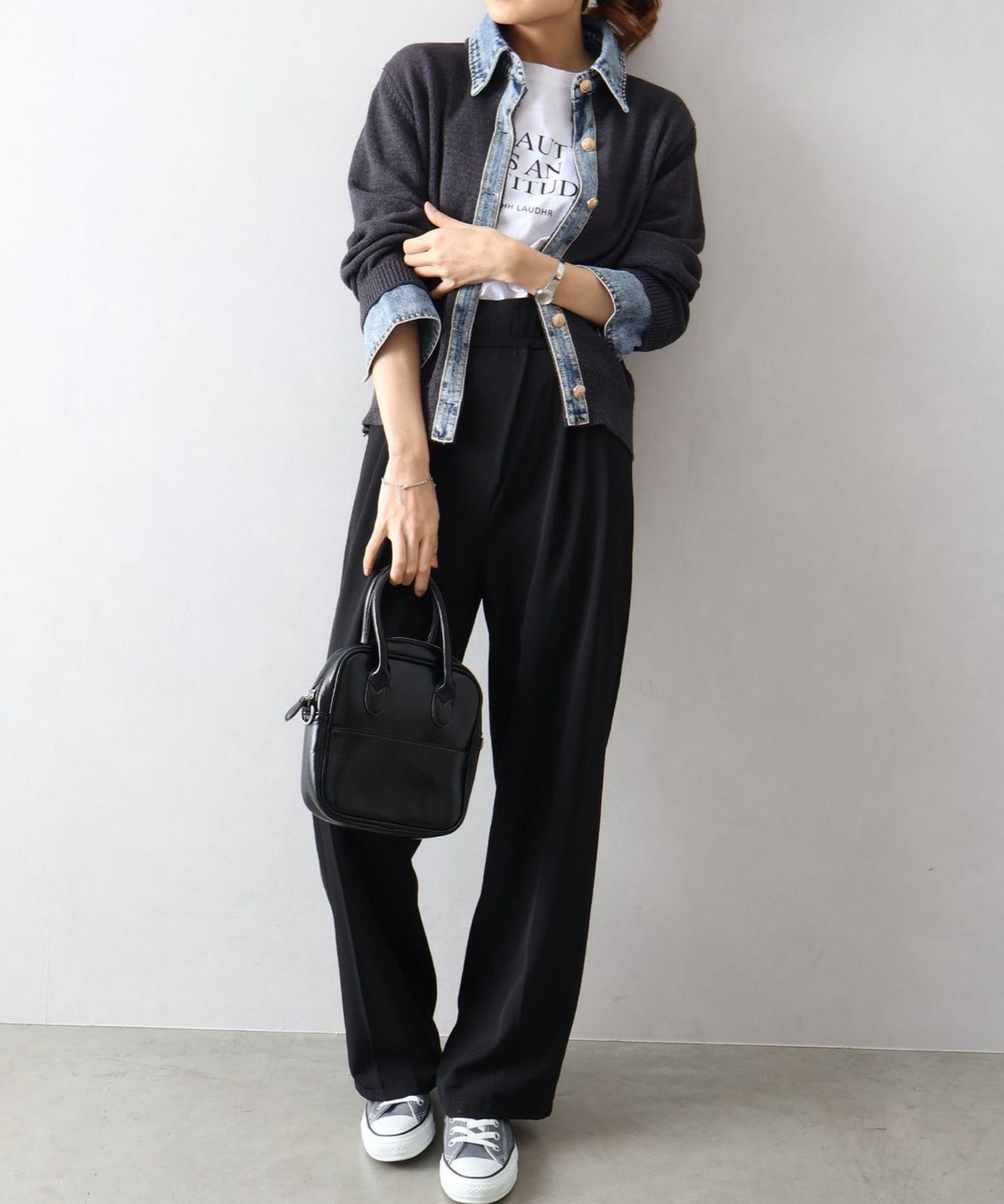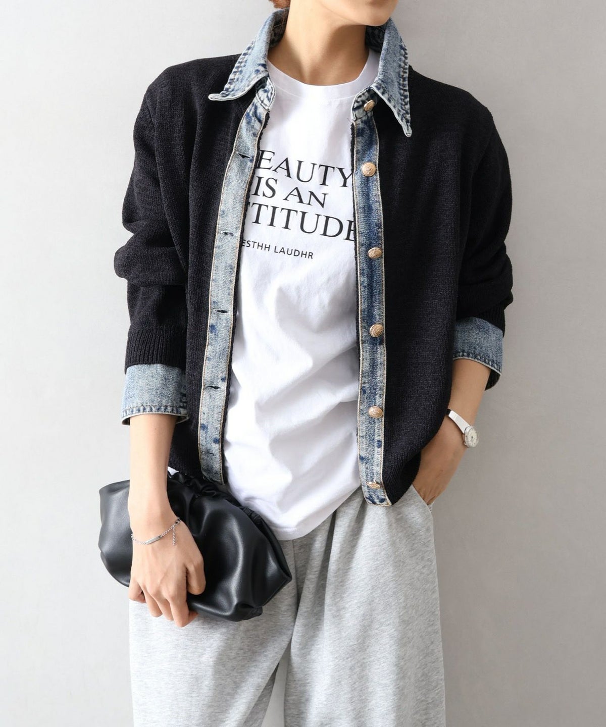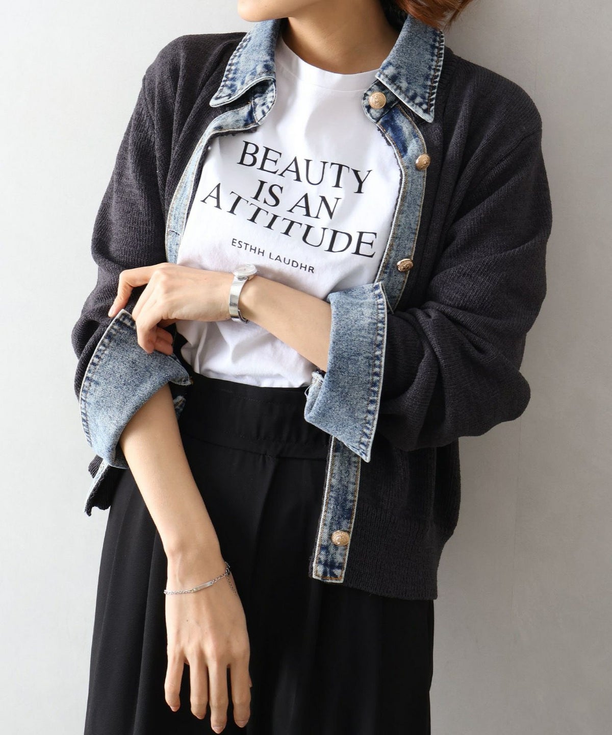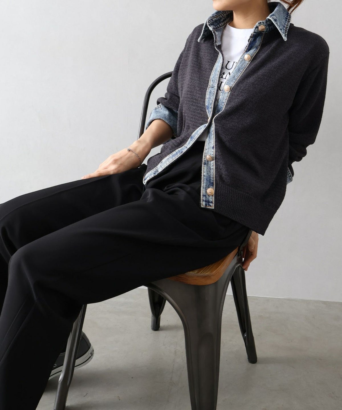 デニム切替レイヤードカーディガン