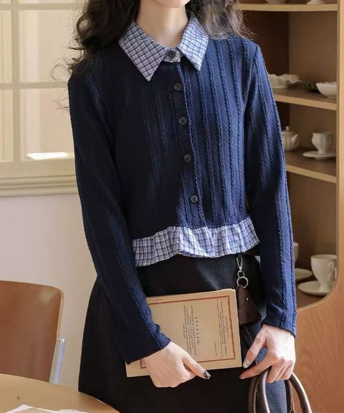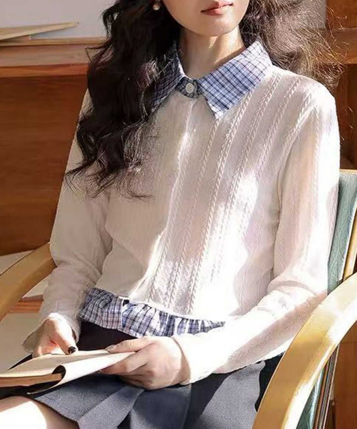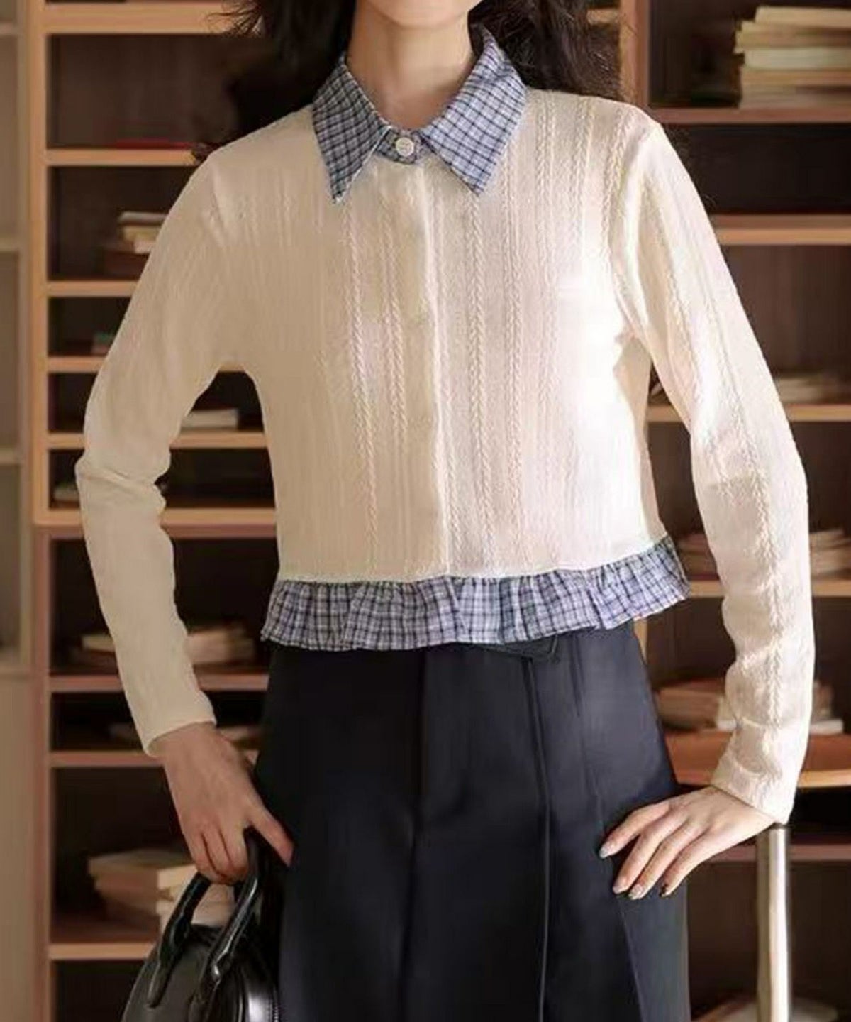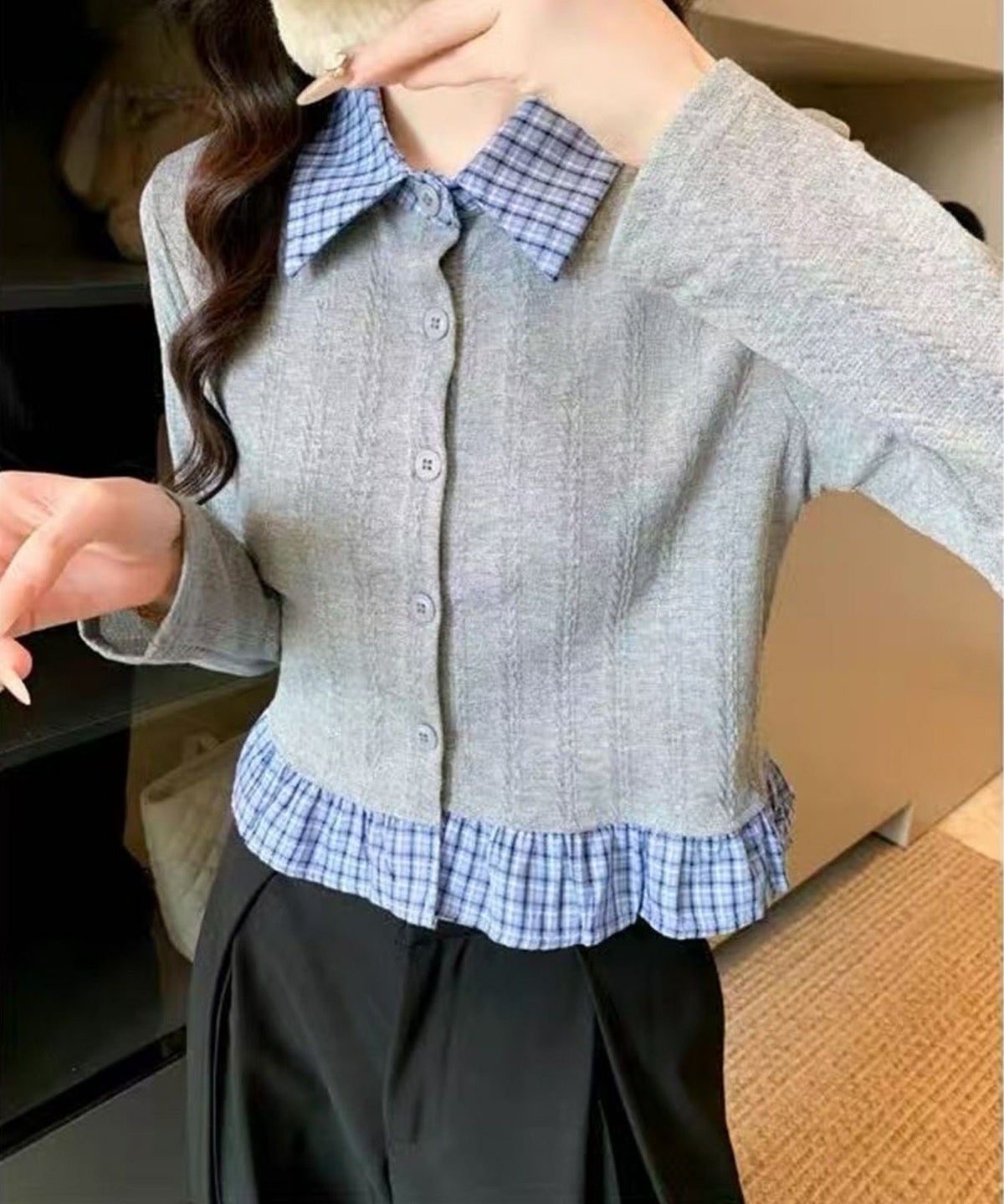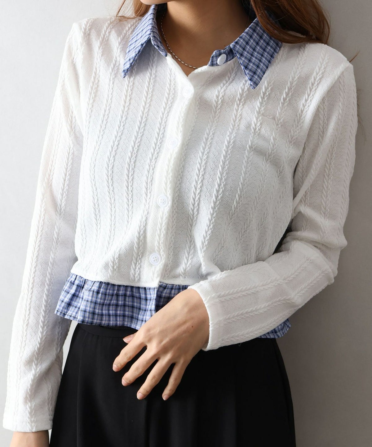 チェック切替フェイクレイヤードカーディガン