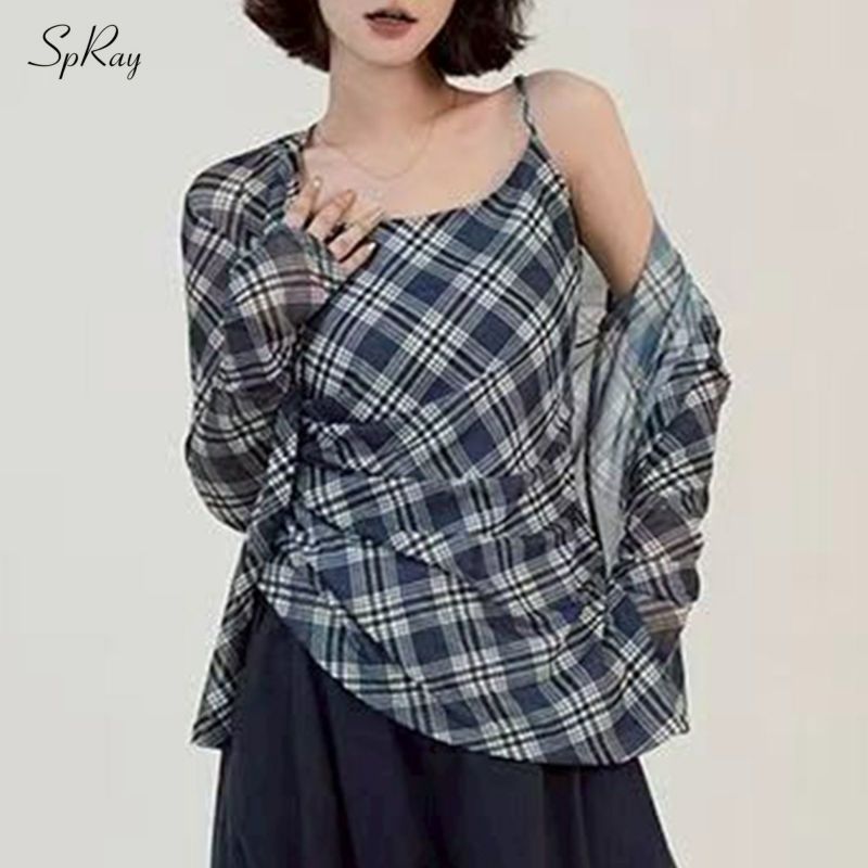 【SpRay 【2点セット】キャミソールセットシアーチェックカーディガン】