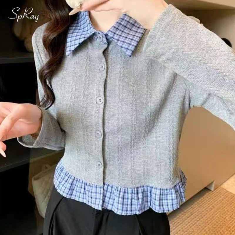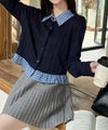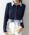 【SpRay チェック切替フェイクレイヤードカーディガン】
