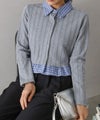 一枚でレイヤードスタイルが完成する、チェック柄切り替えのドッキングカーディガンです。立体感のあるケーブル編みのボディに、襟と裾のチェック生地がアクセントになった華やかなデザインが特徴です。これ一枚で手軽にトレンド感のある着こなしが楽しめる、デイリーユースにぴったりのアイテムです。