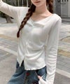 重ね着風デザインが一枚で完成する、フェイクレイヤードトップス。