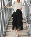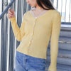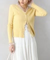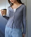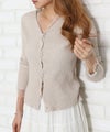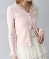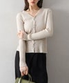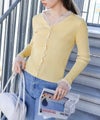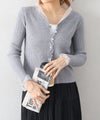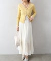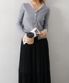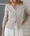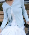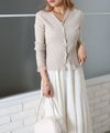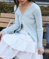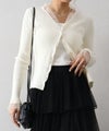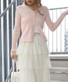 細めのリブ編みニットに、ドット柄チュールを重ねたフェミニンムード漂うカーディガン。