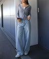 フロントは上品なパール調ボタン仕様で、きれいめにもカジュアルにも相性◎