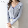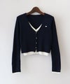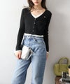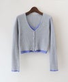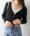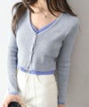 首元や裾の配色ラインが、重ね着をしているようなこなれ感を演出するレイヤード風のリブカーディガンです。