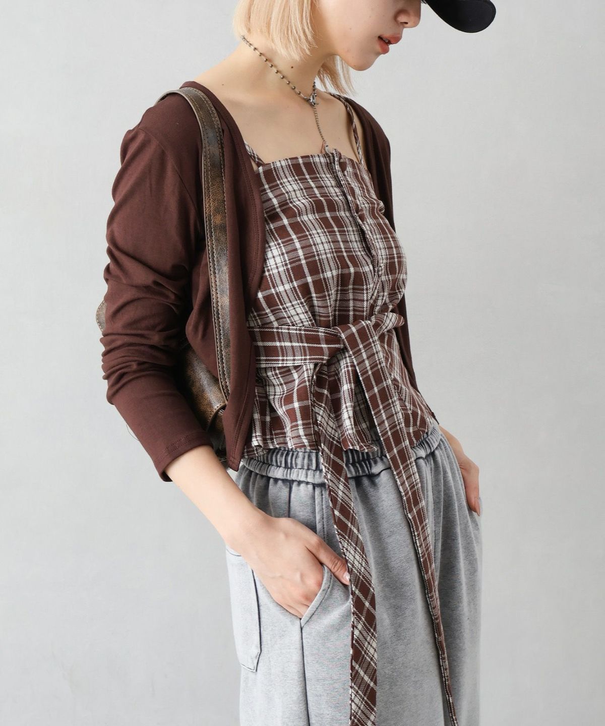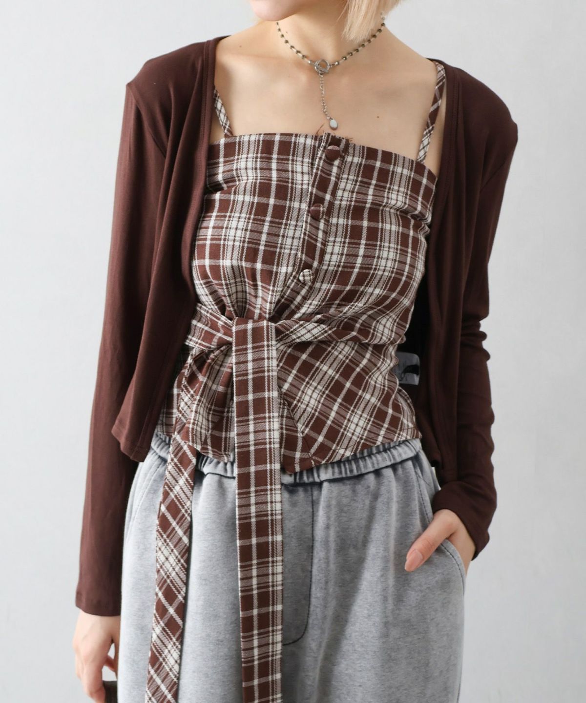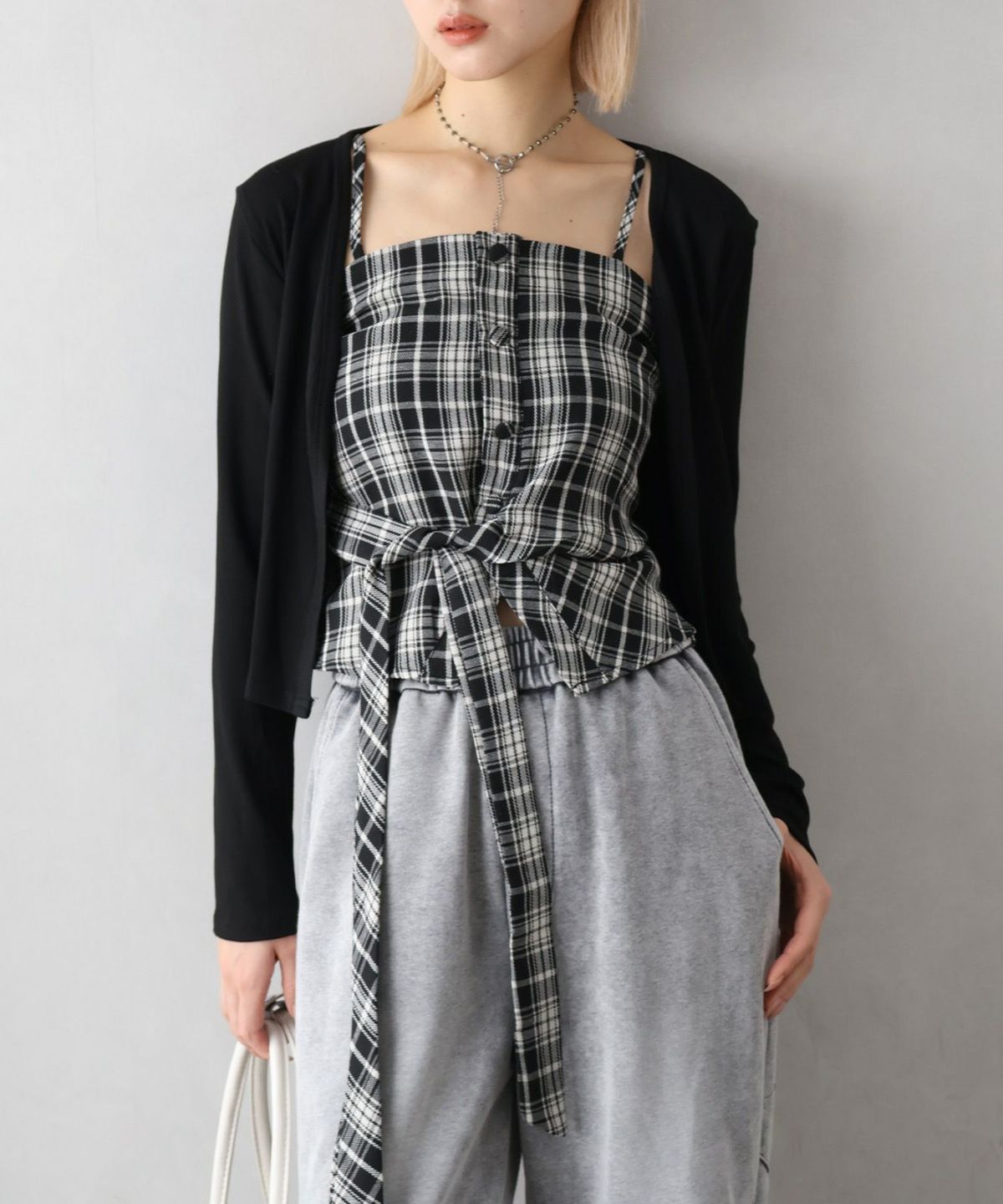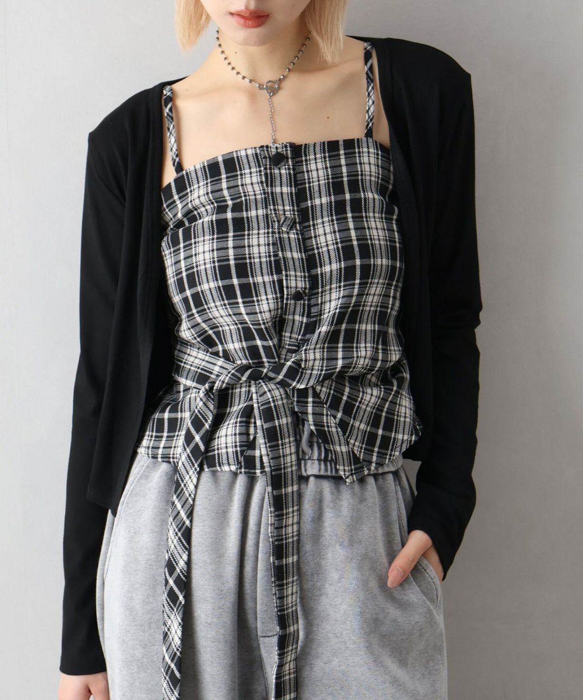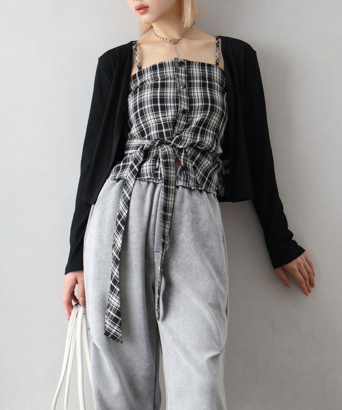 【2点セット】キャミソールセットシアーチェックカーディガン