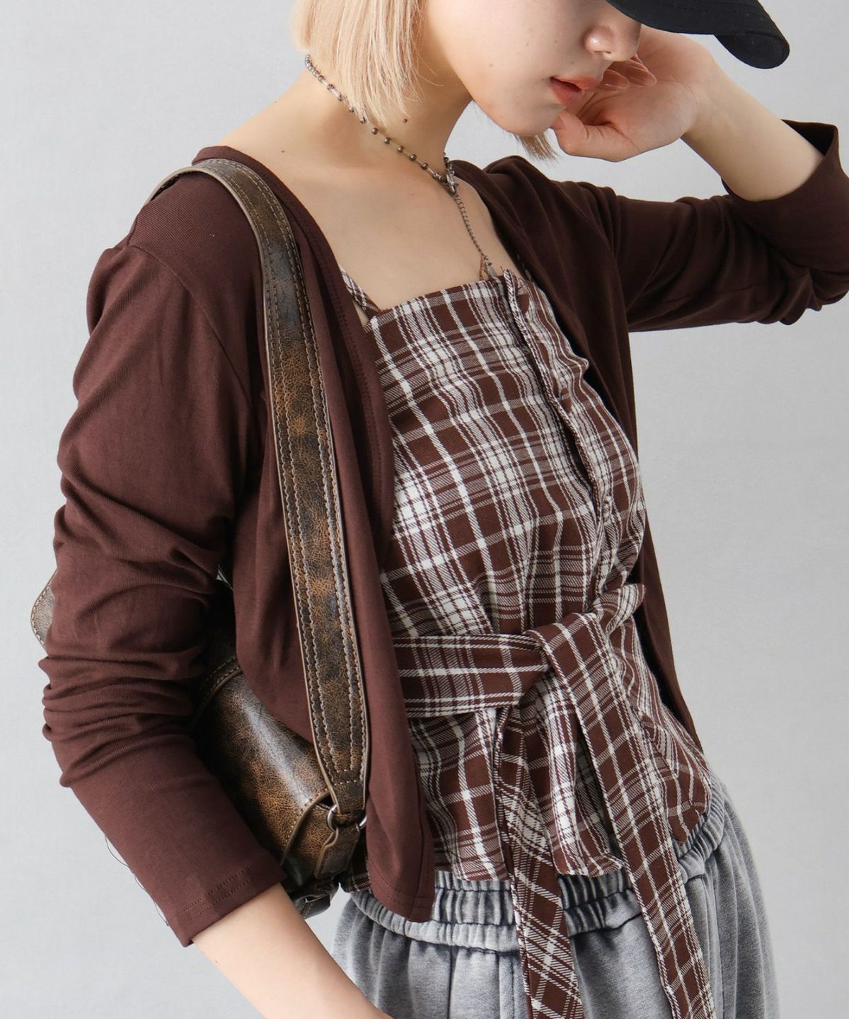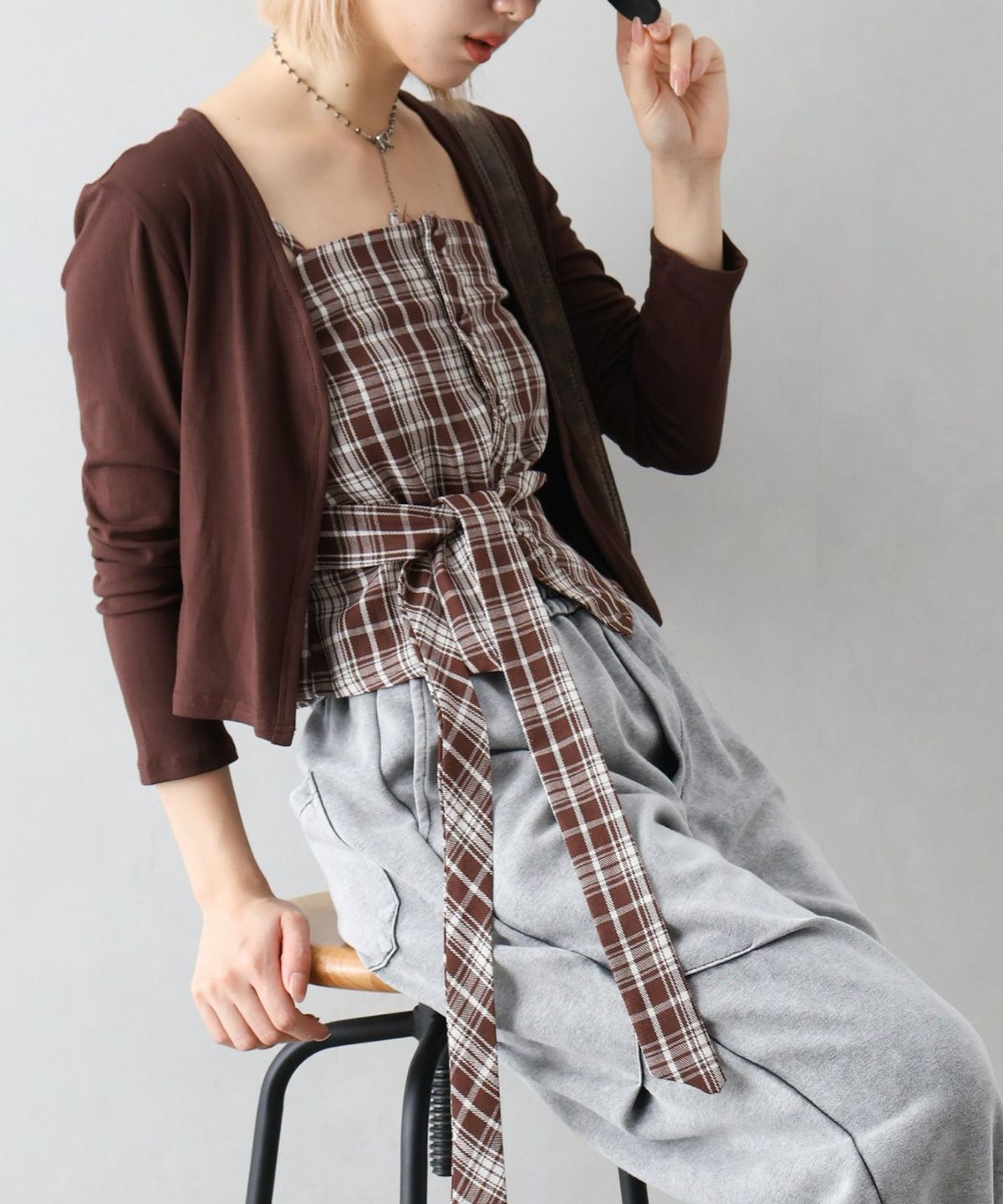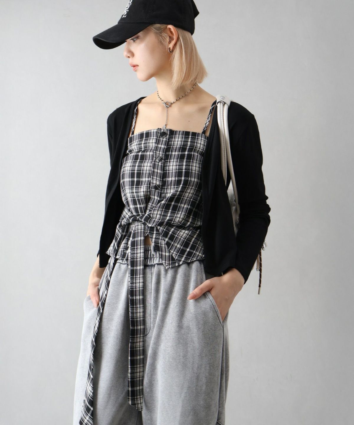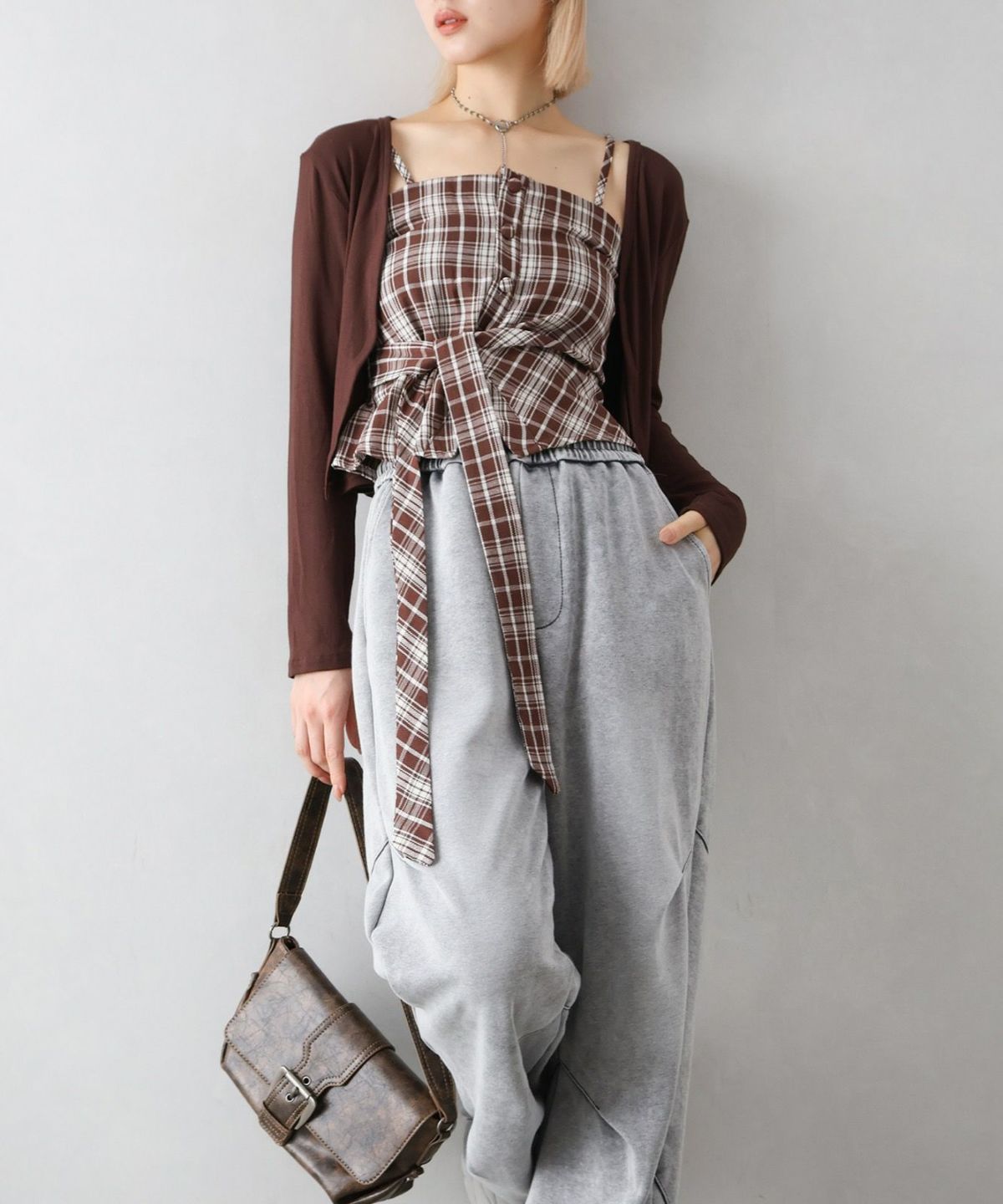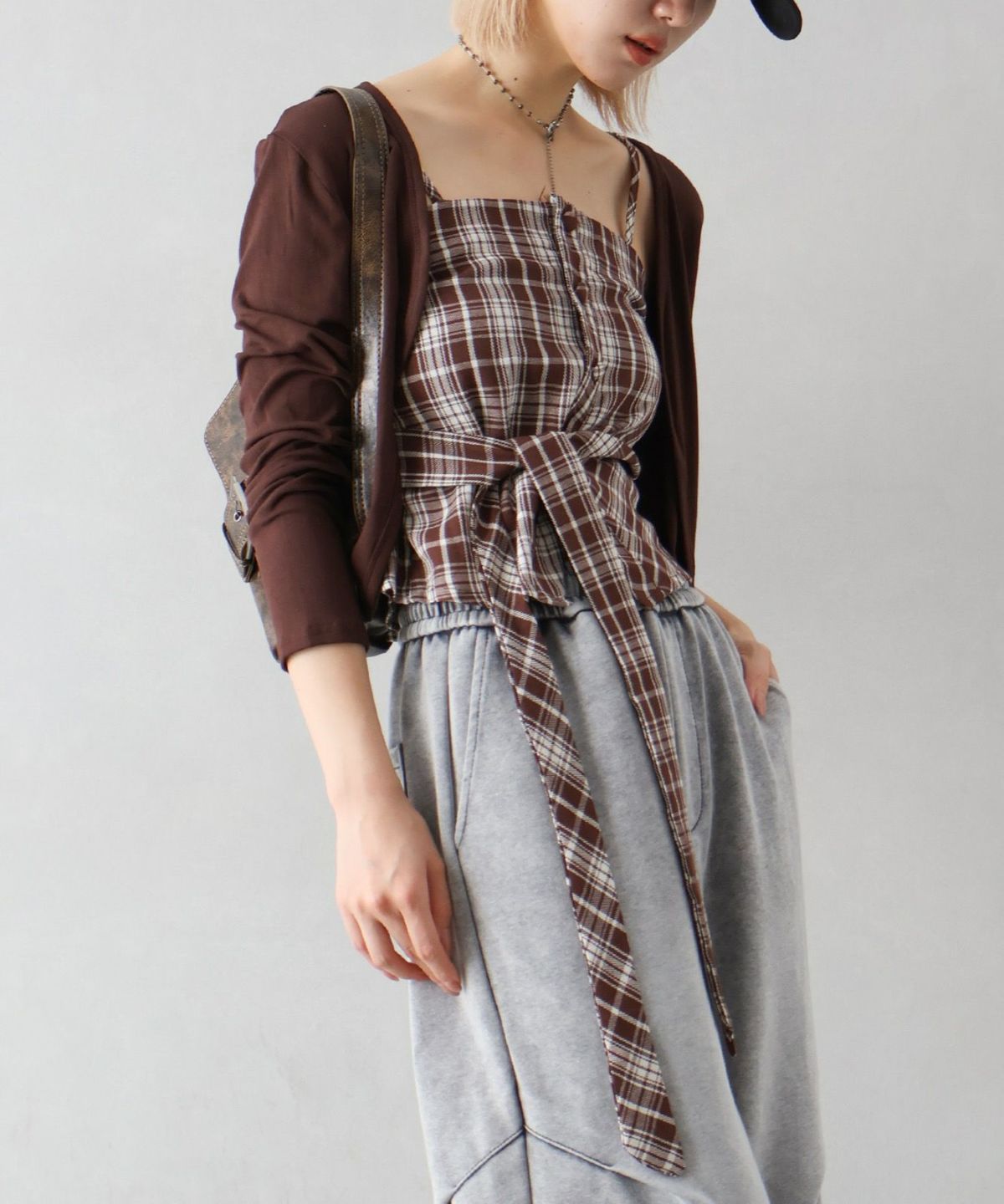 【2点セット】キャミソールセットシアーチェックカーディガン