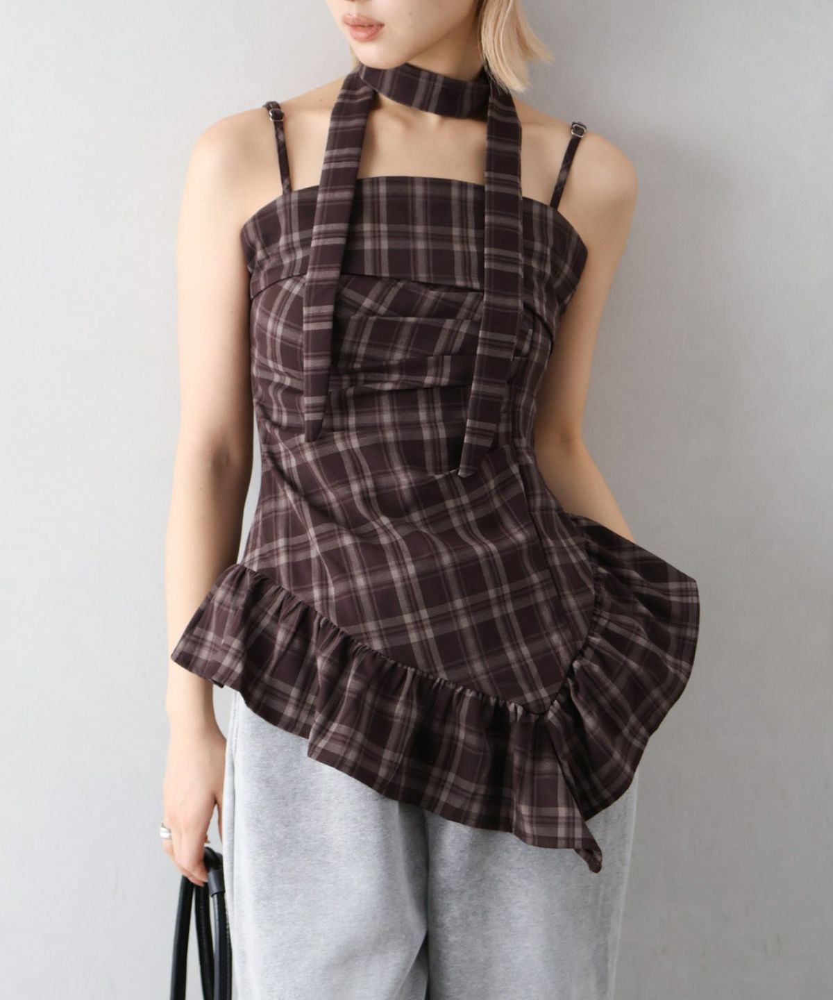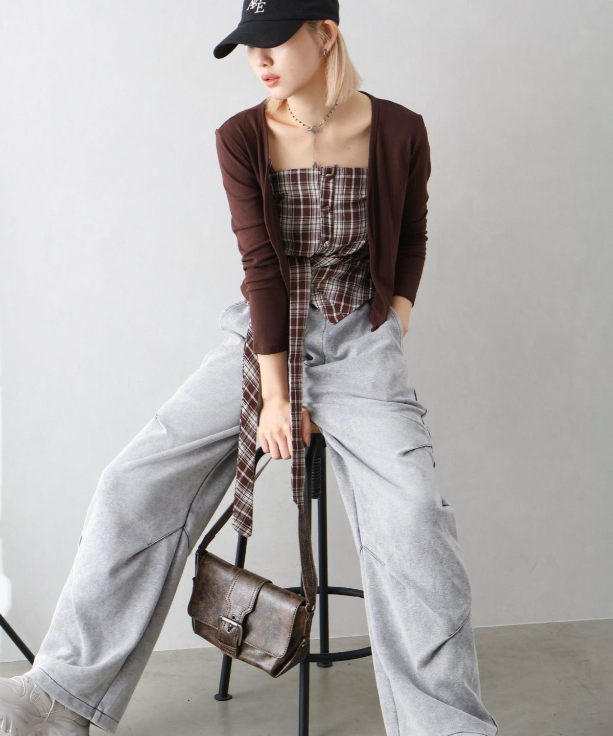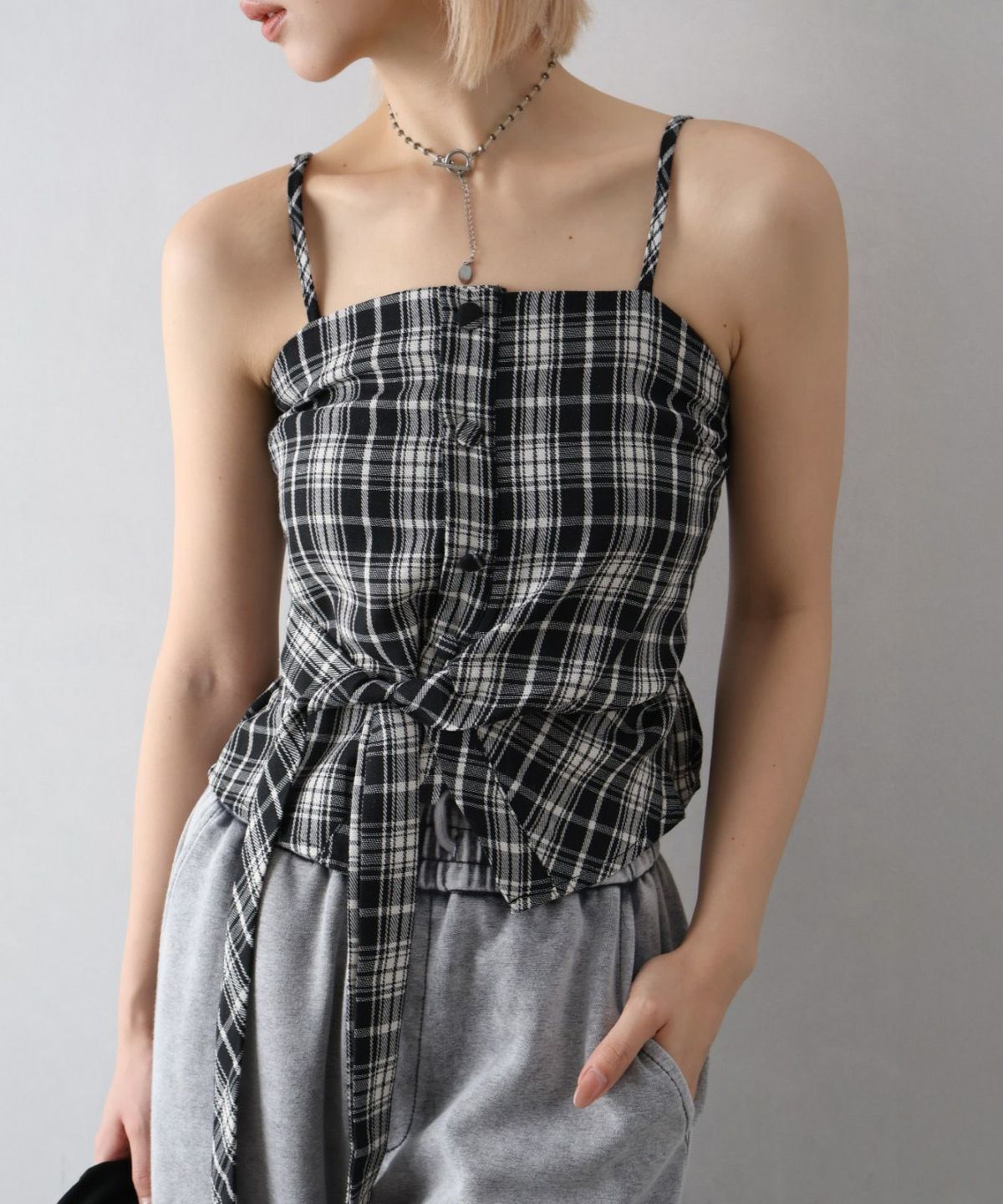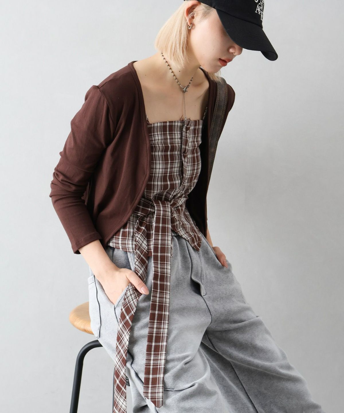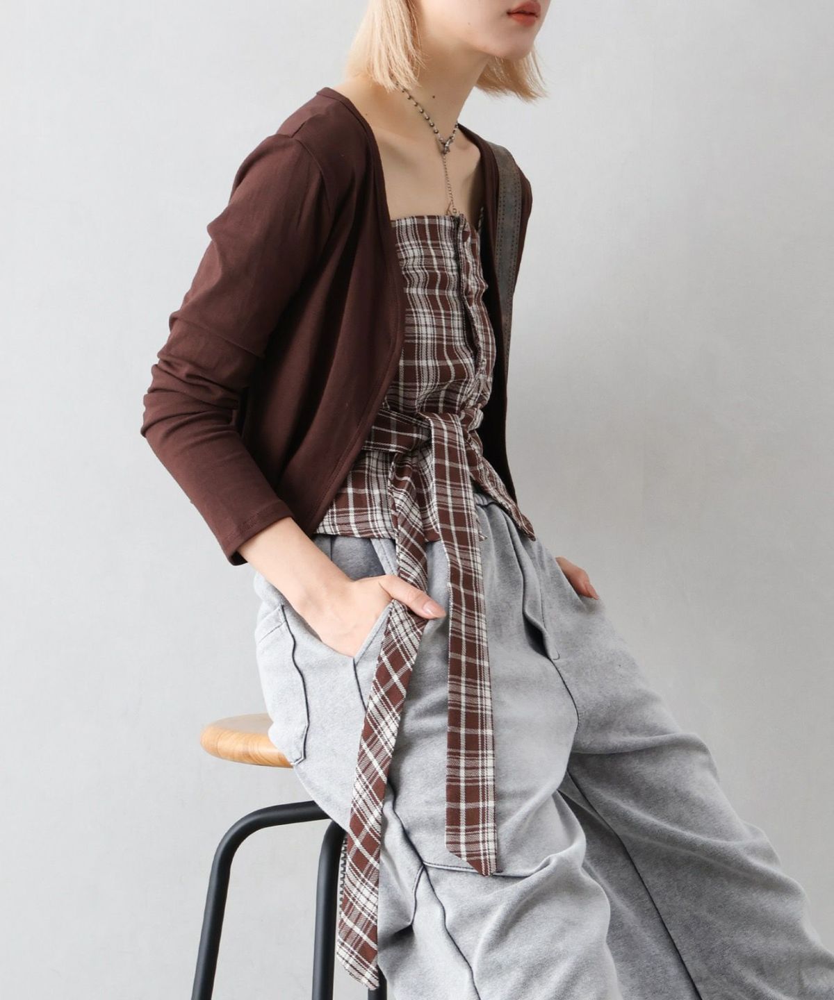 【2点セット】キャミソールセットシアーチェックカーディガン