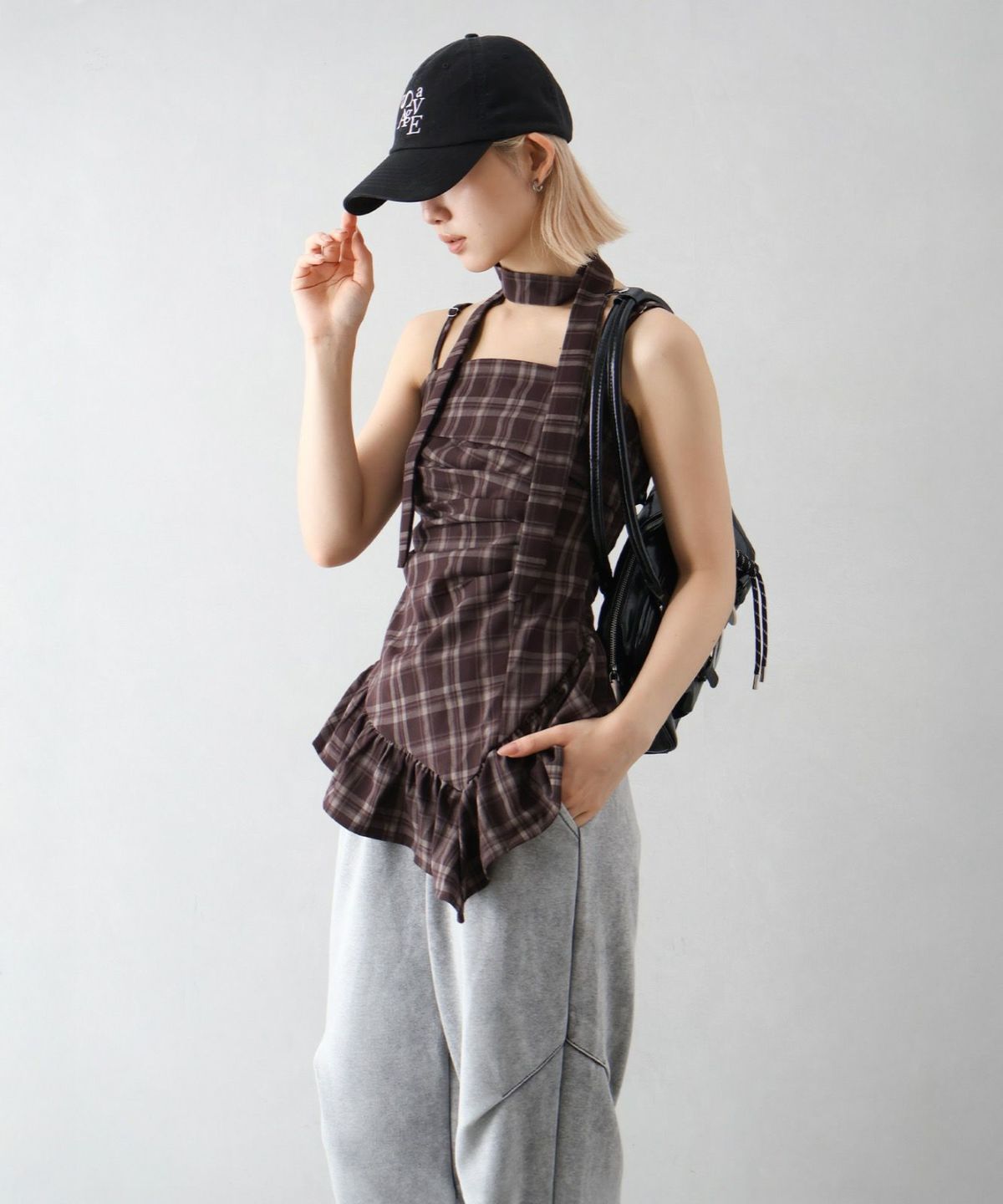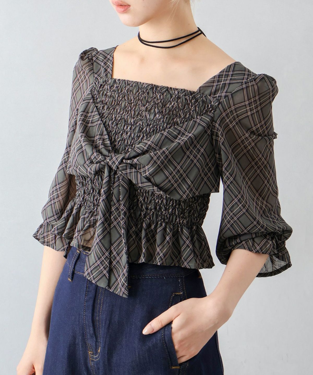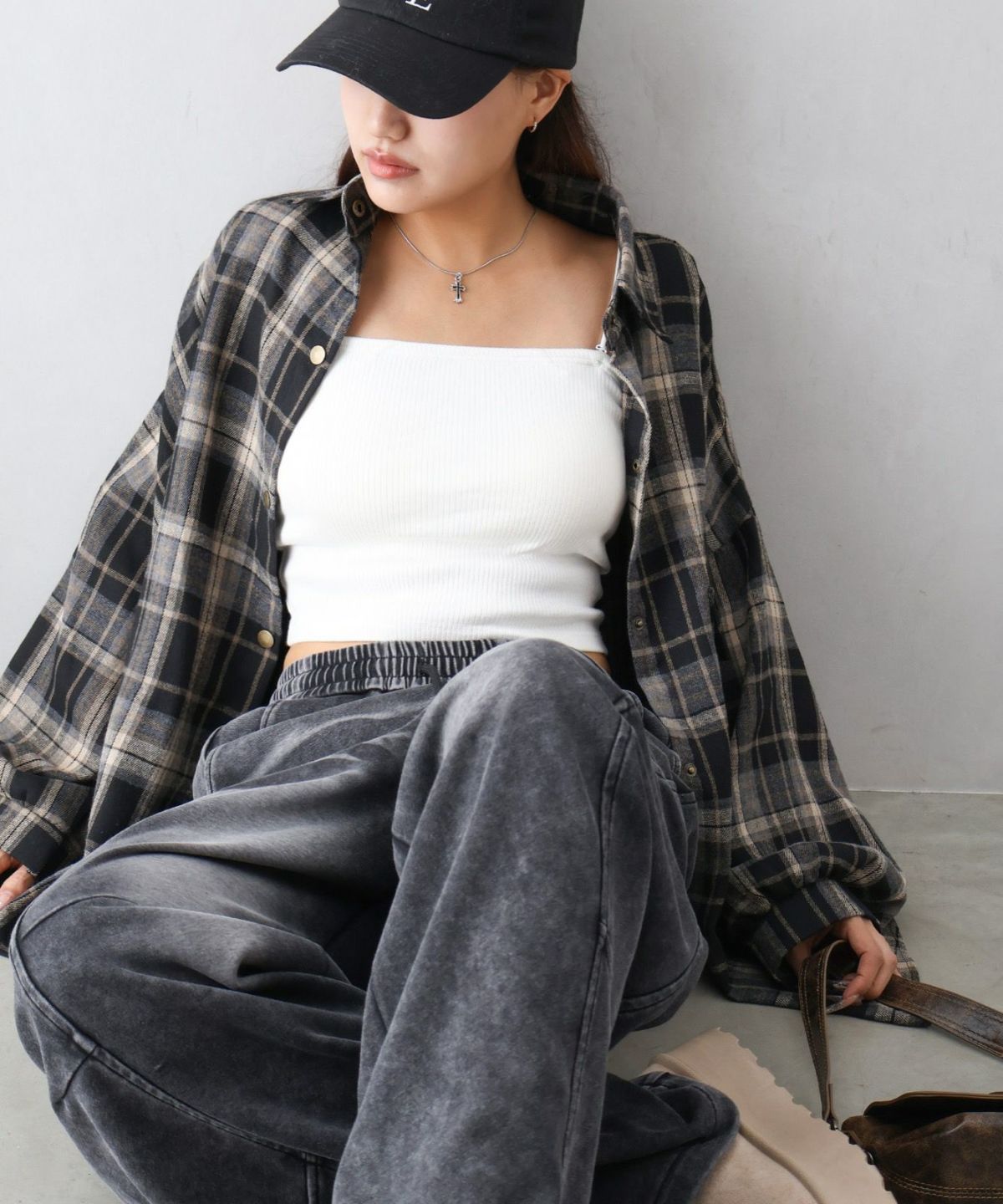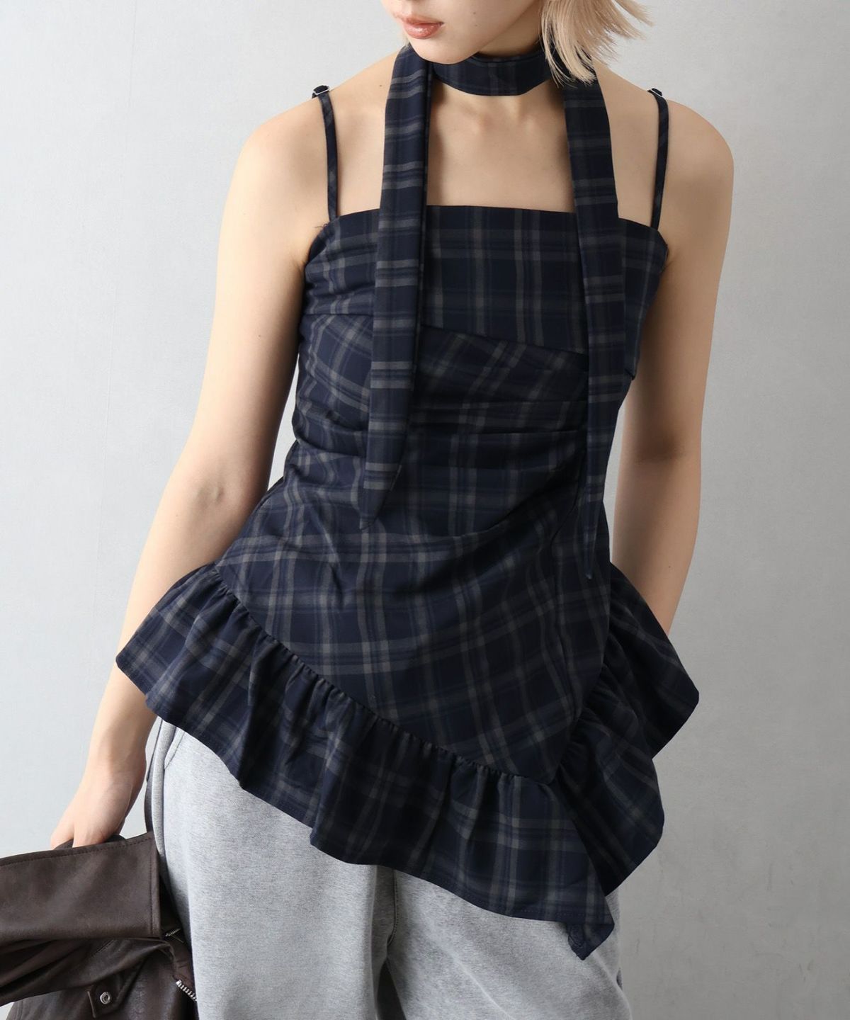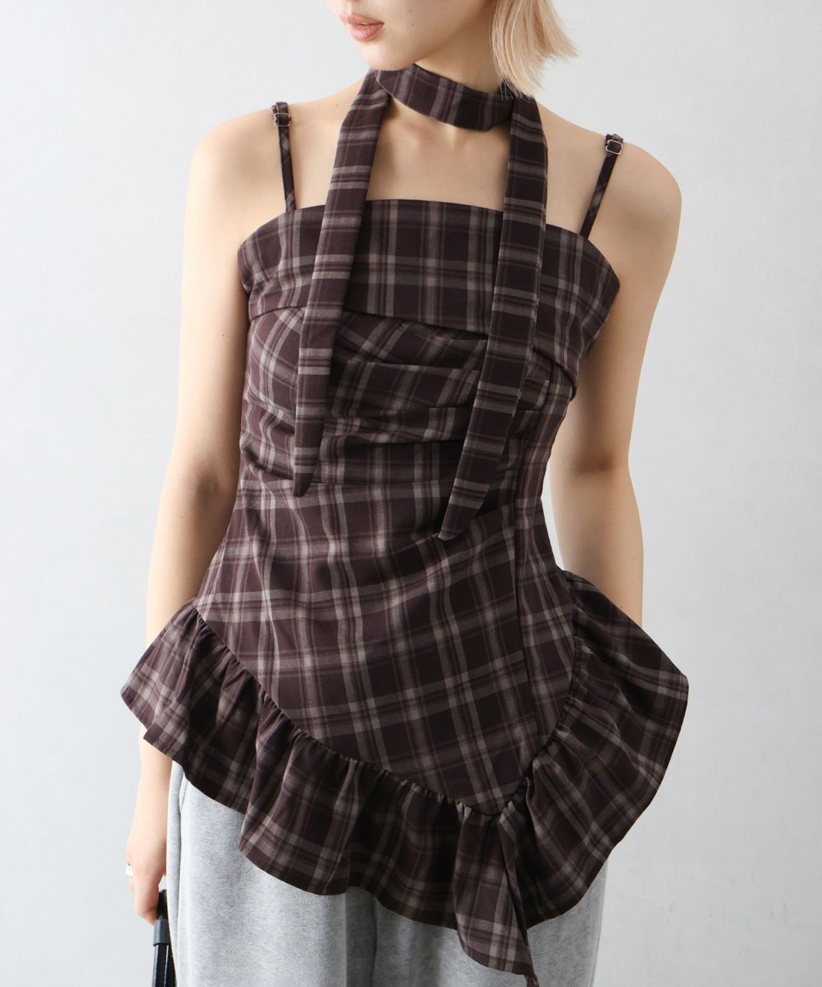 【2点セット】キャミソールセットシアーチェックカーディガン