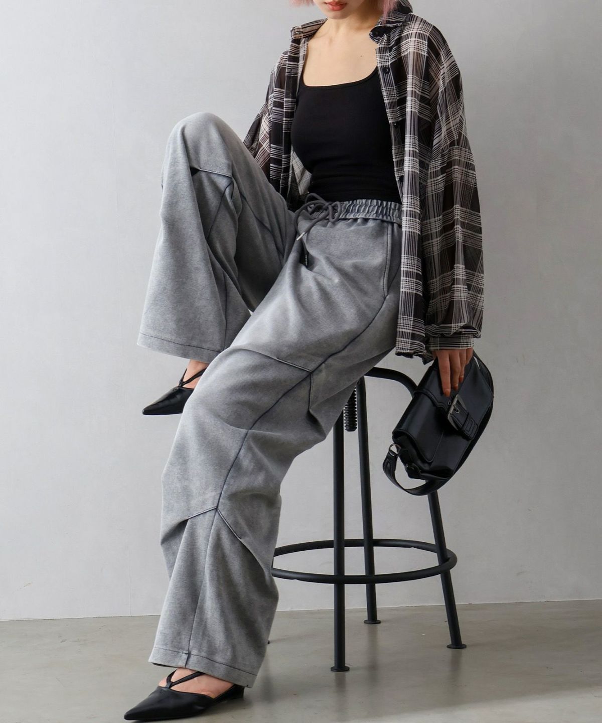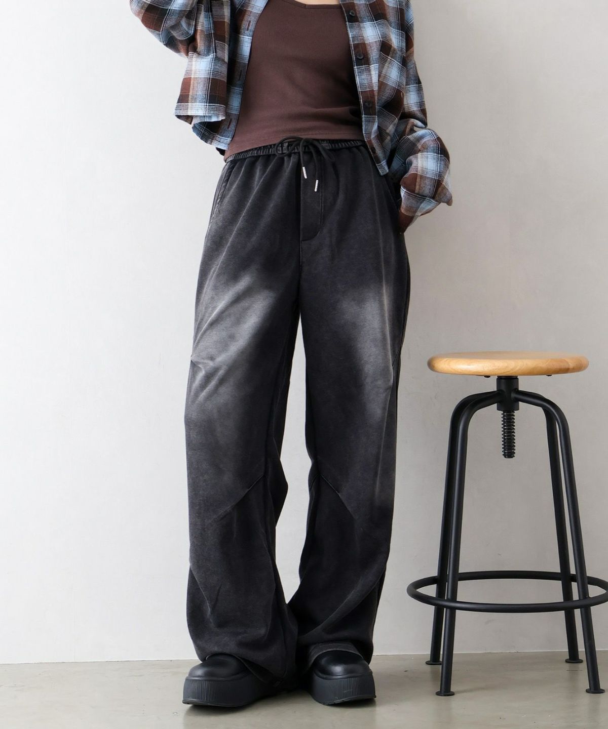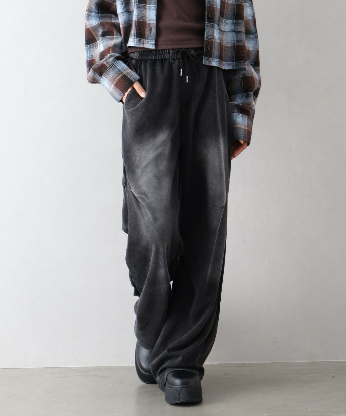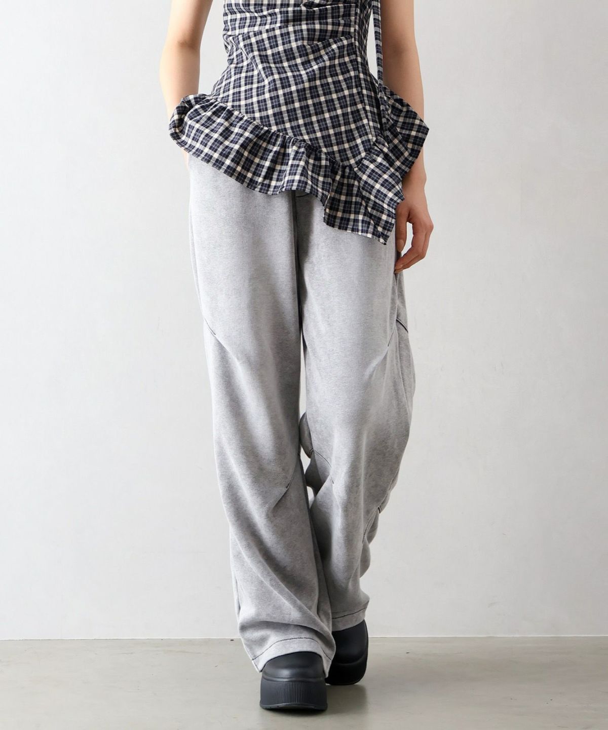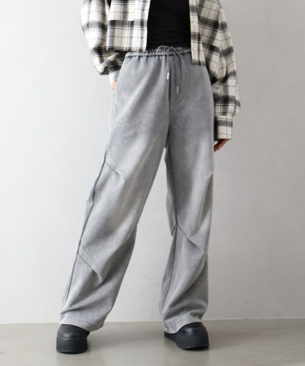 スウェット切替ワイドパンツ
