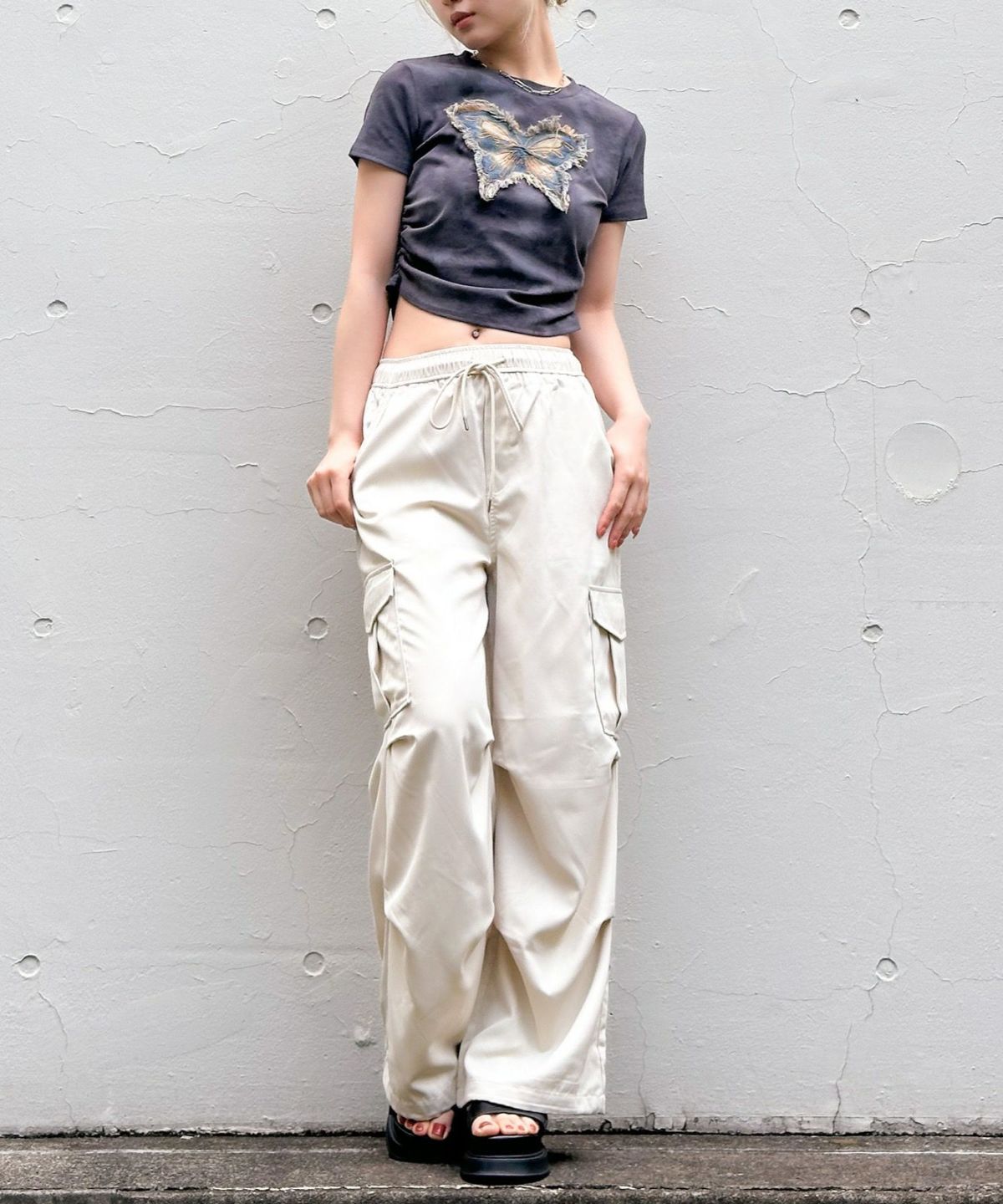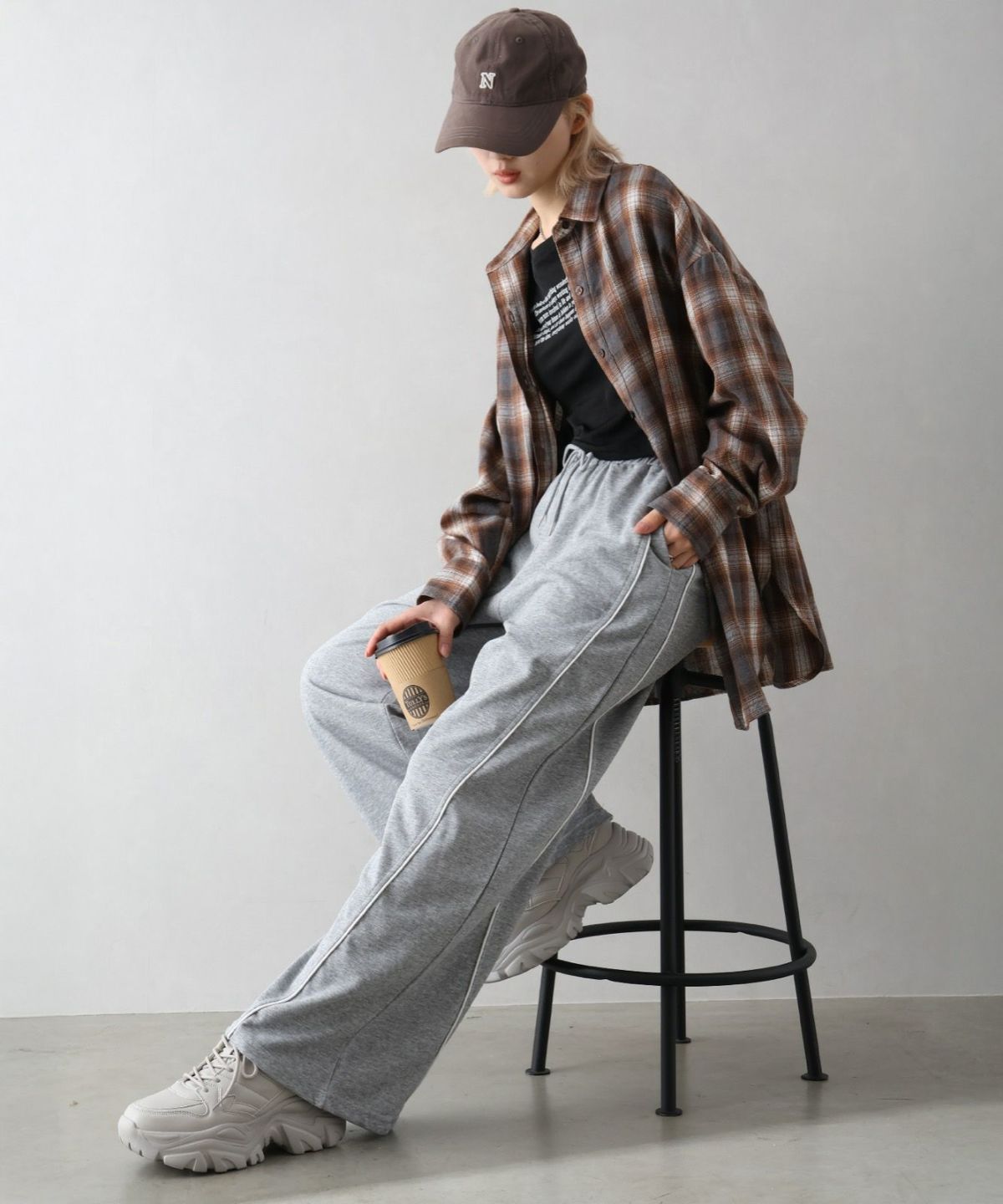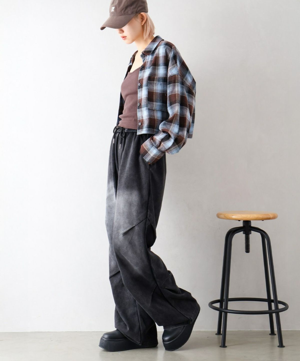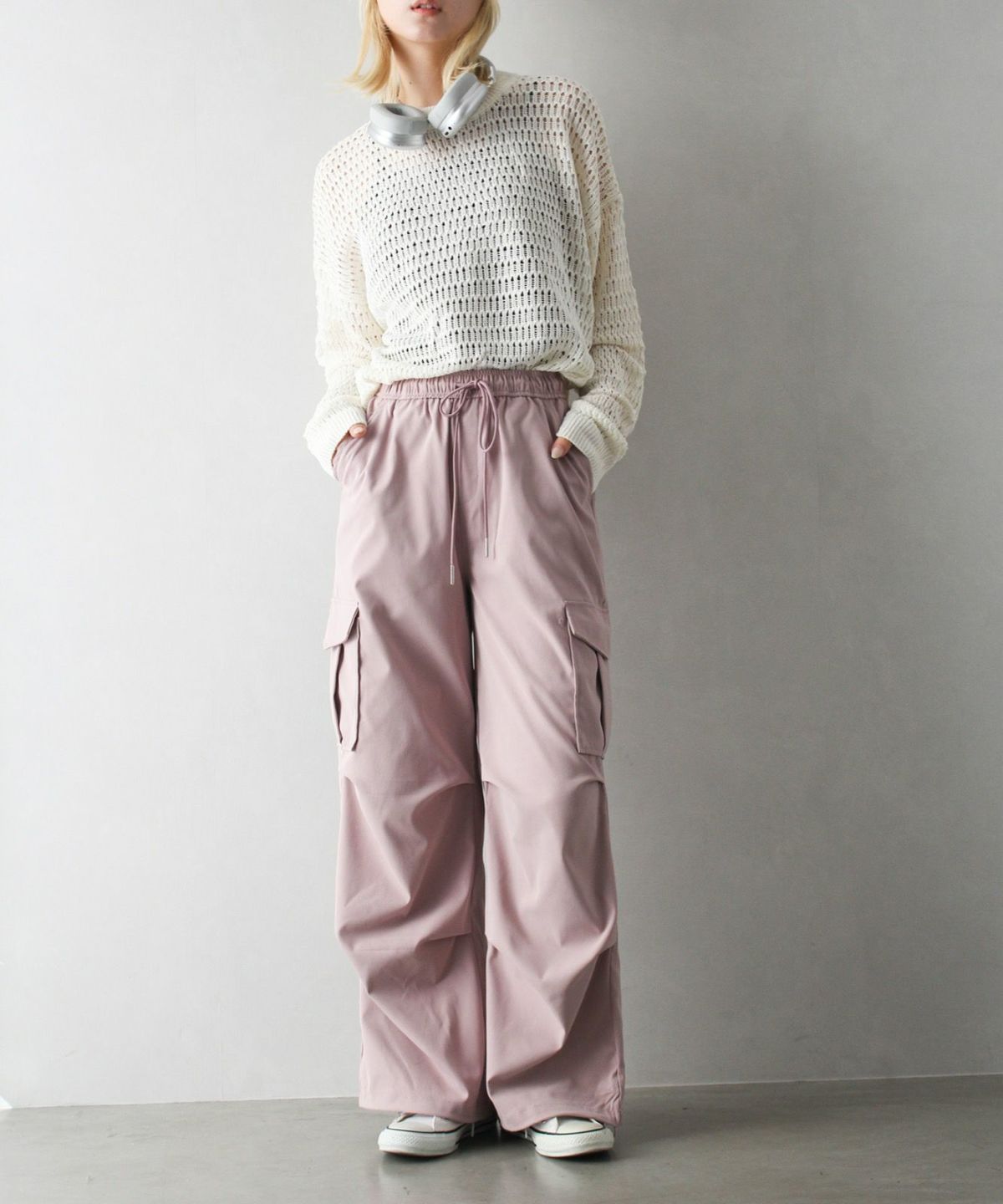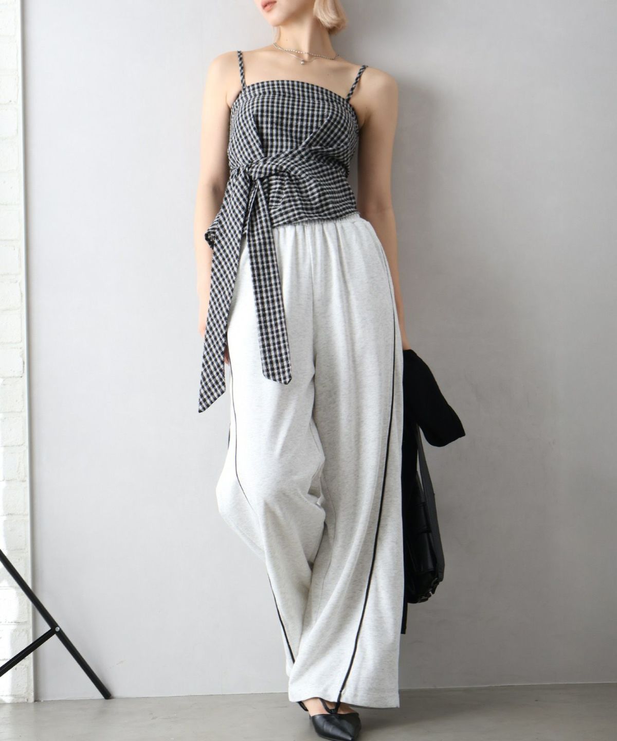 スウェット切替ワイドパンツ