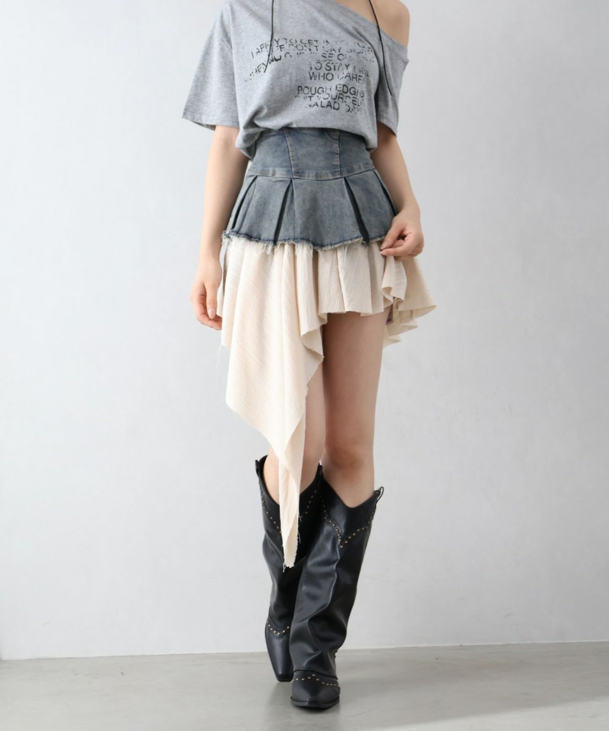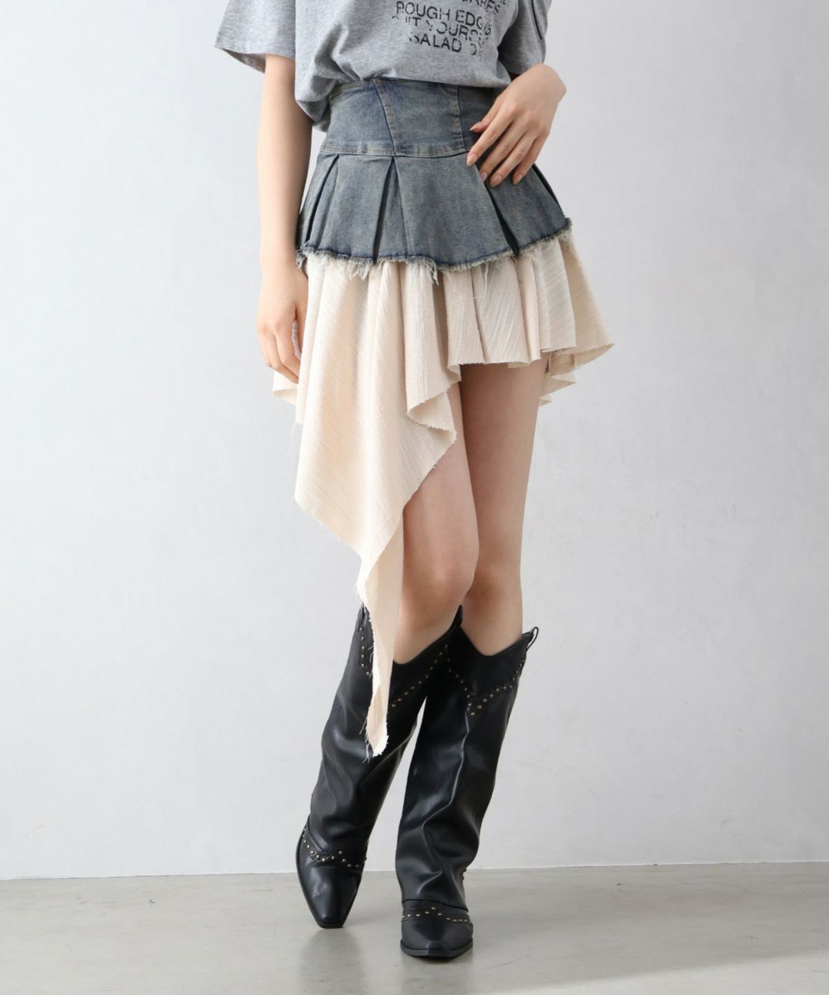 デニムヘムレイヤードミニスカート