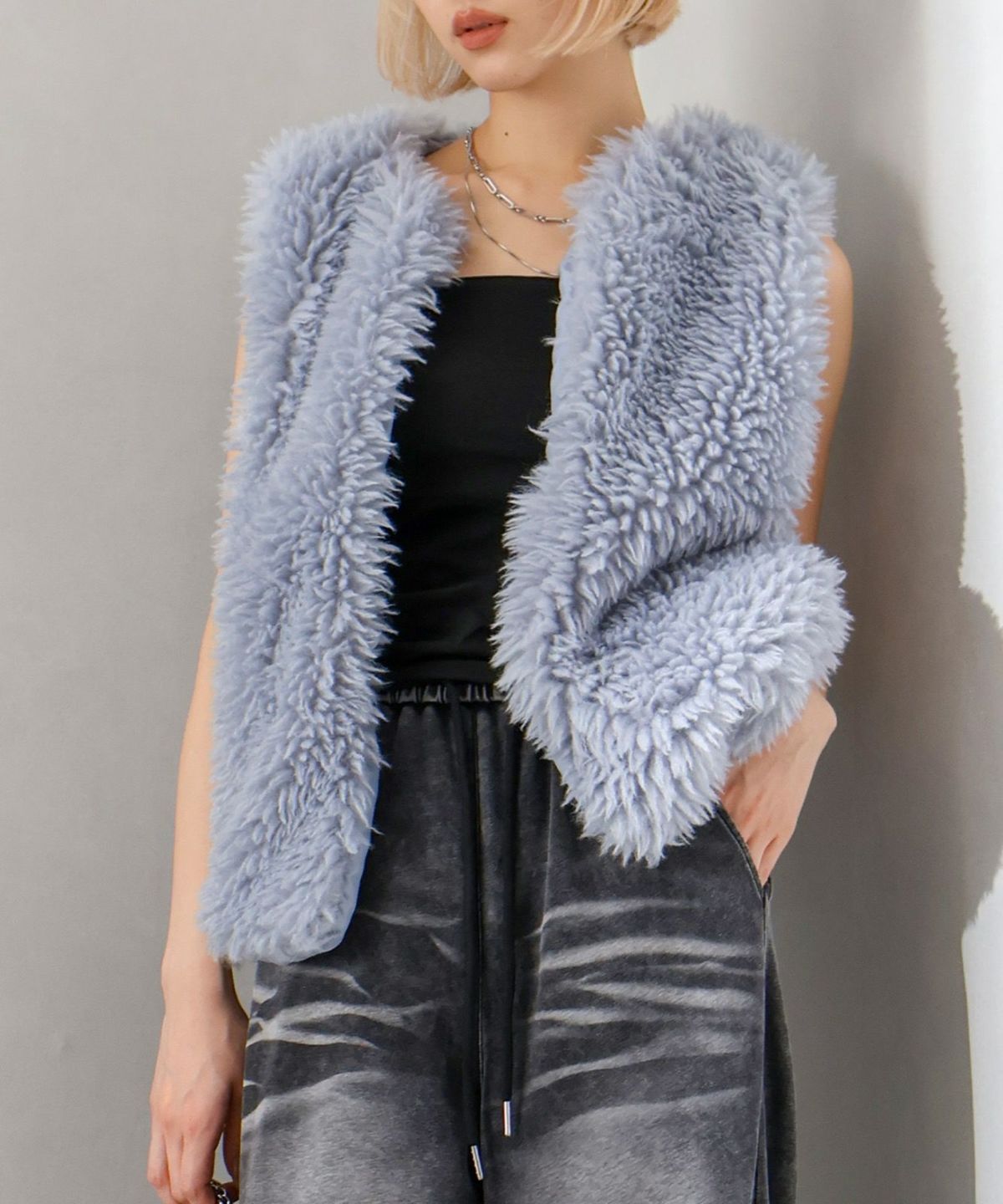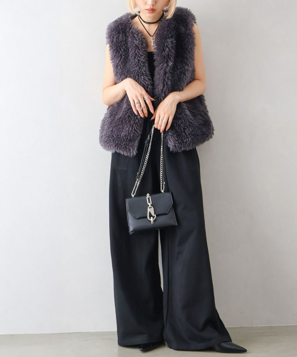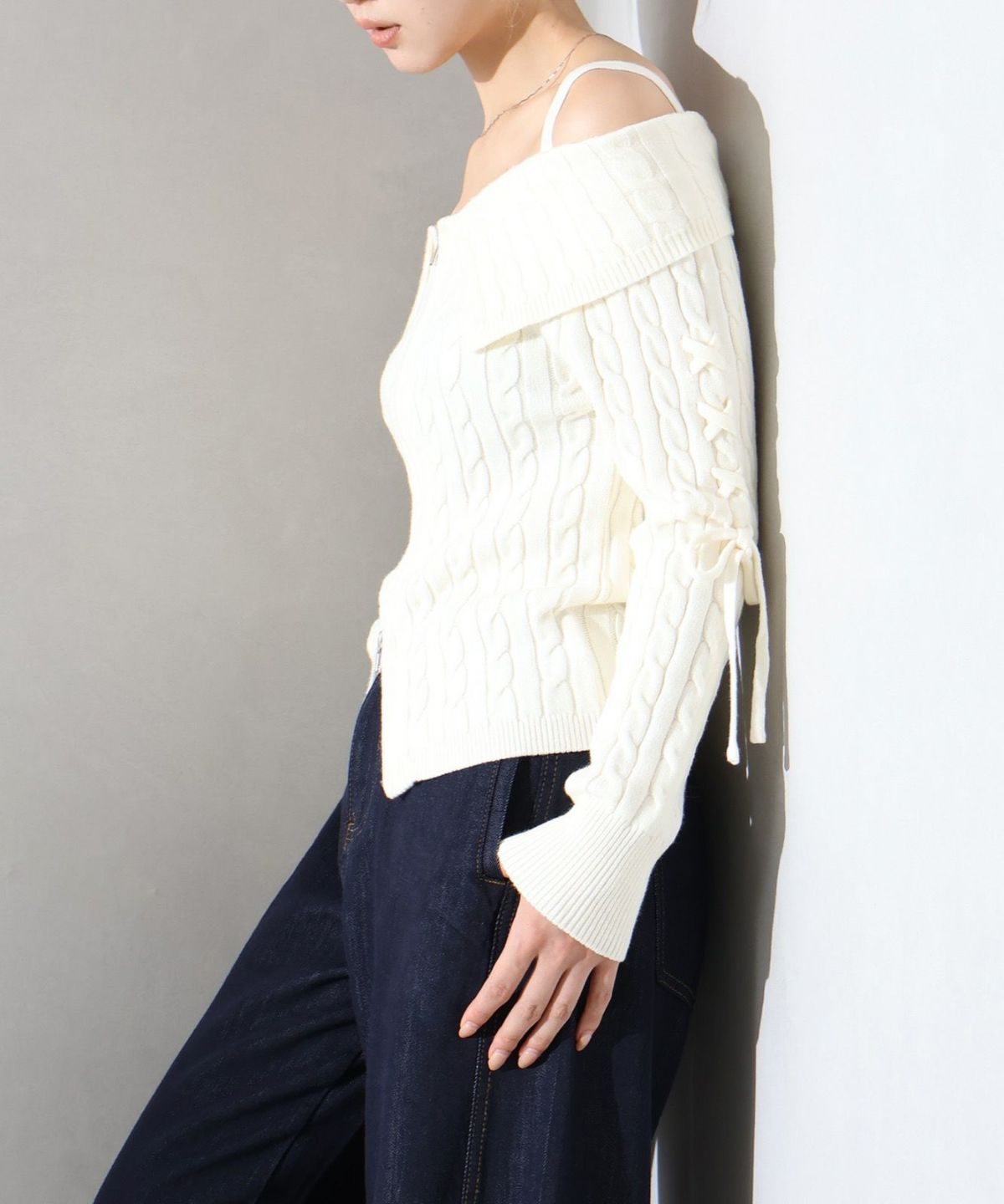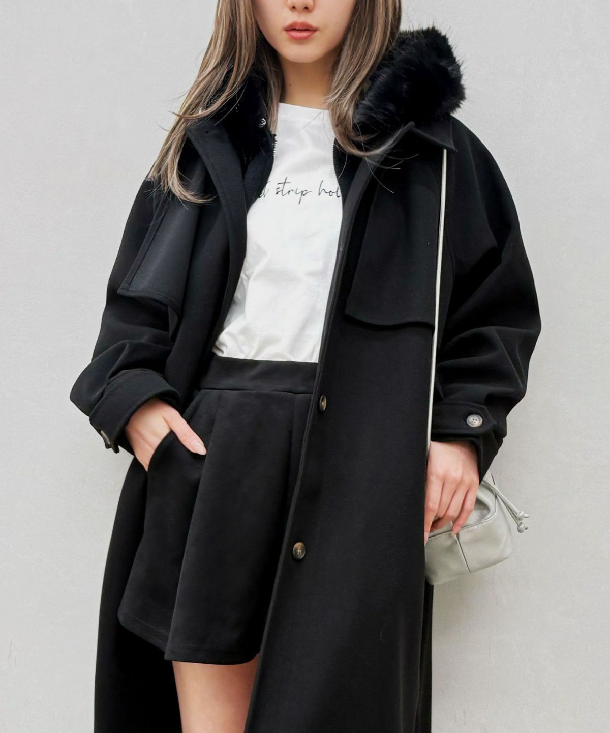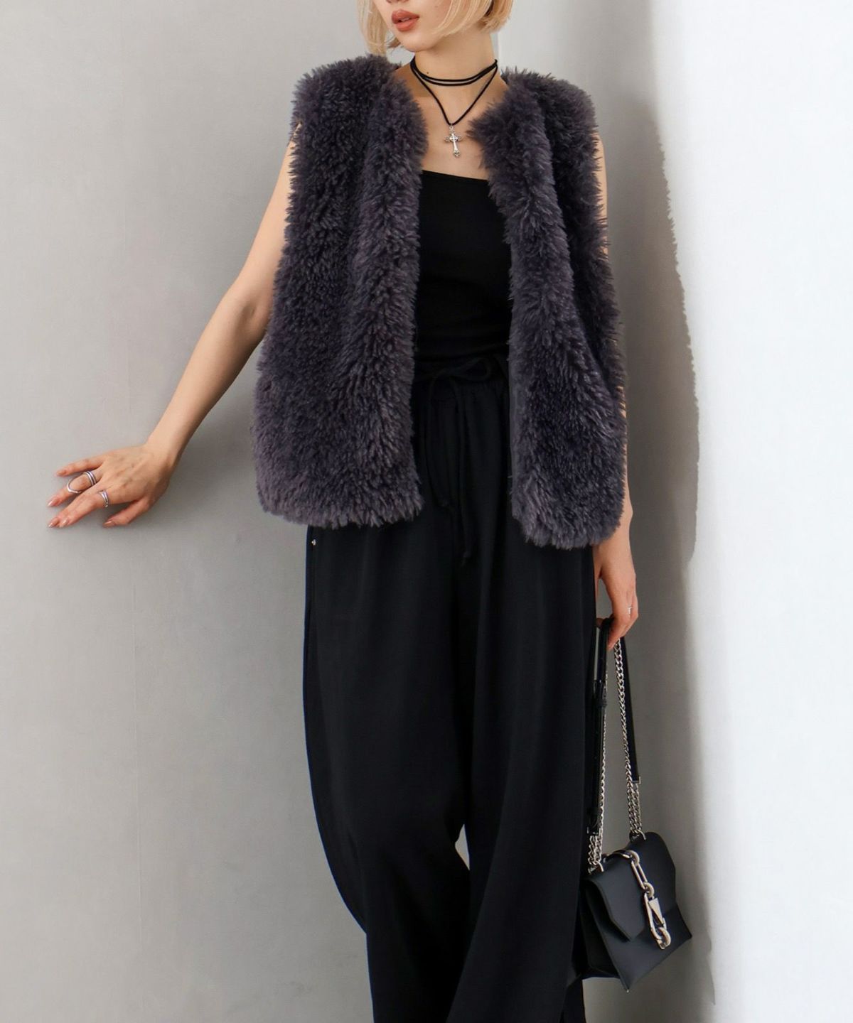 ファー付ニットロングジップパーカー