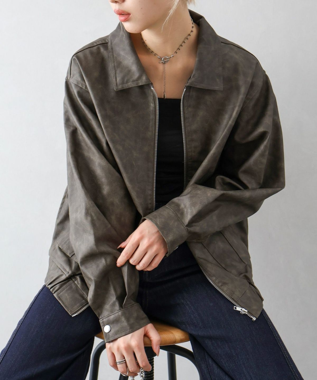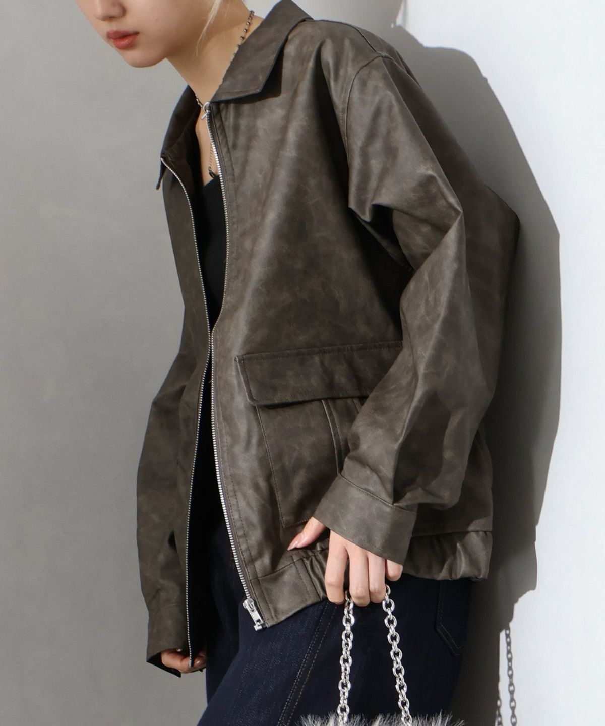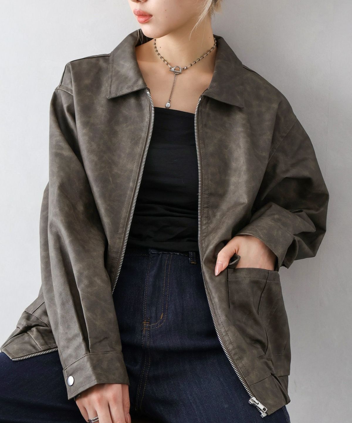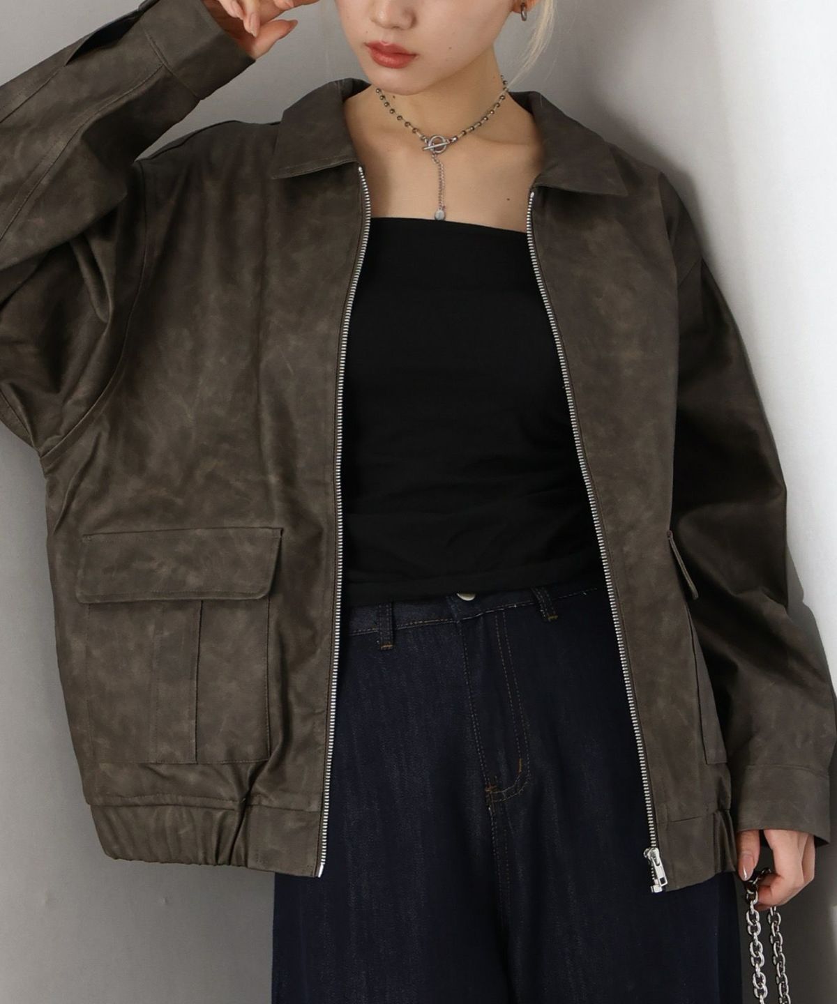 フェイクレザーZipブルゾン