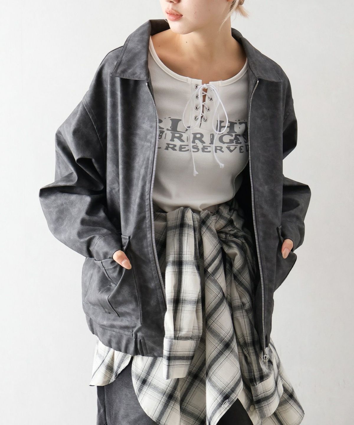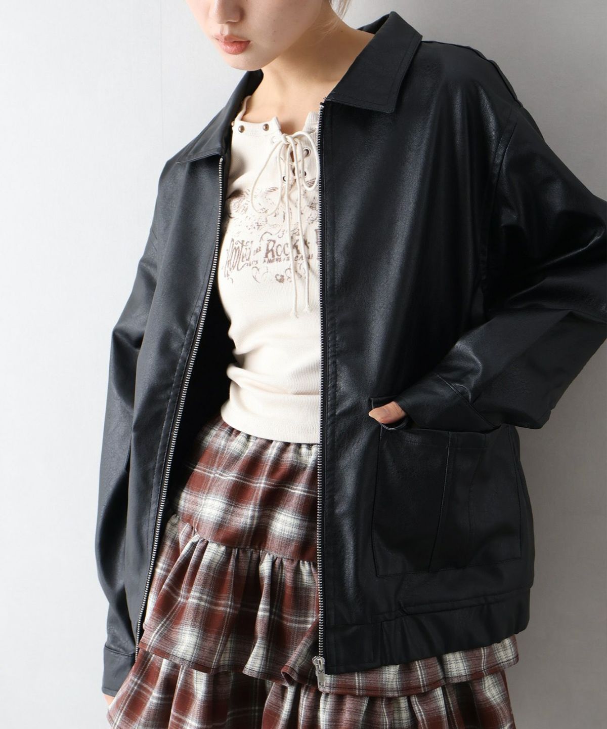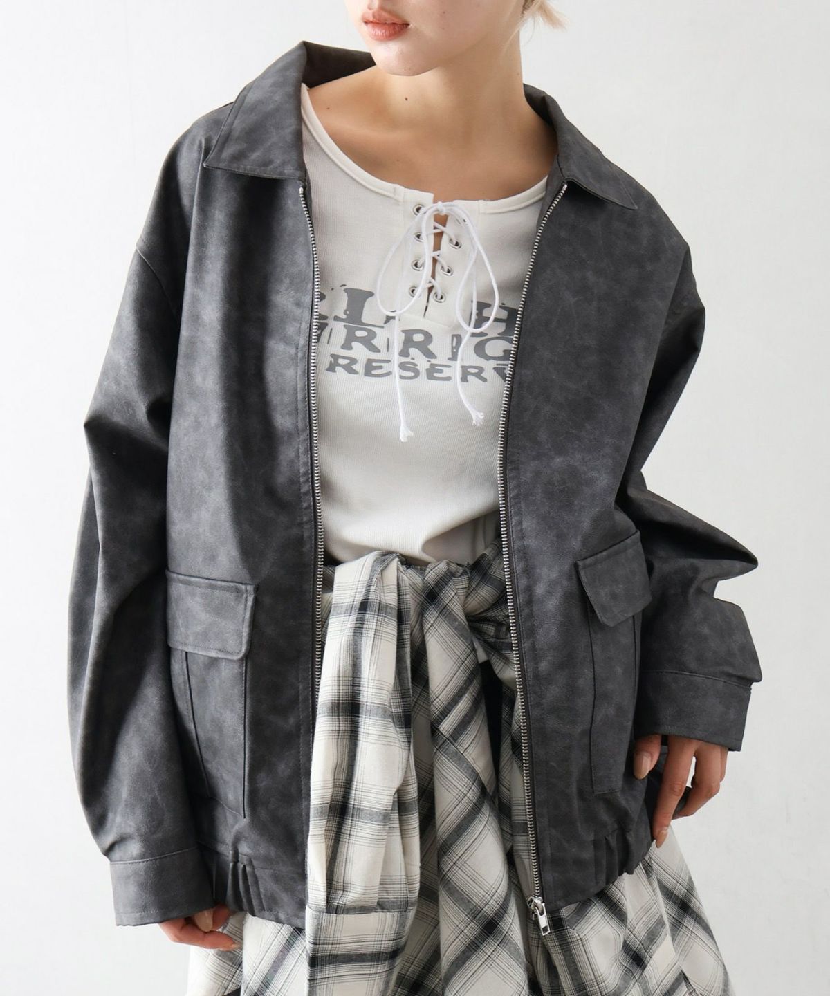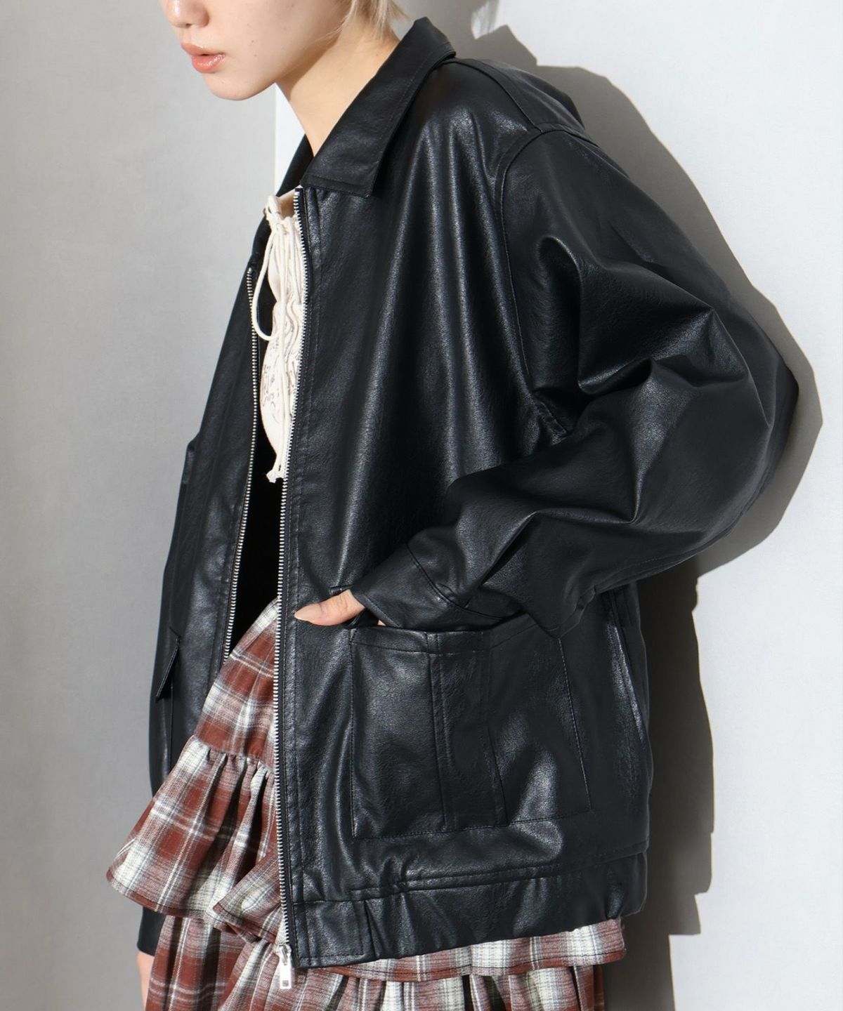 フェイクレザーZipブルゾン