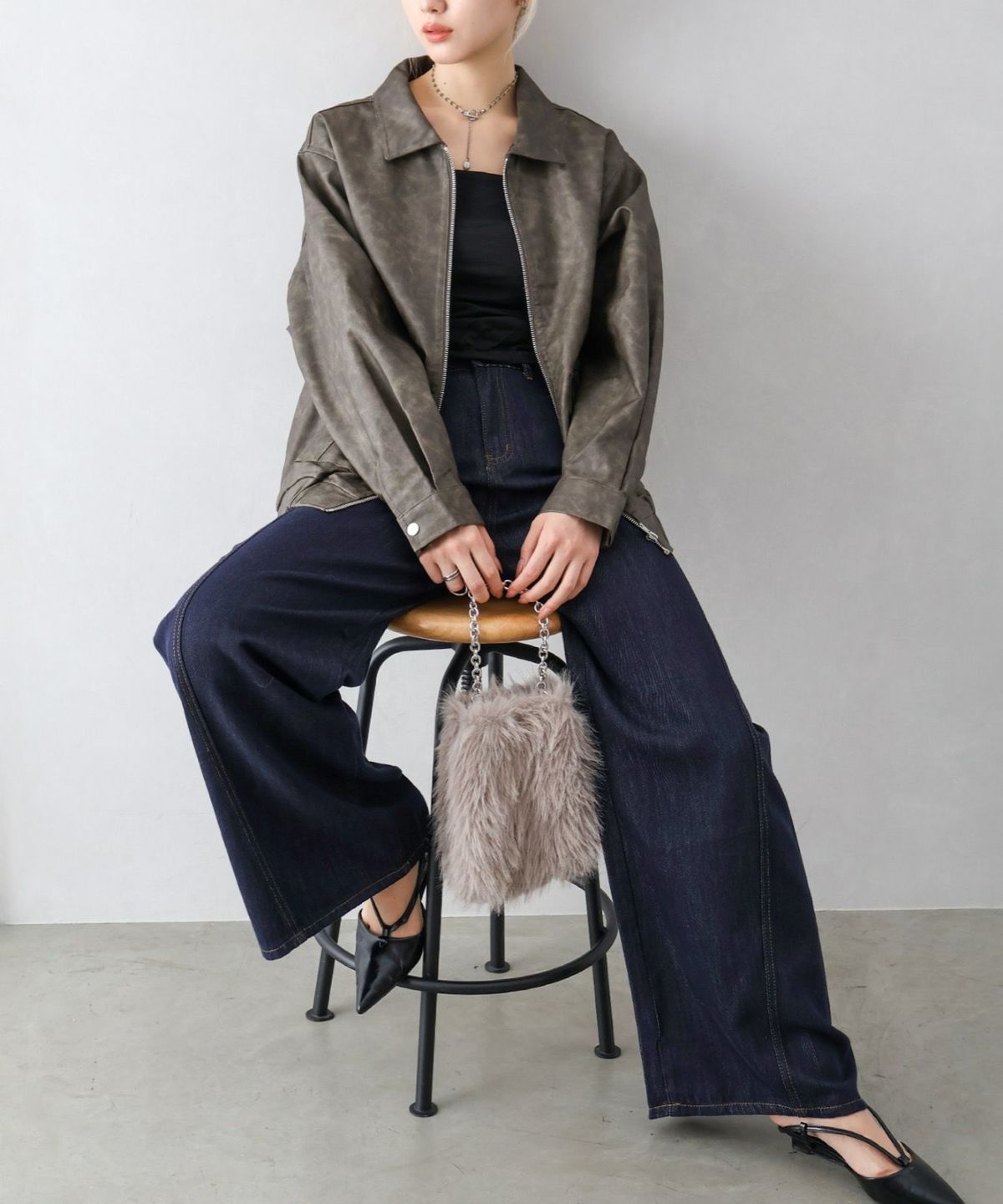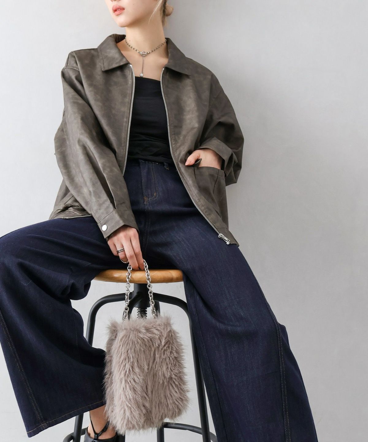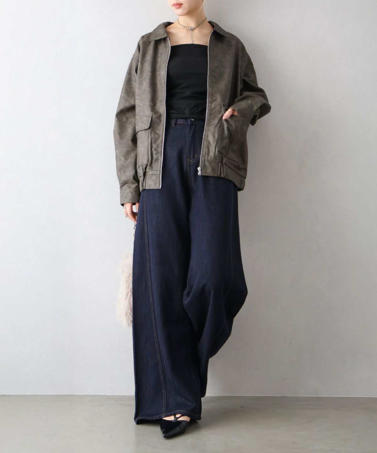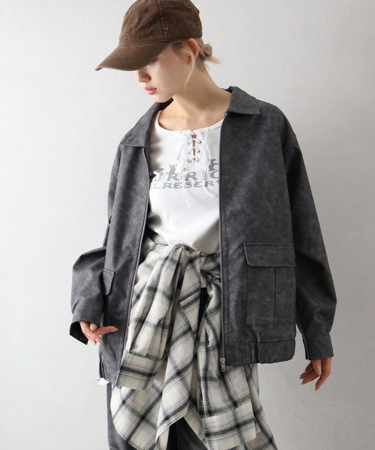 フェイクレザーZipブルゾン
