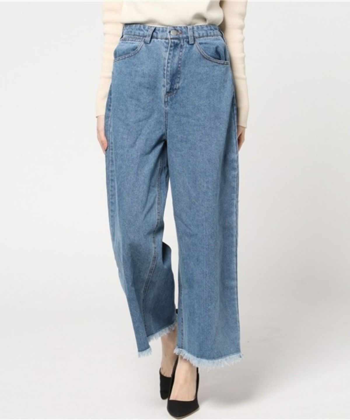 【Lサイズ、LLサイズ登場】すそフリンジデニムワイドパンツ