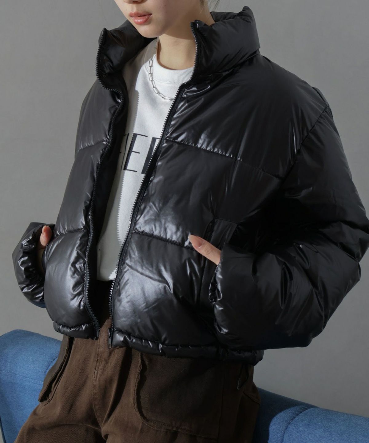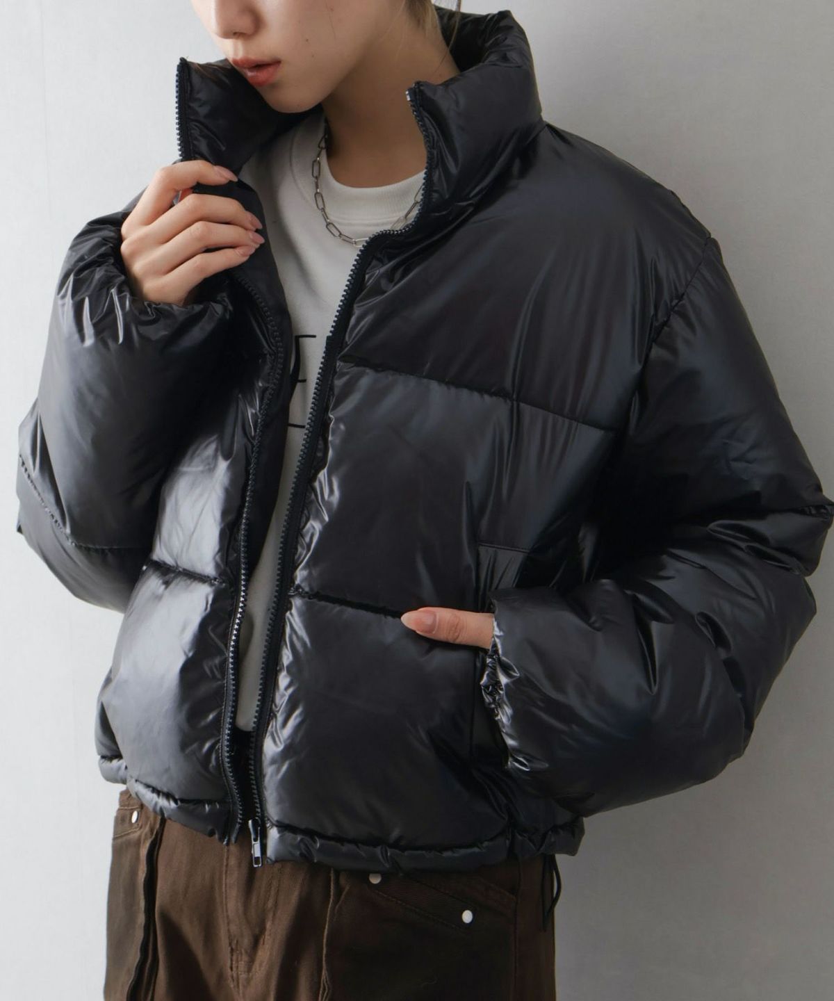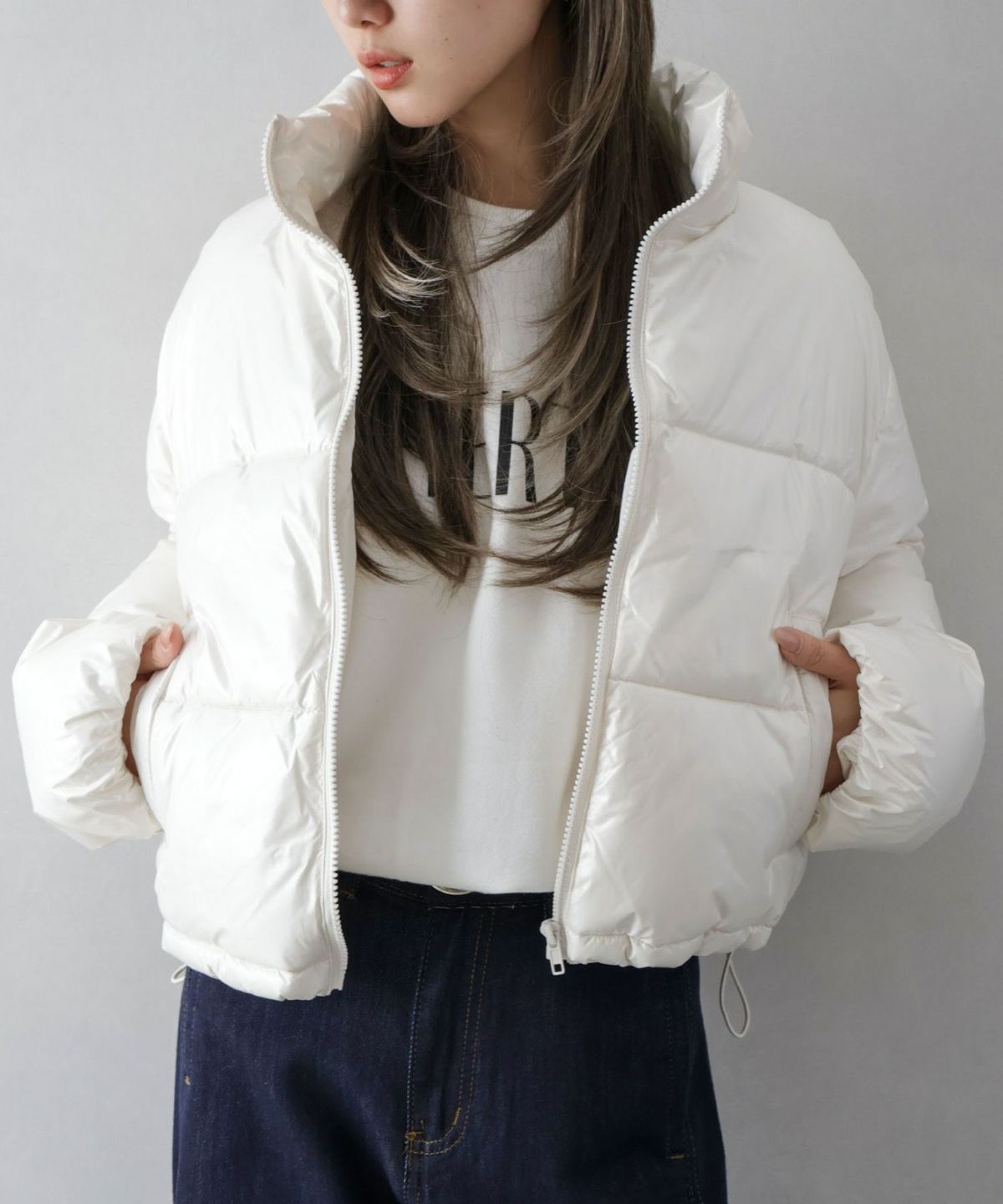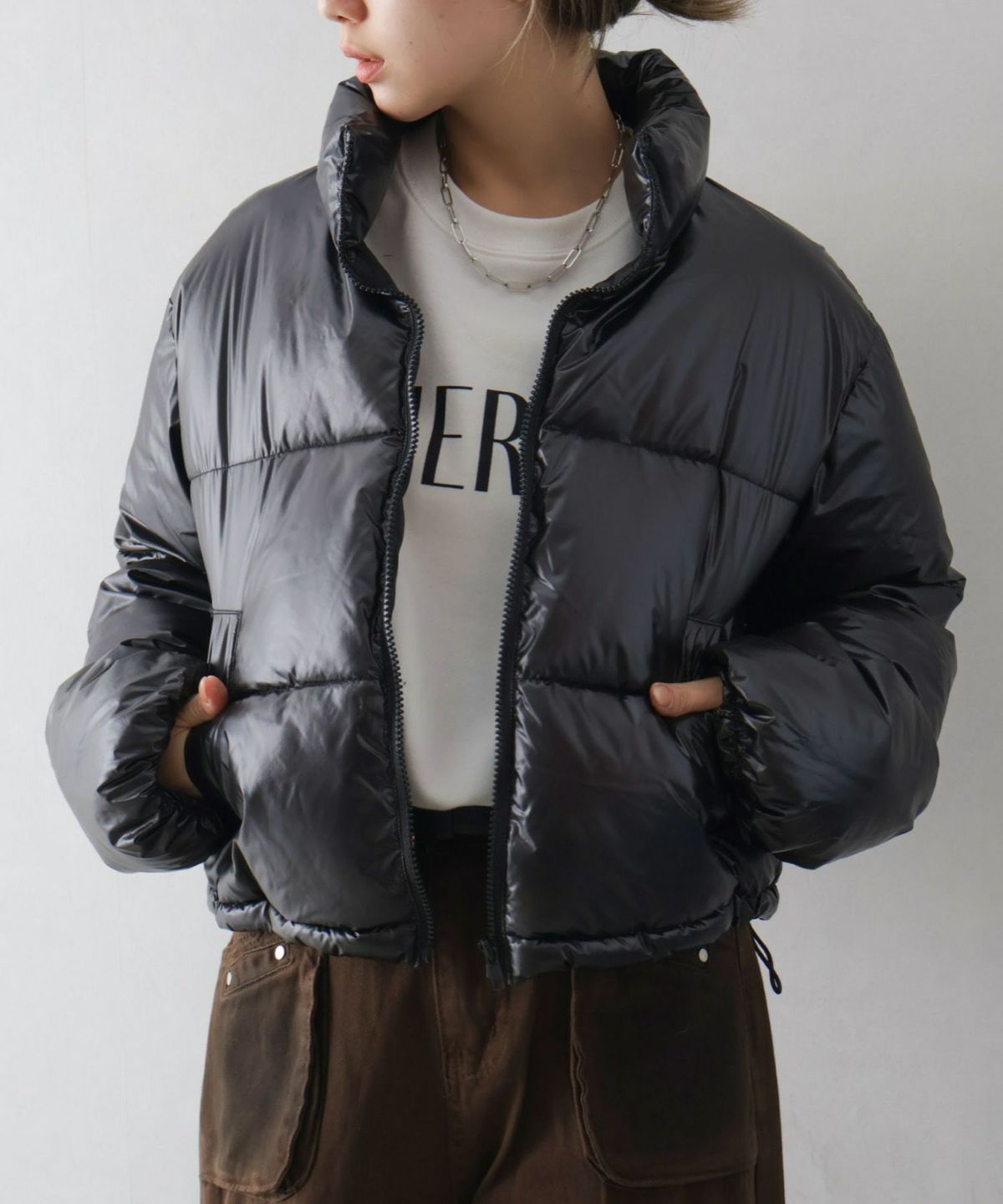 メタリック中綿スタンドコート