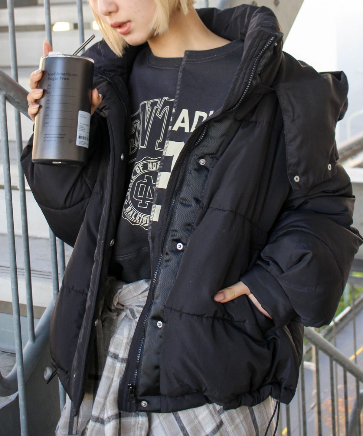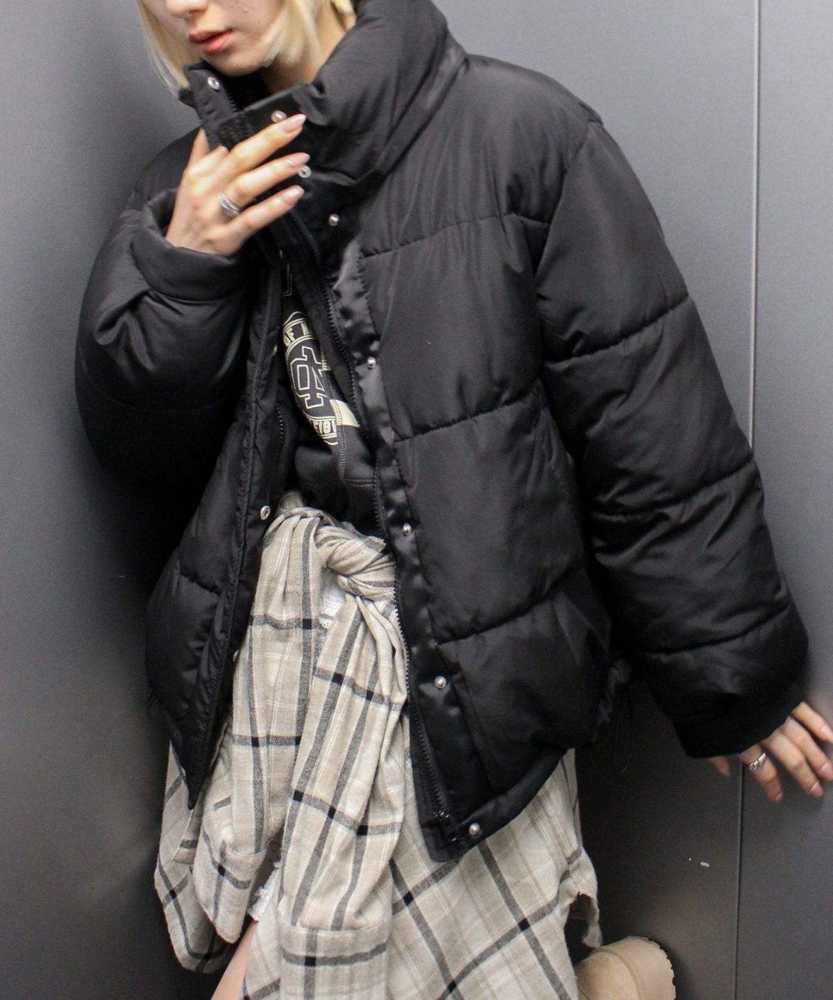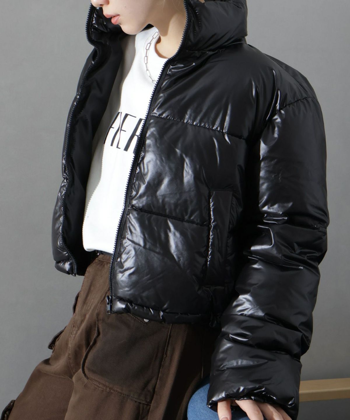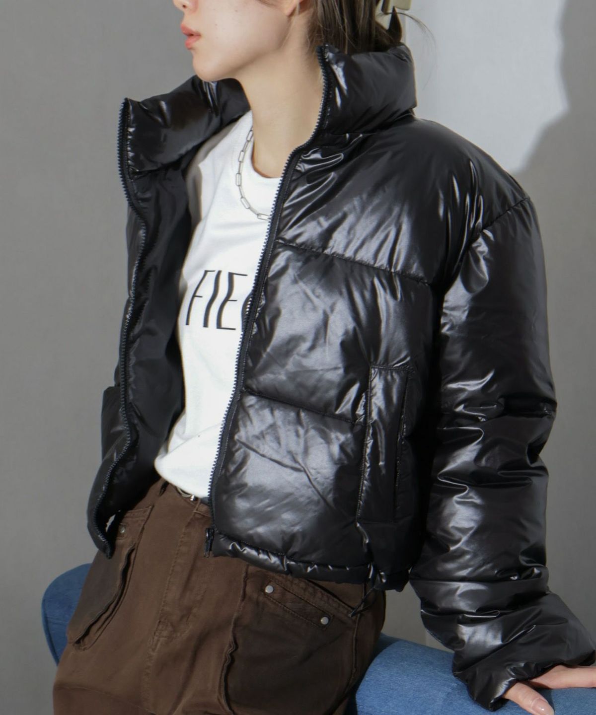 メタリック中綿スタンドコート