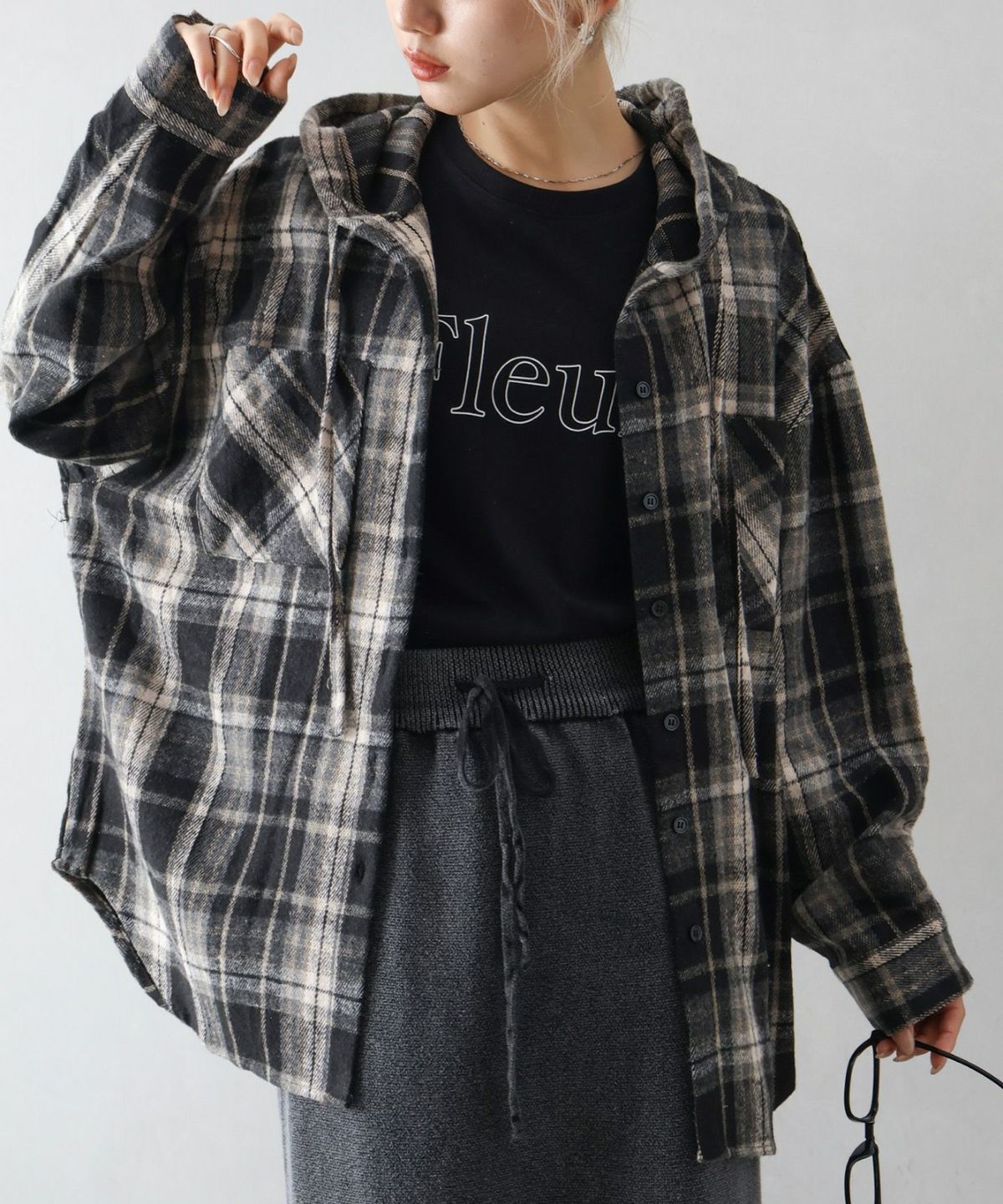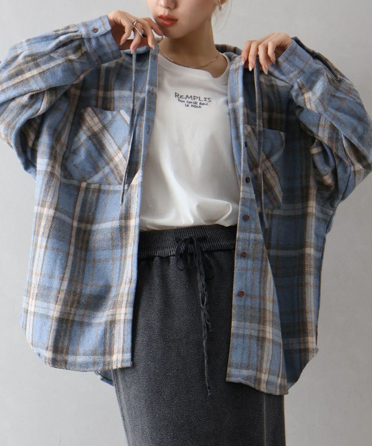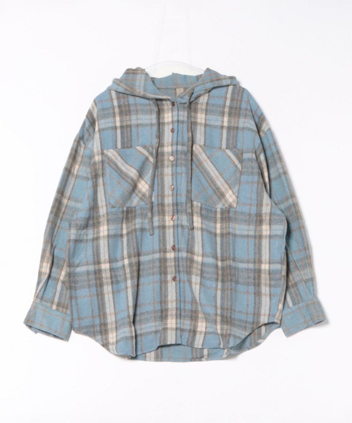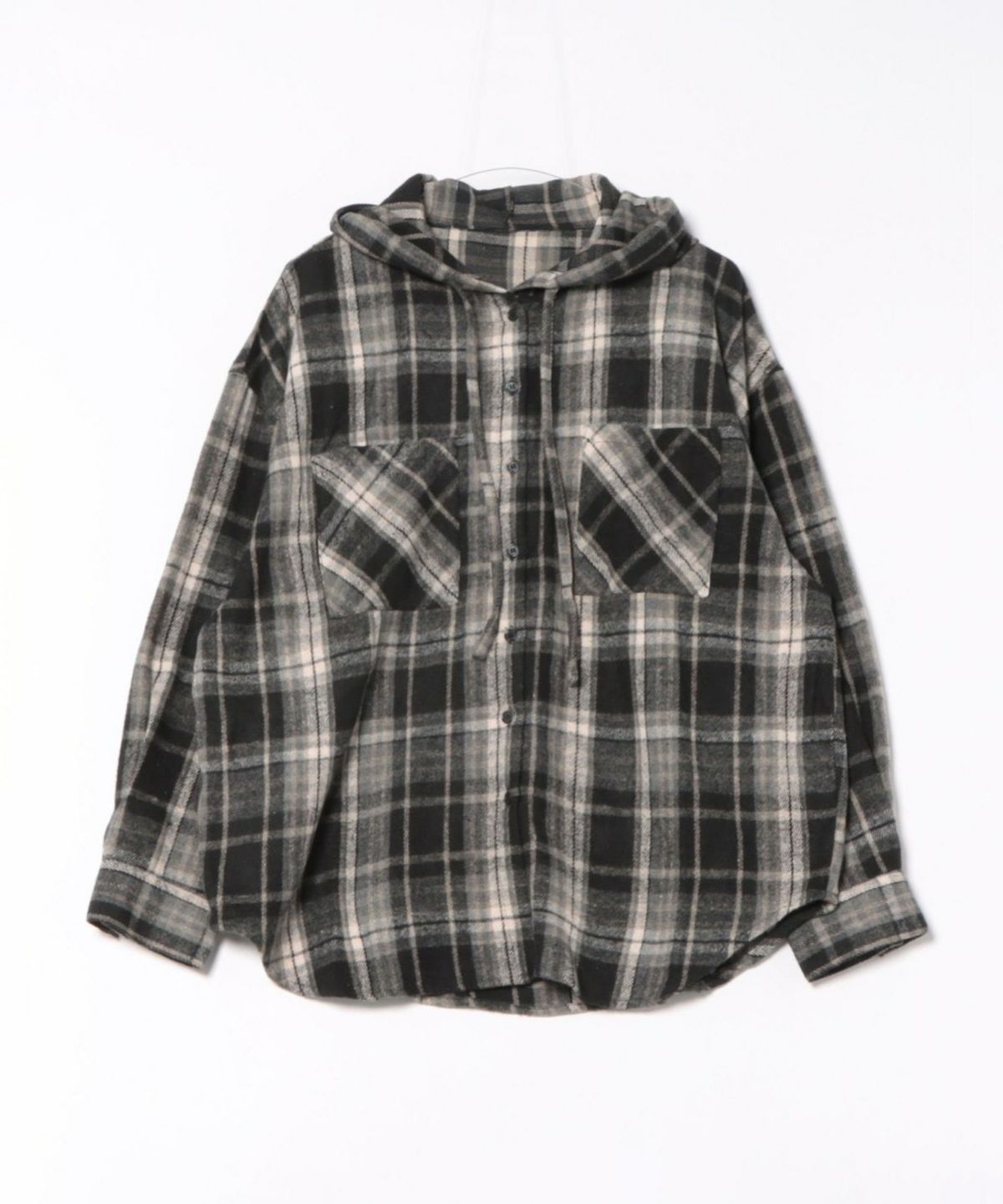 起毛チェックフードBIGシャツ