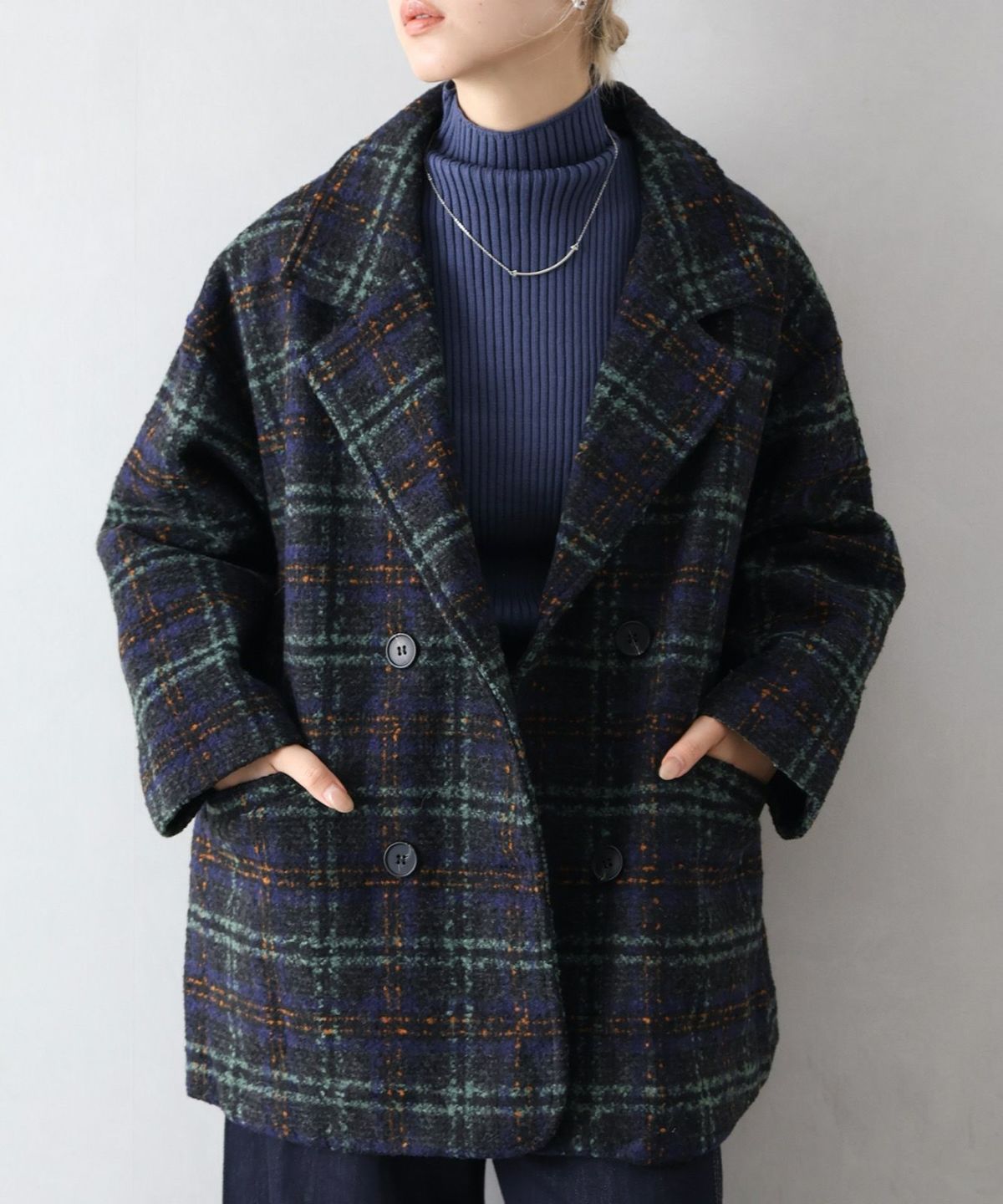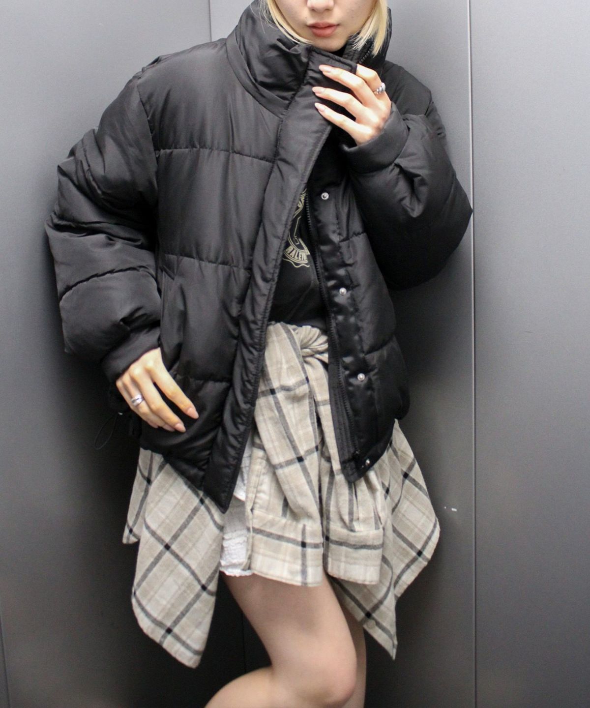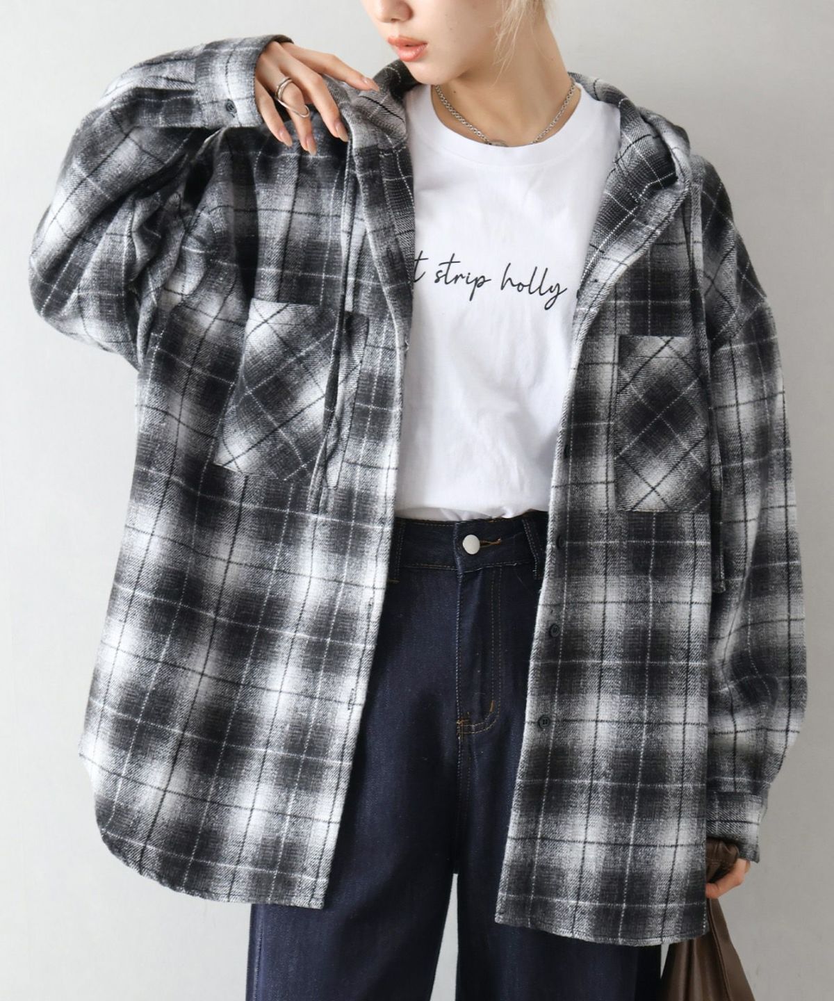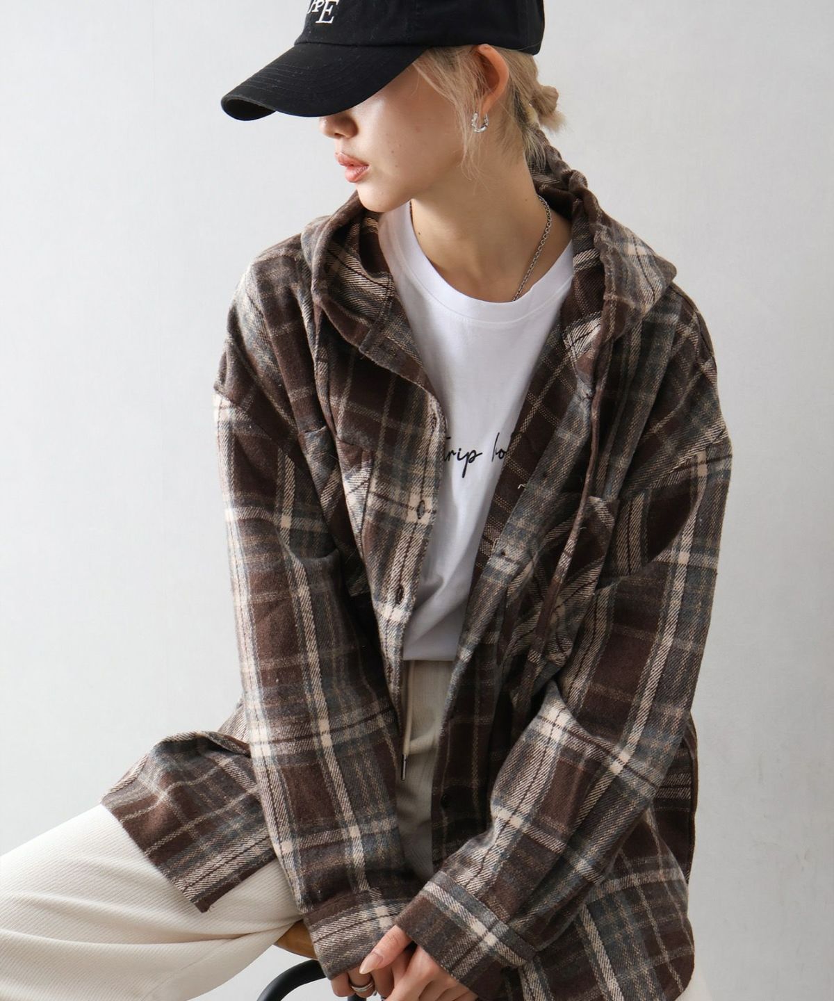 起毛チェックフードBIGシャツ