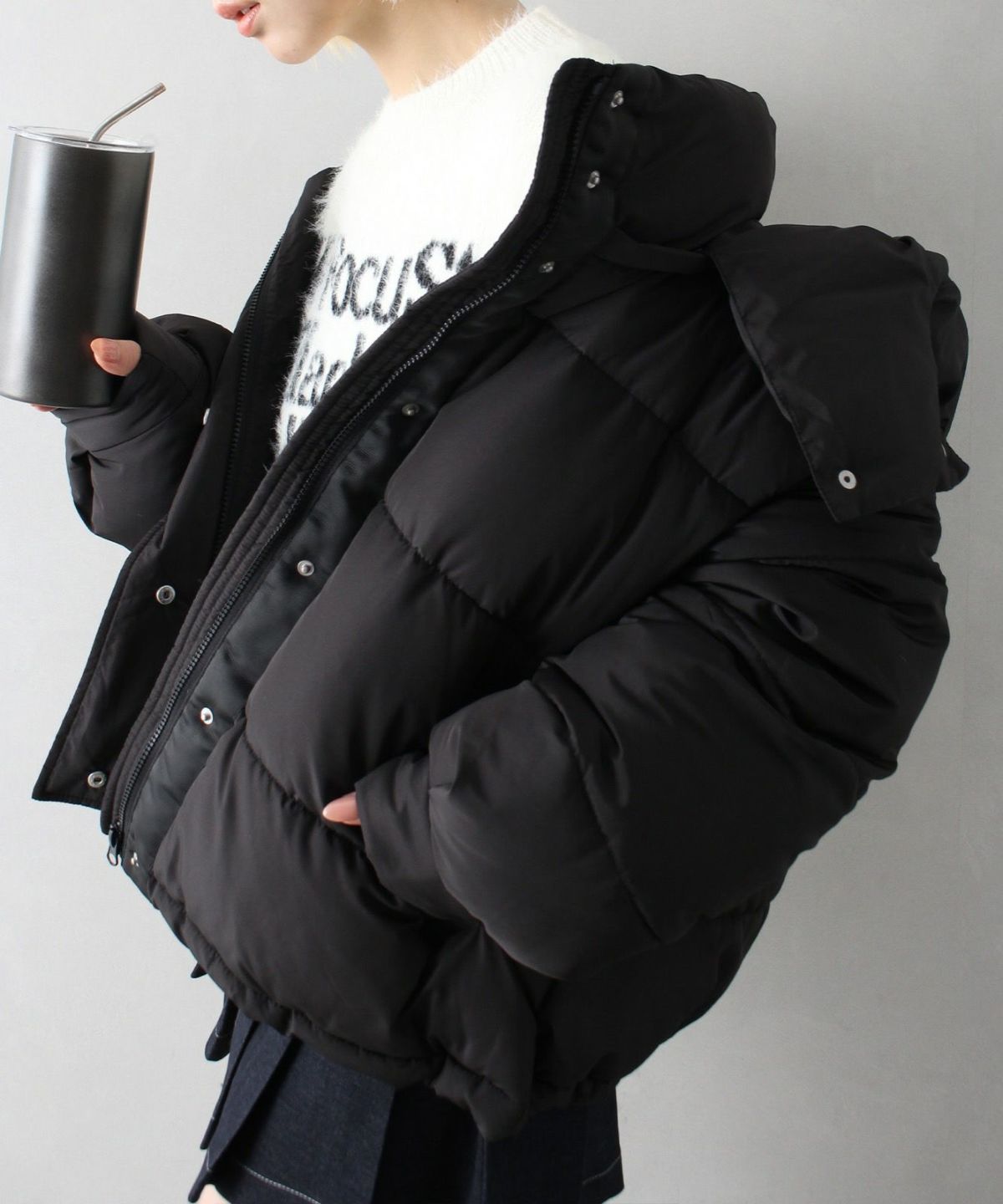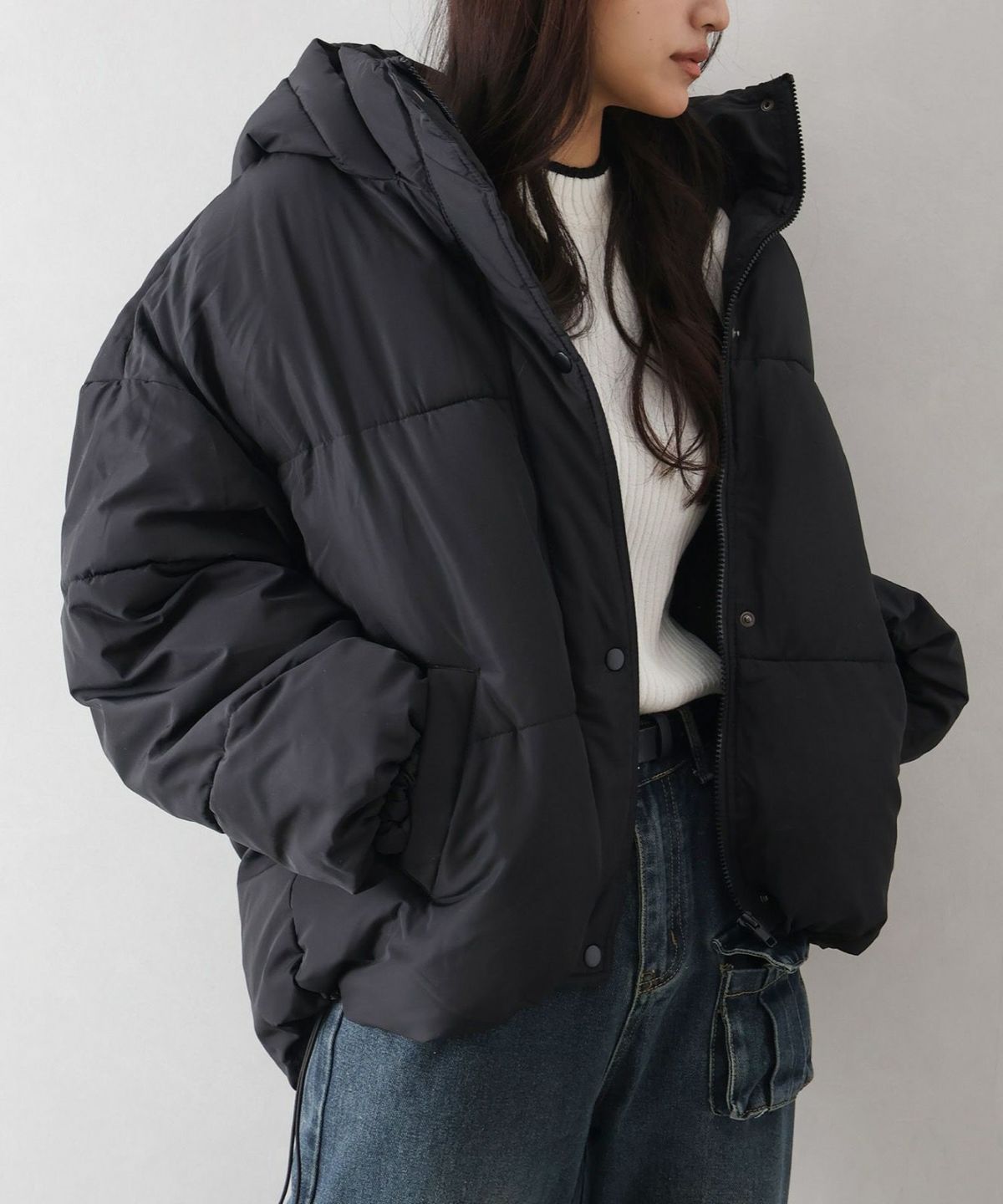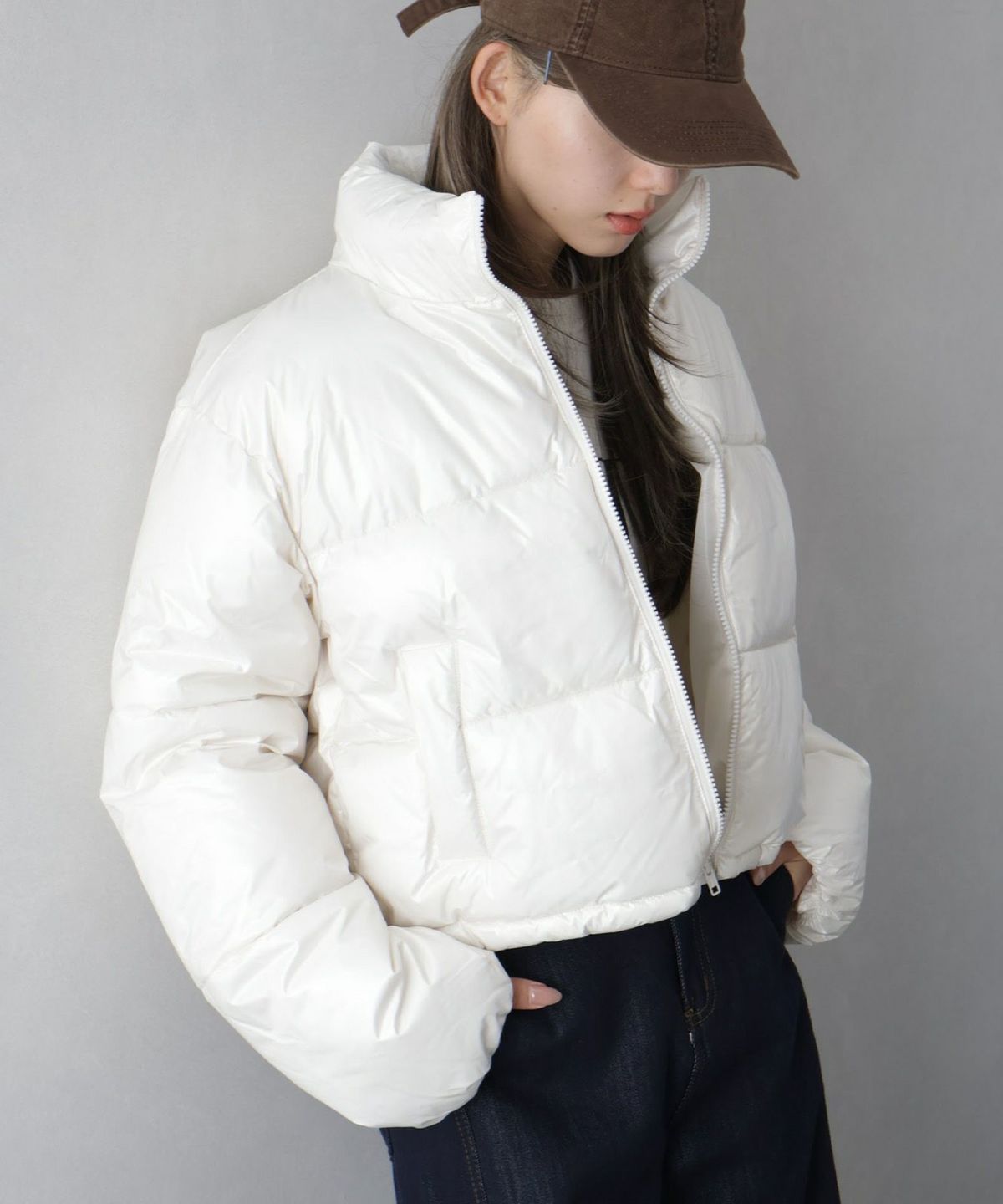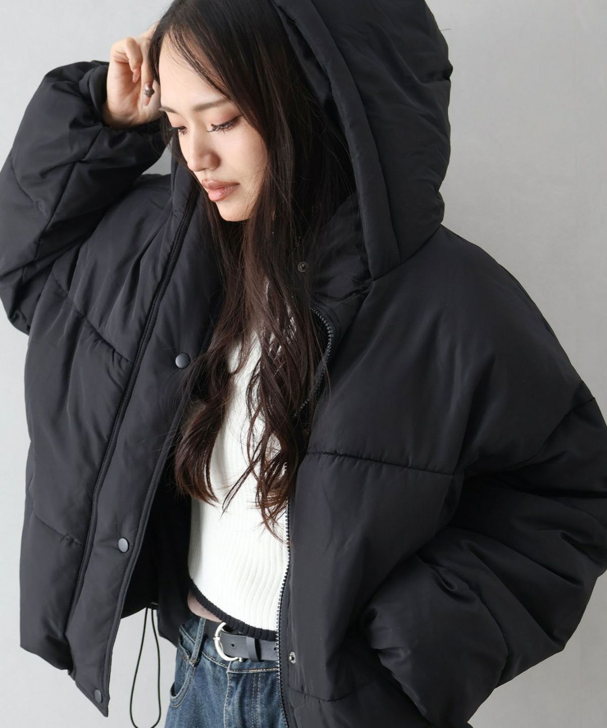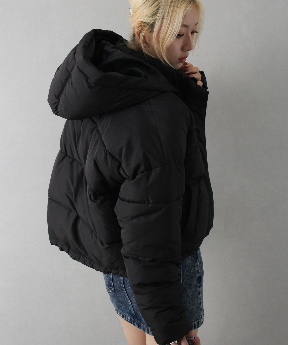 フード付きクロップドエコダウン