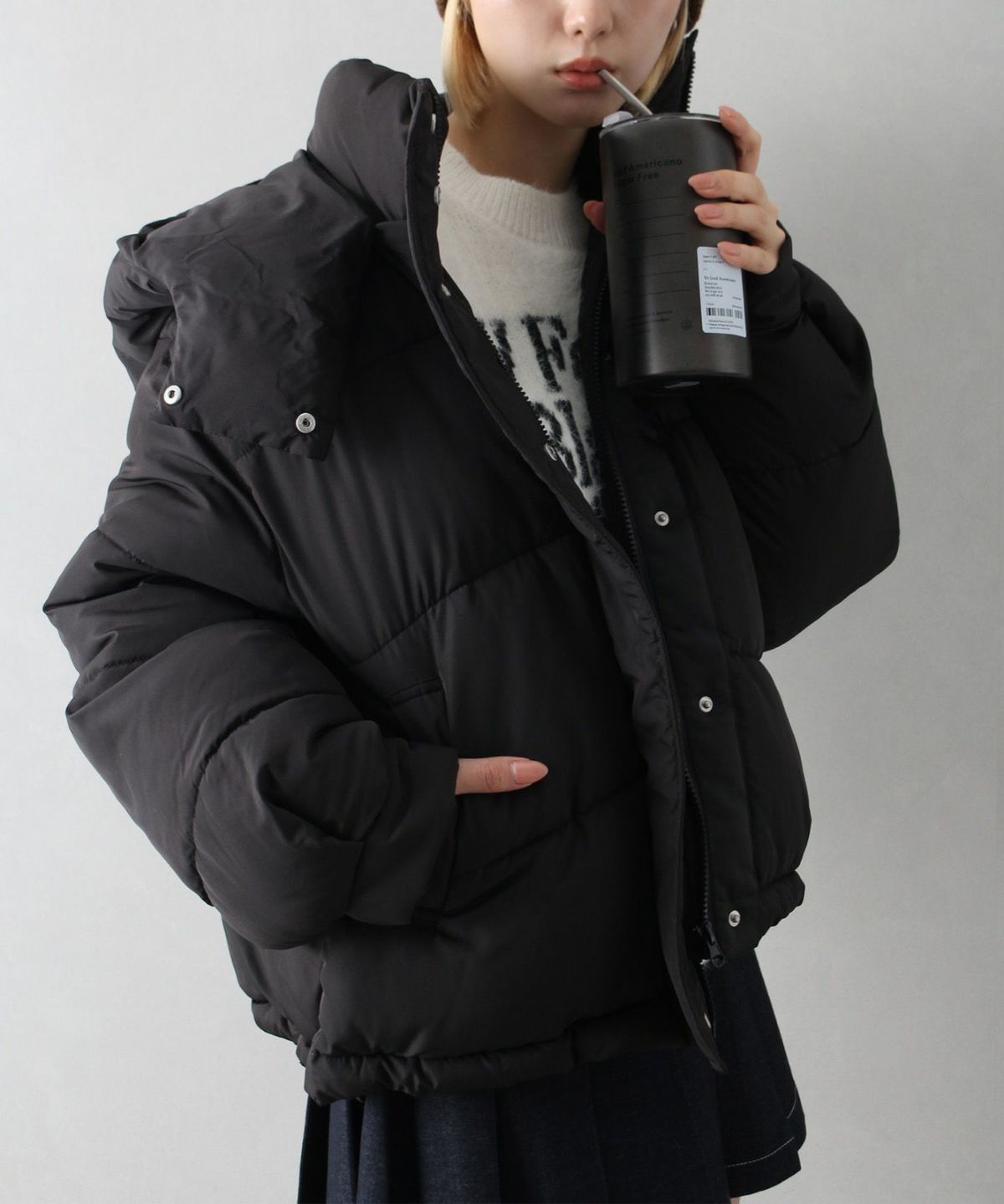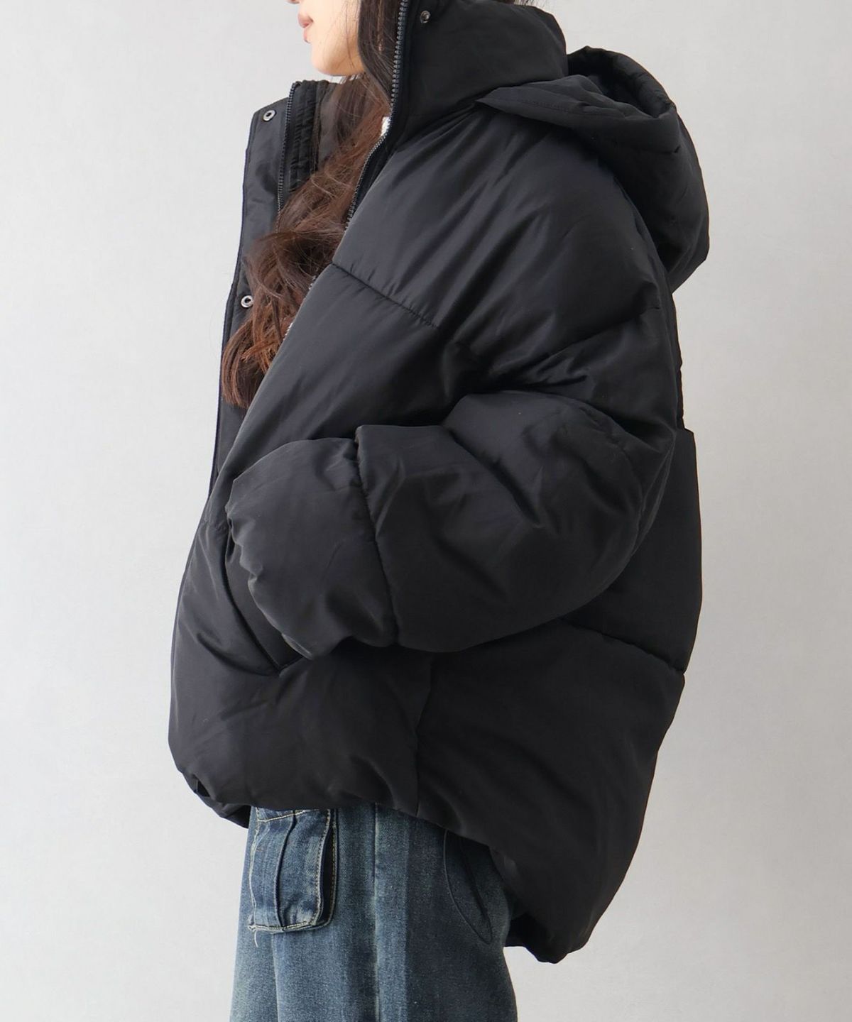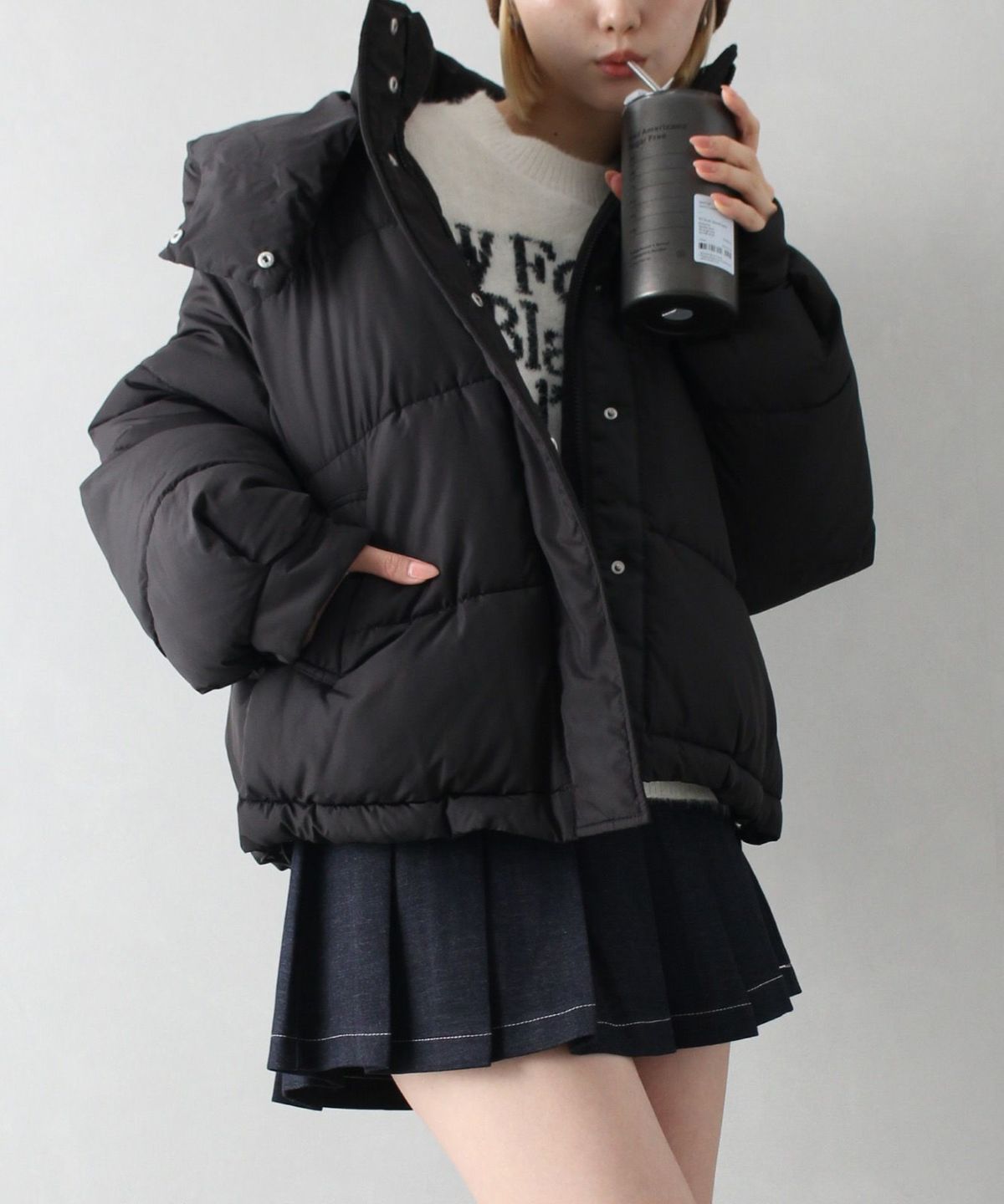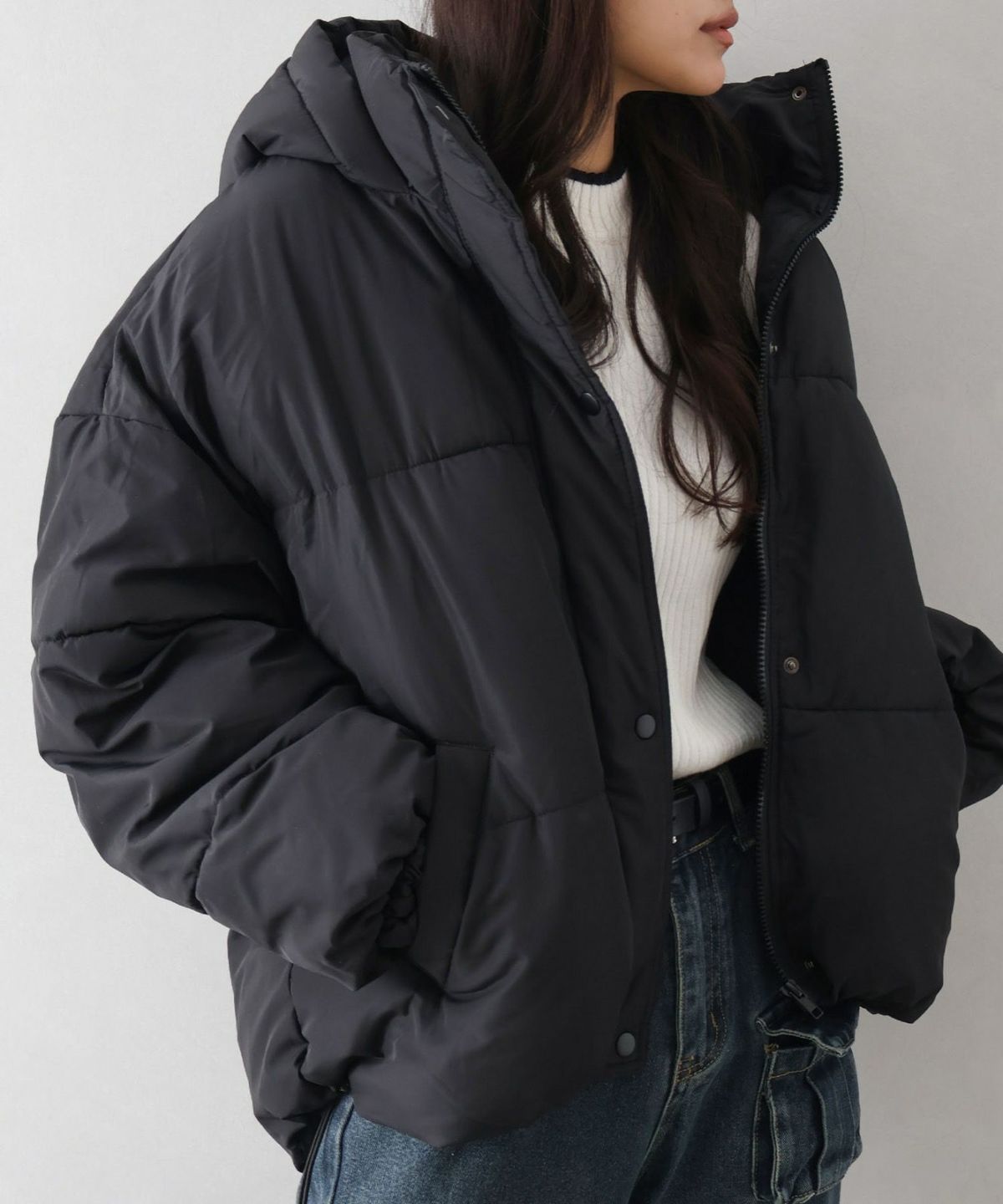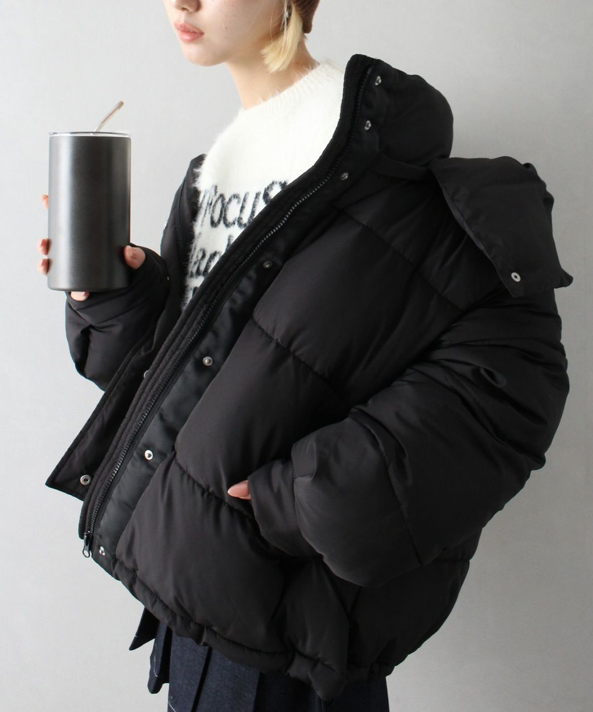 フード付きクロップドエコダウン