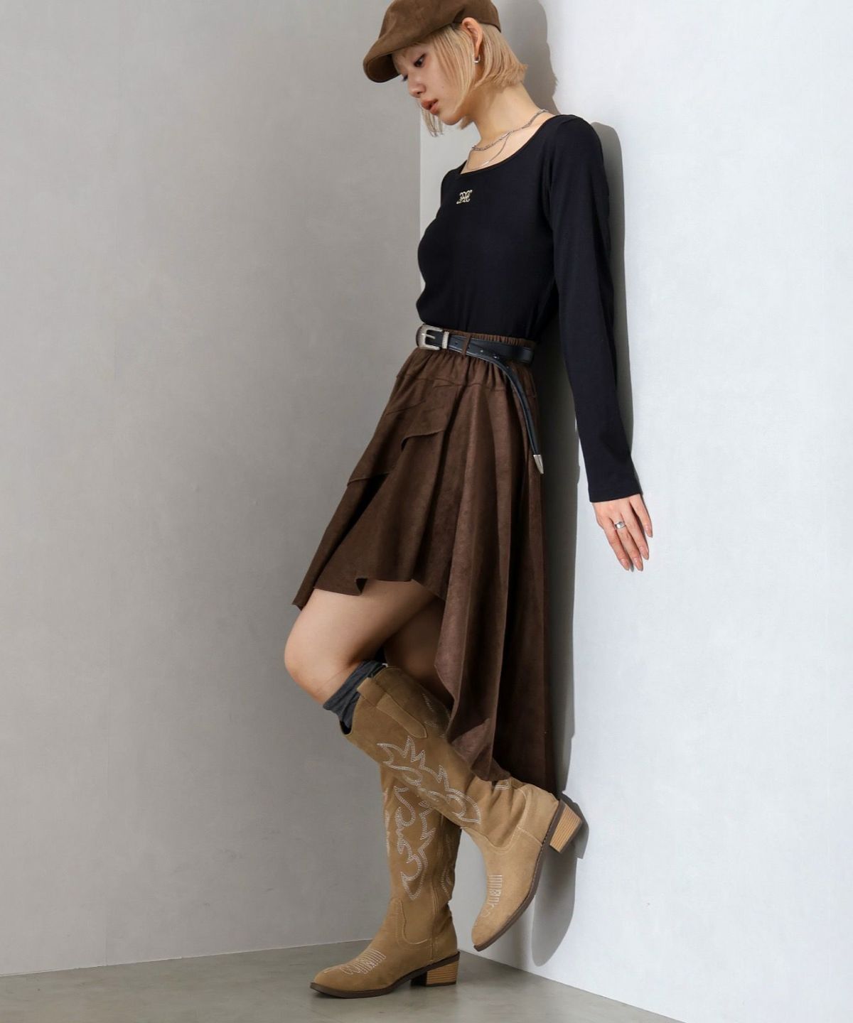 フェイクスウェードフリルヘムスカート