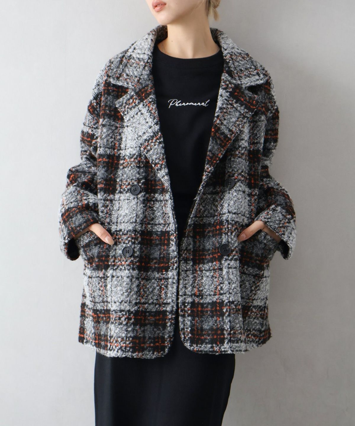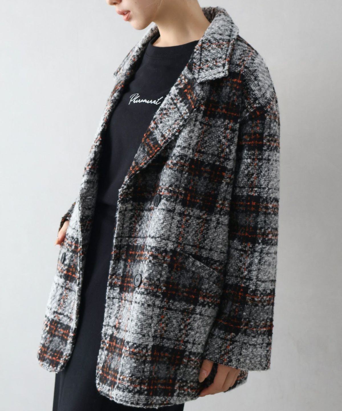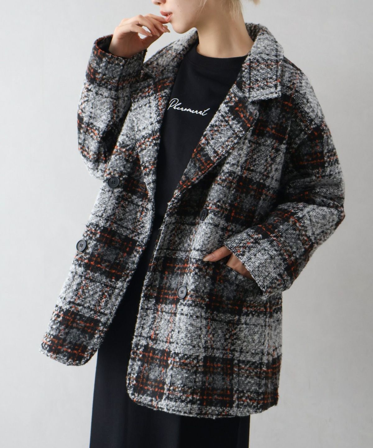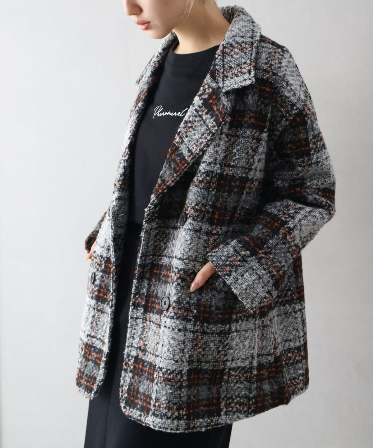 ブークレチェックビッグジャケット