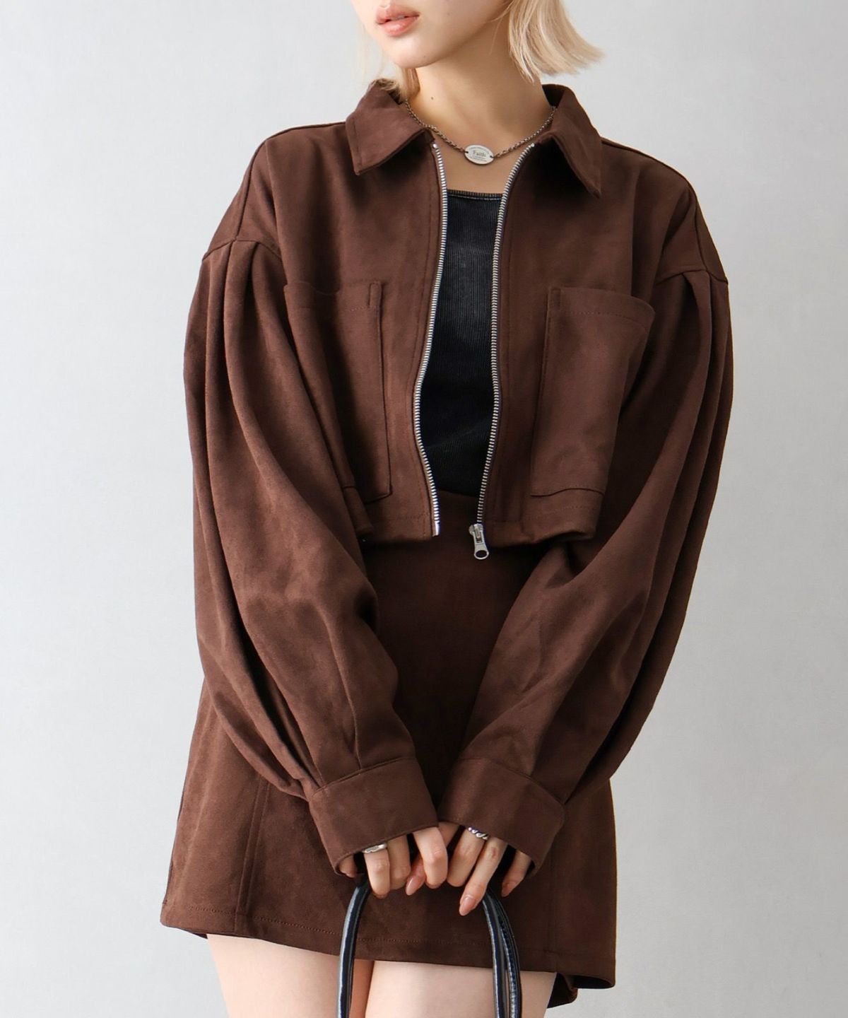 スウェードポンチZIPショートブルゾン