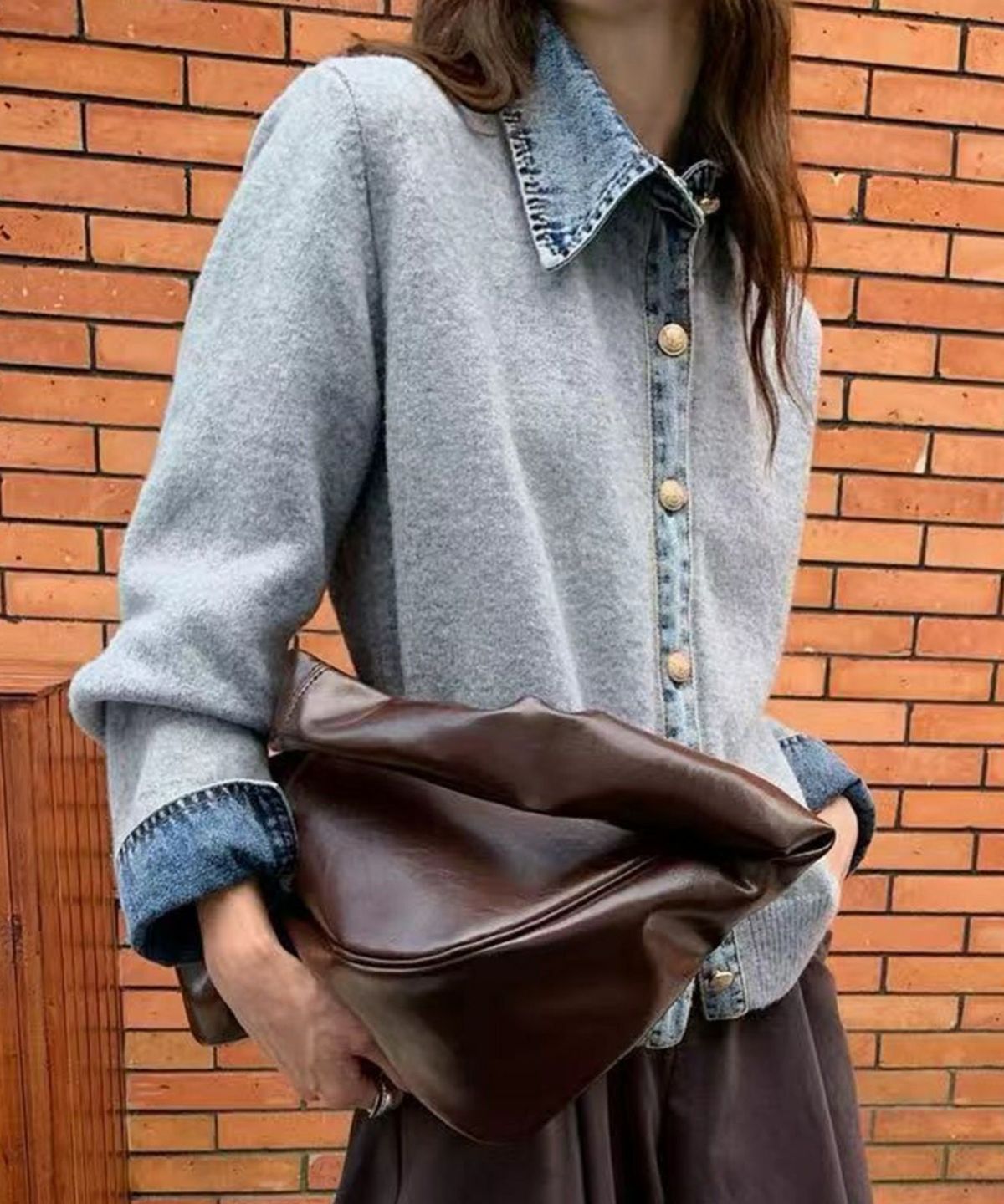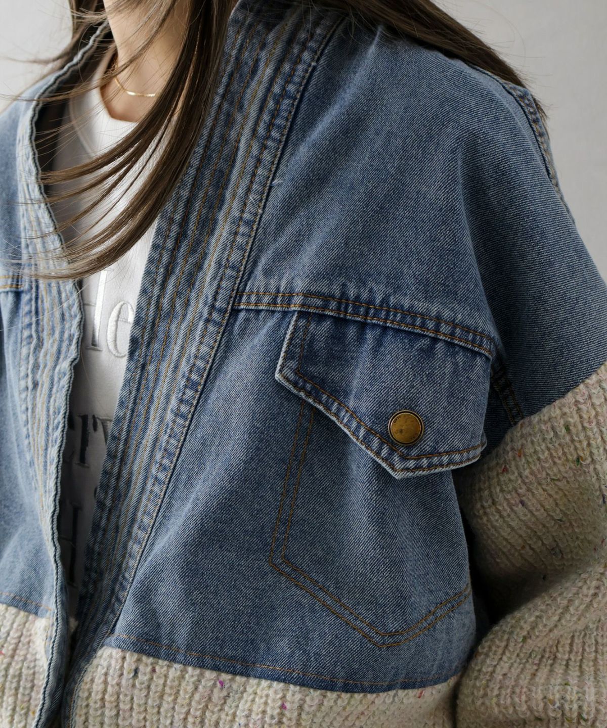 デニム切替フェイクレイヤードカーディガン