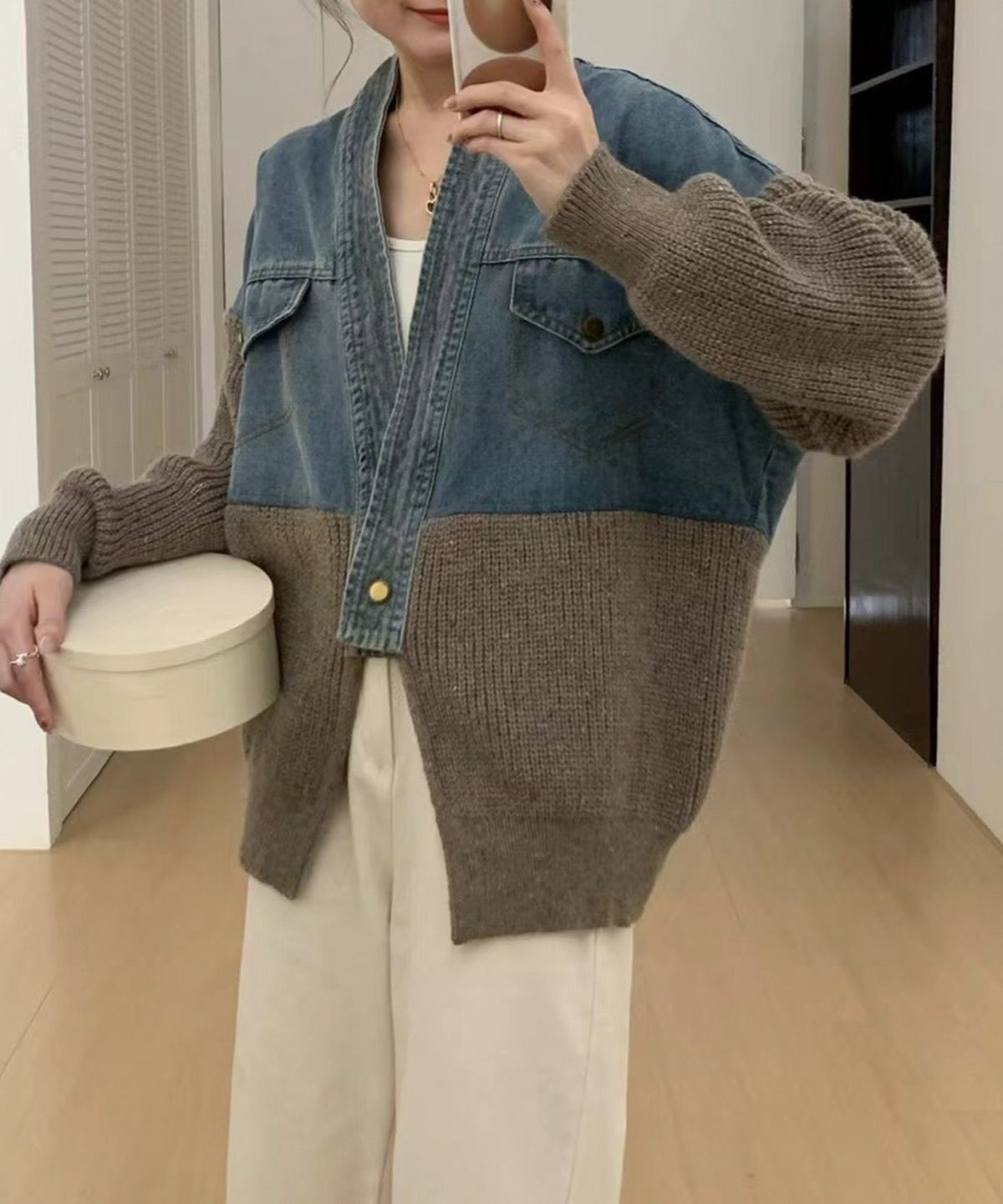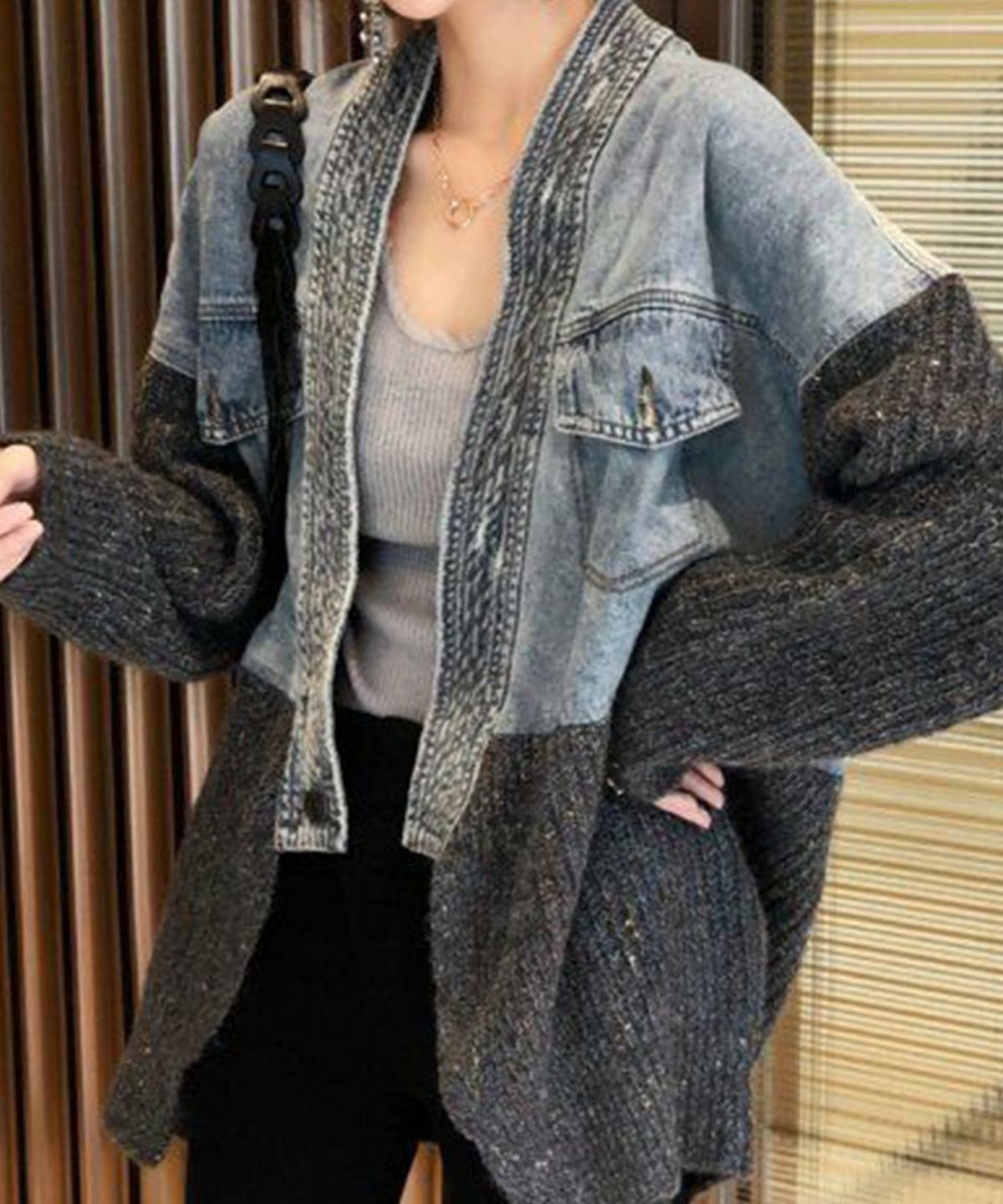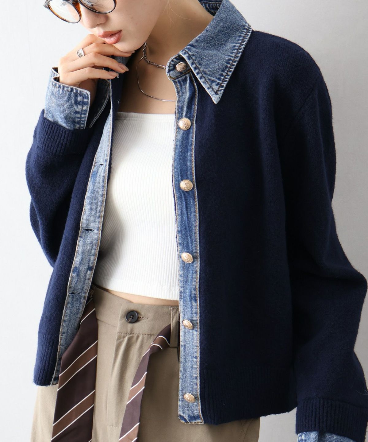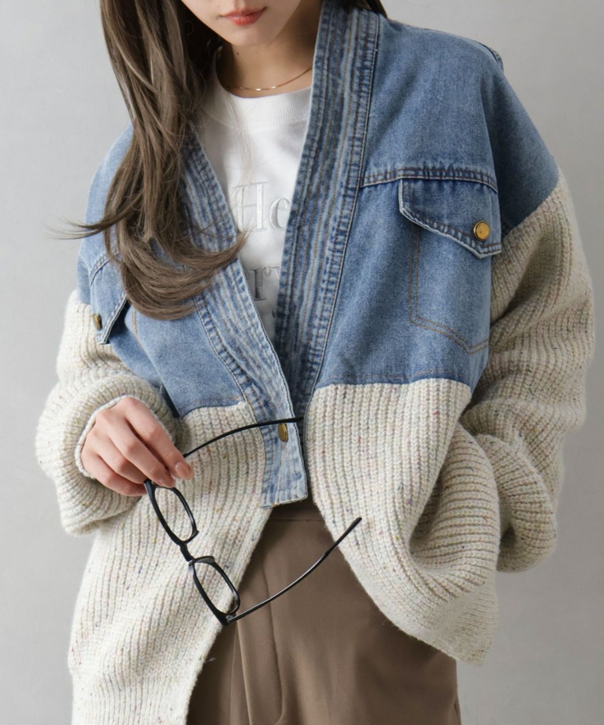 デニム切替ニットカーディガン