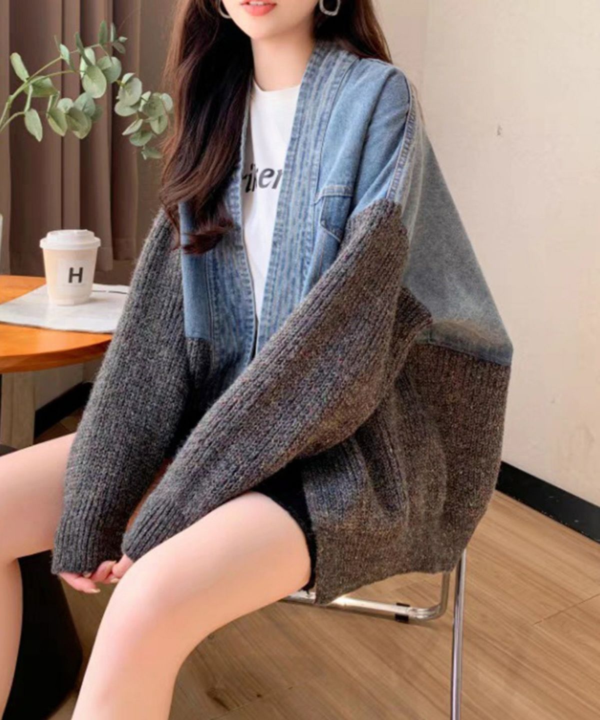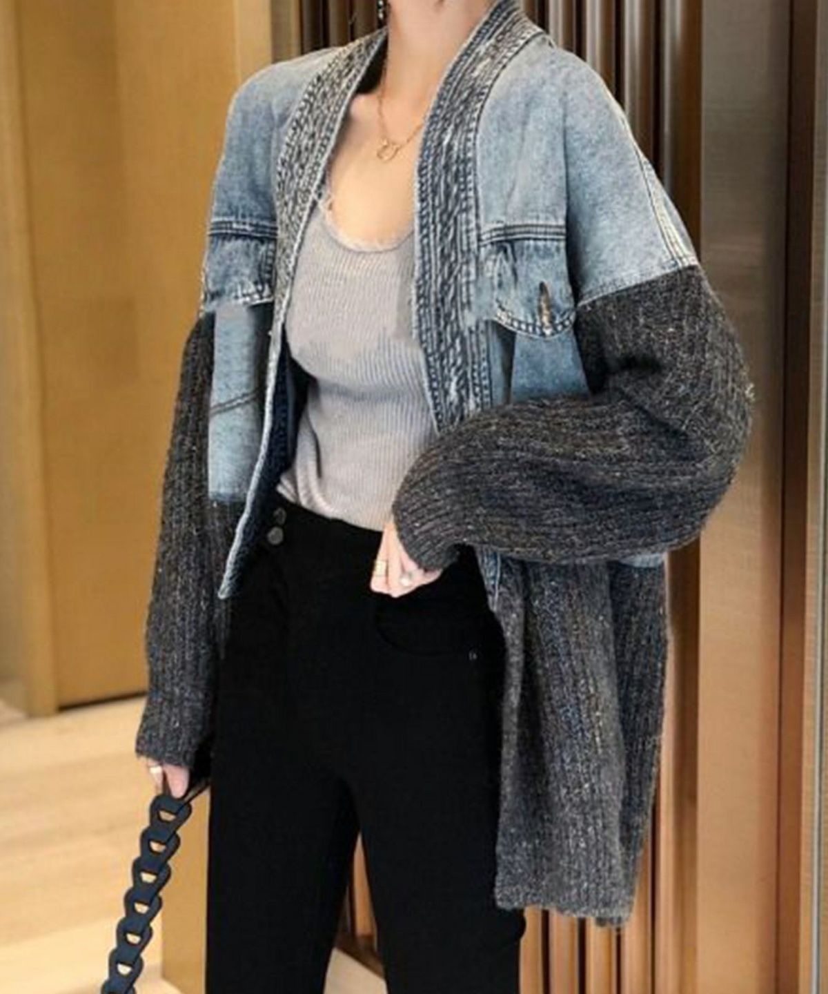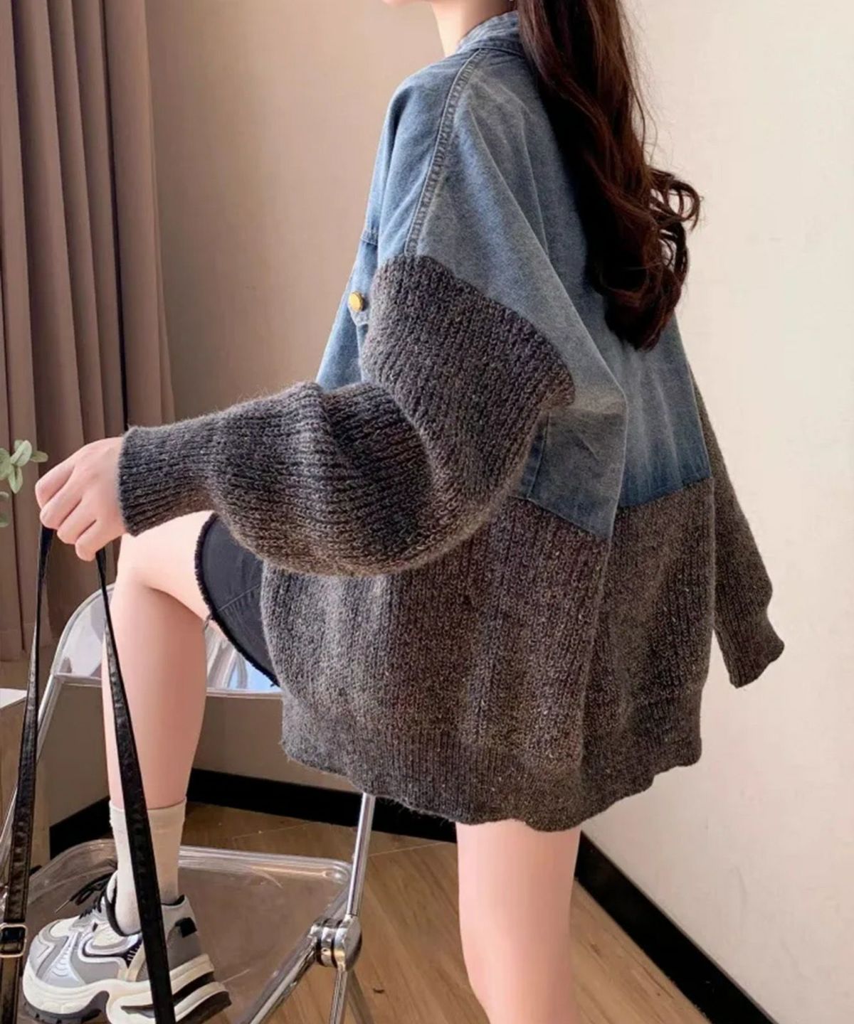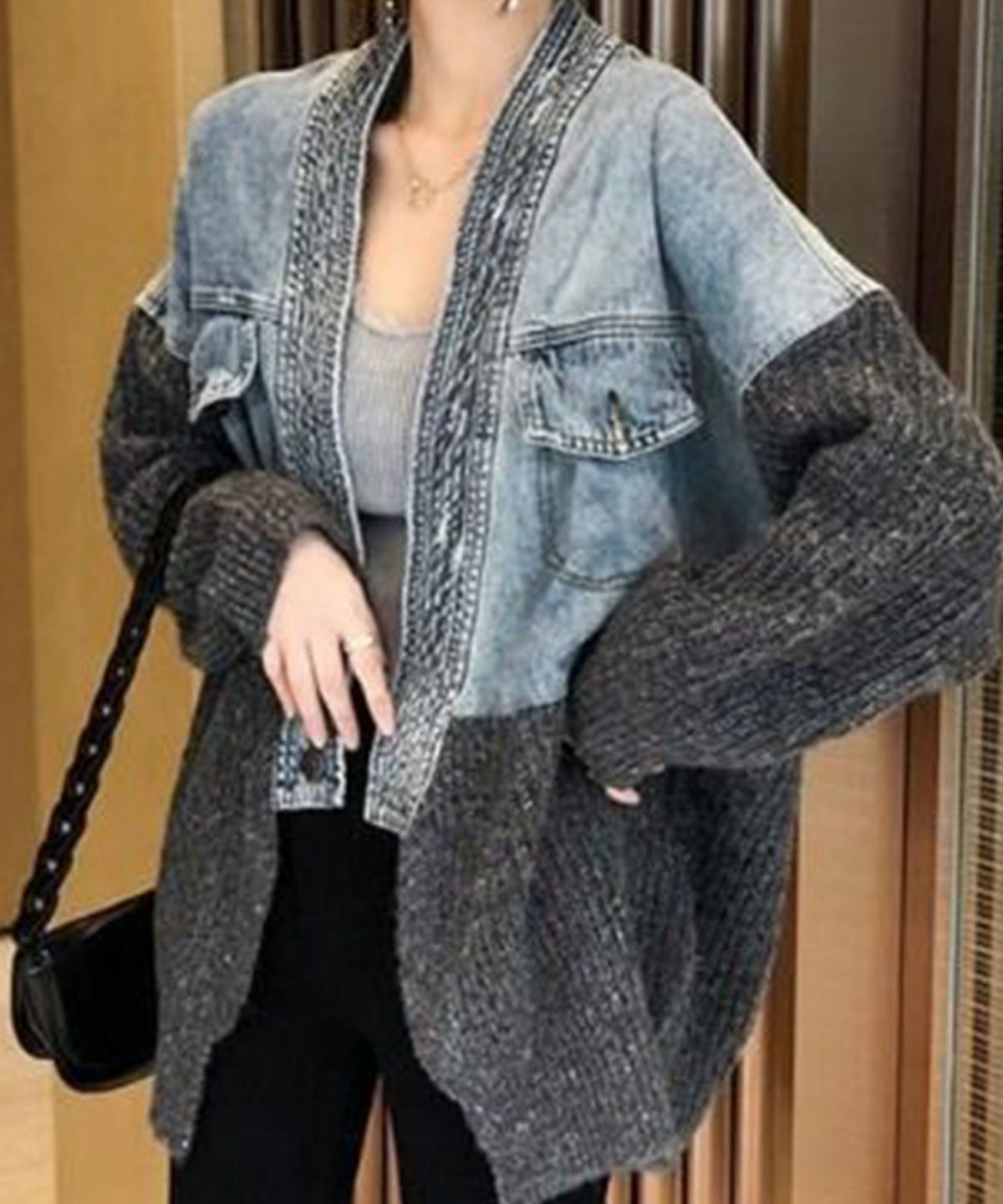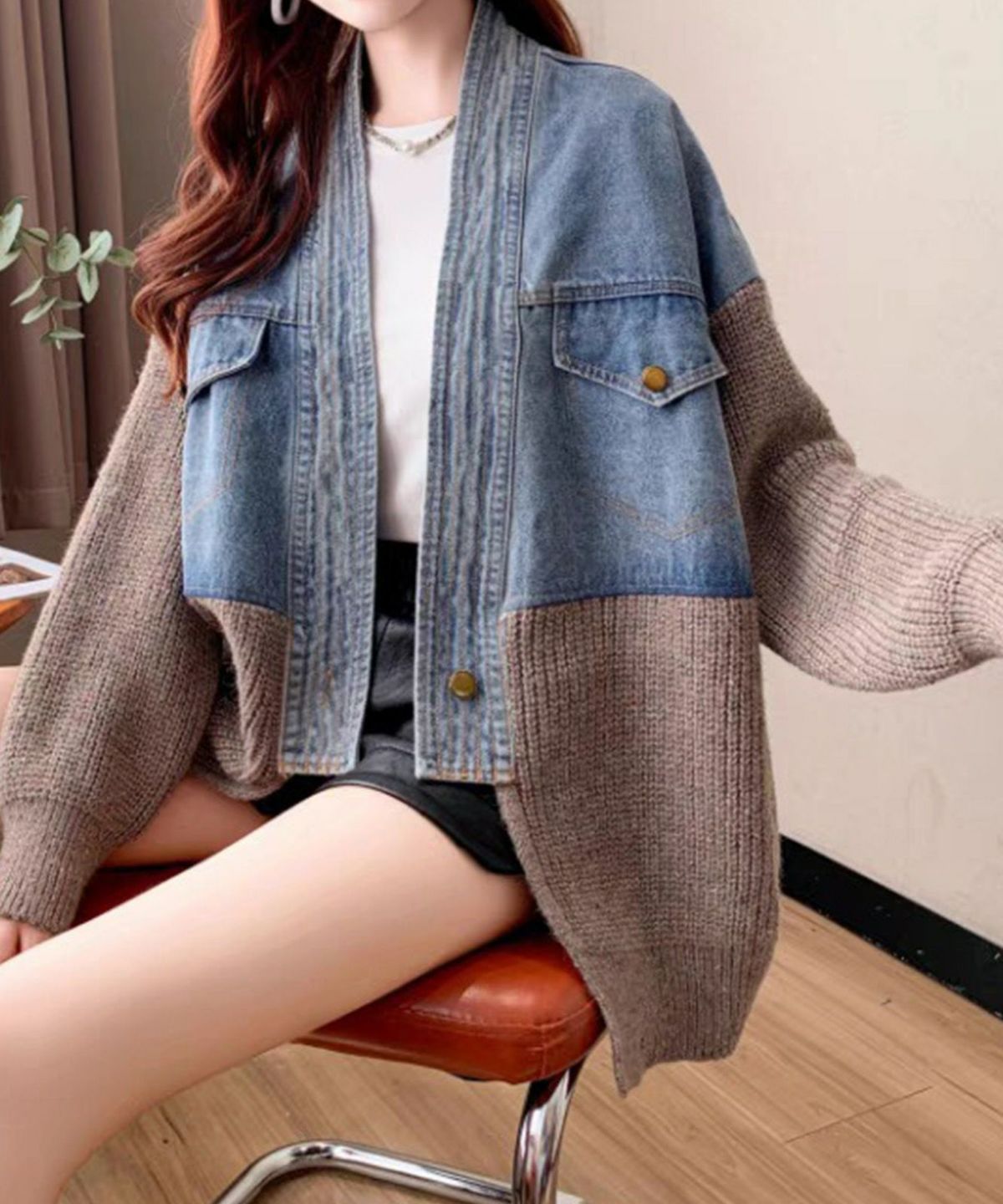 デニム切替ニットカーディガン