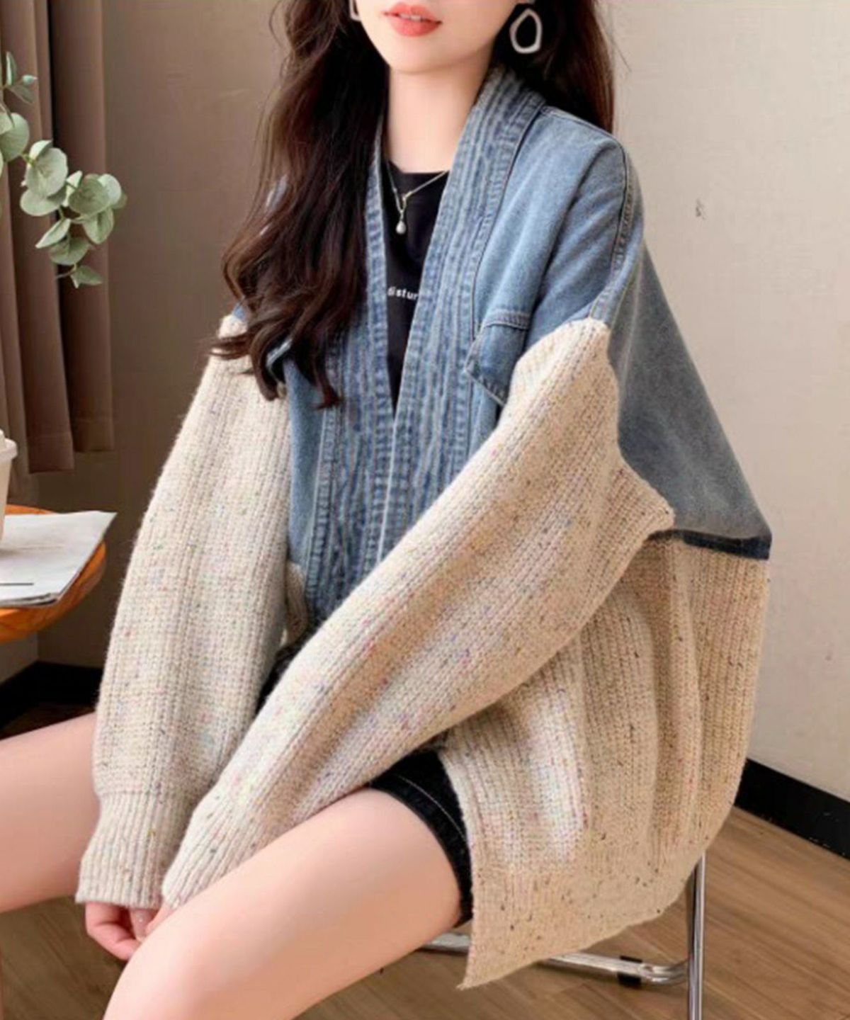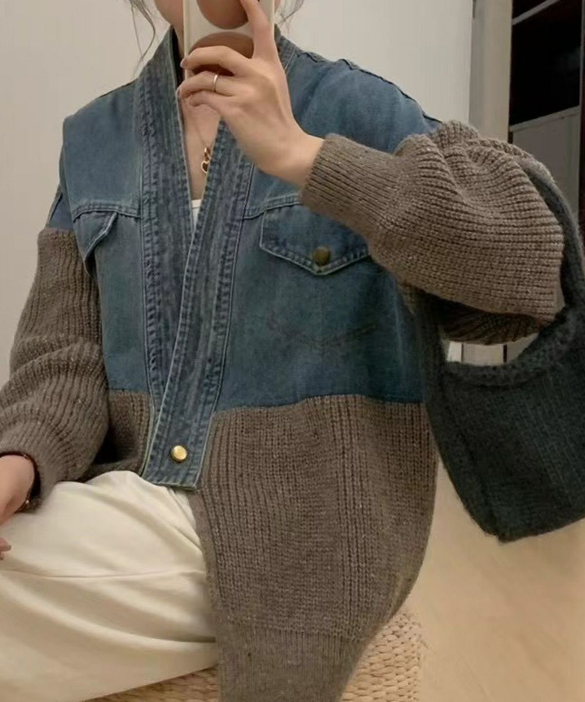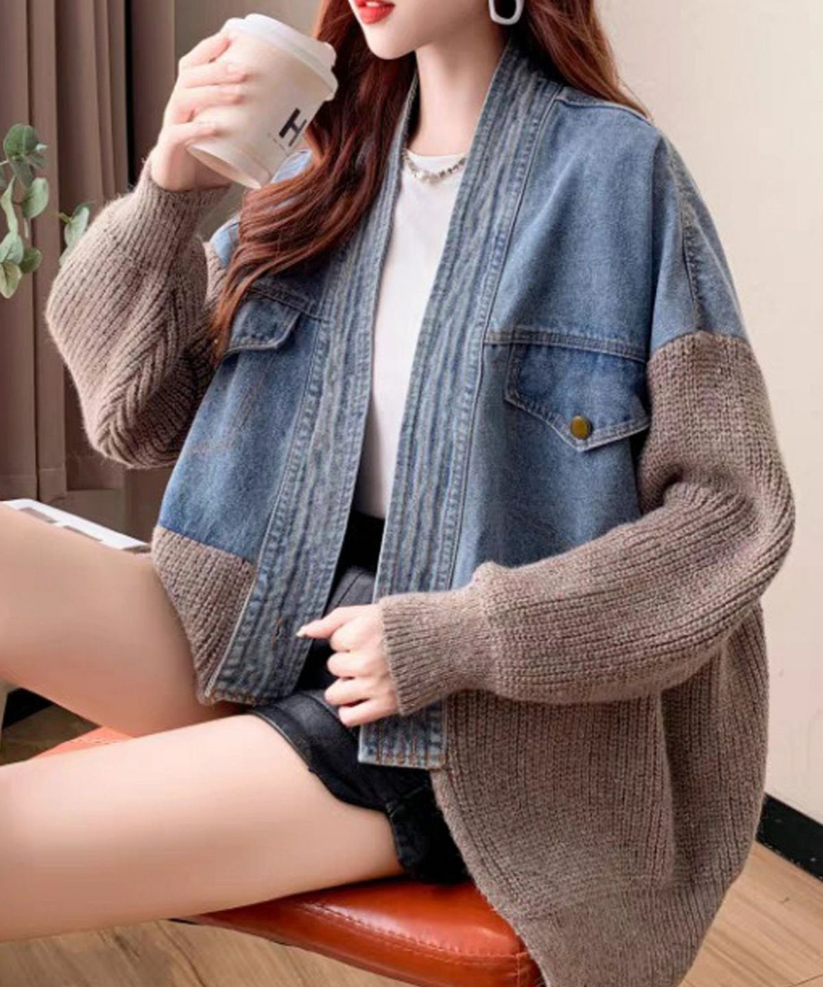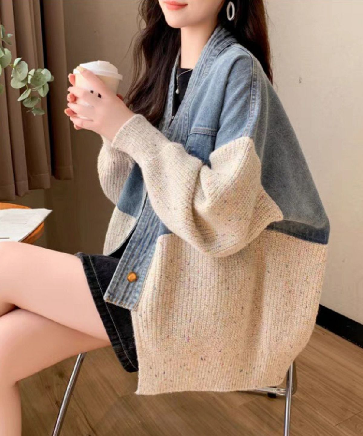 デニム切替ニットカーディガン