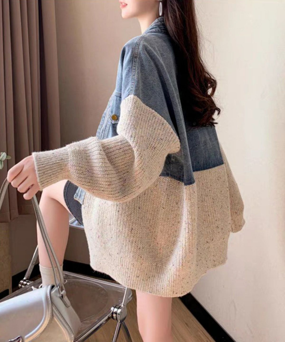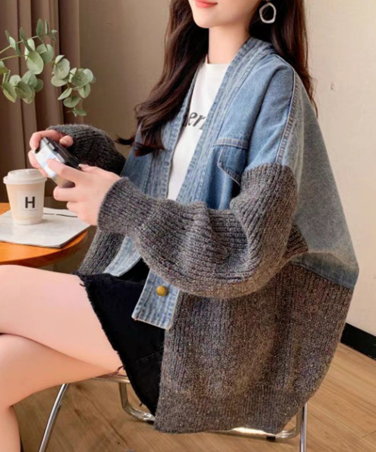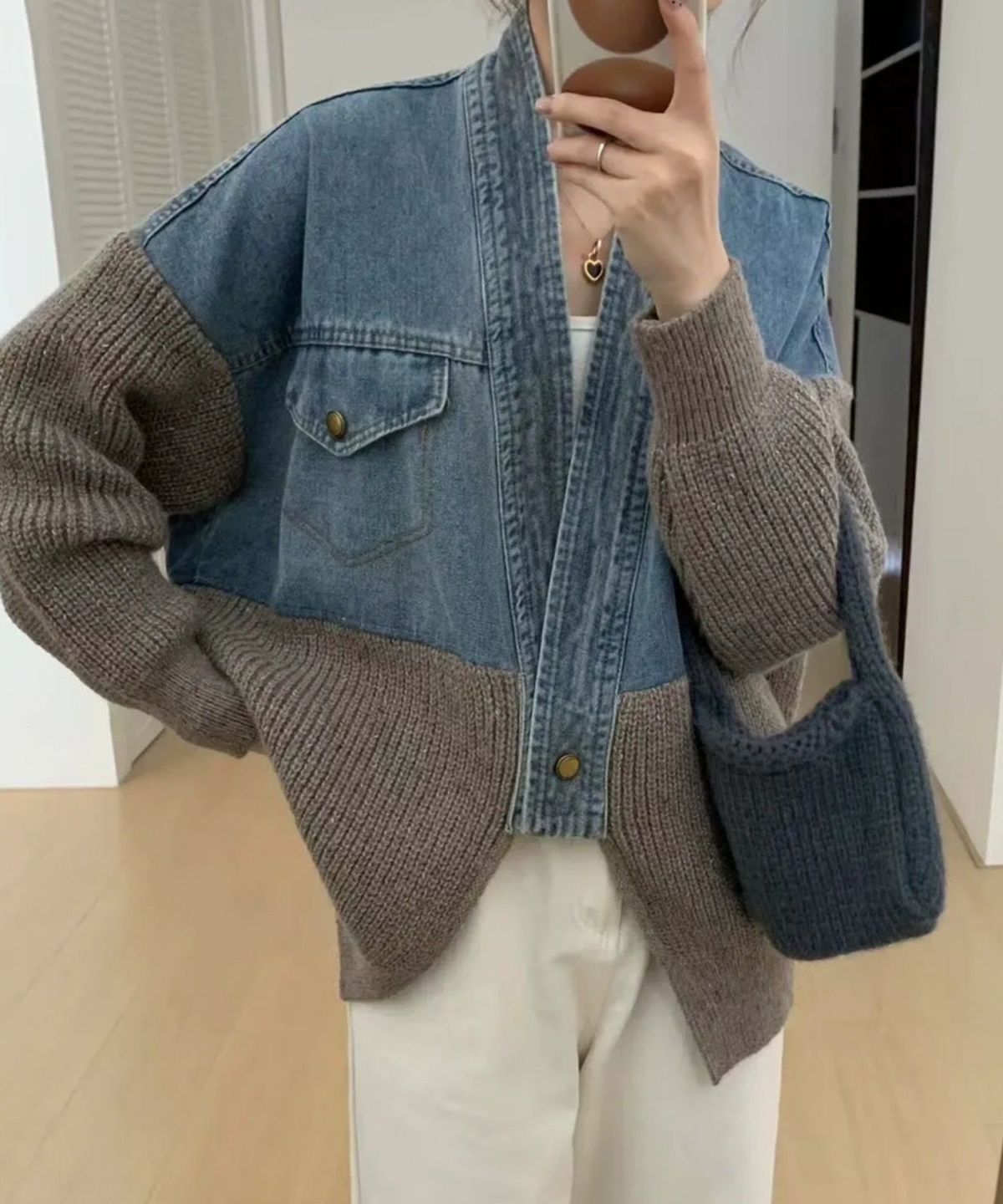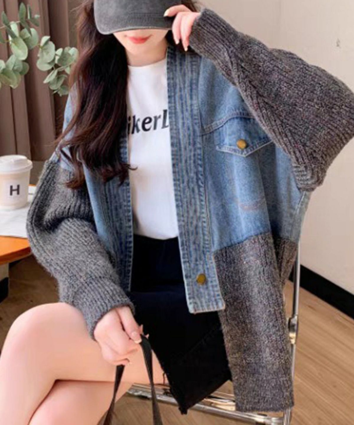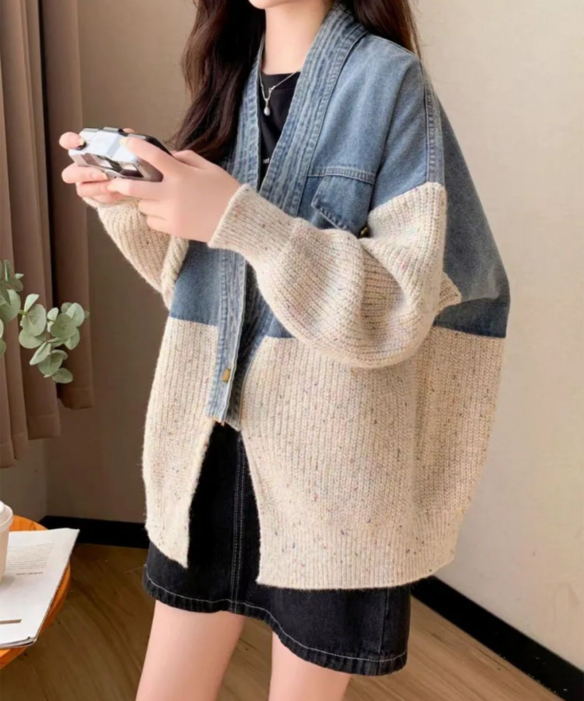 デニム切替ニットカーディガン