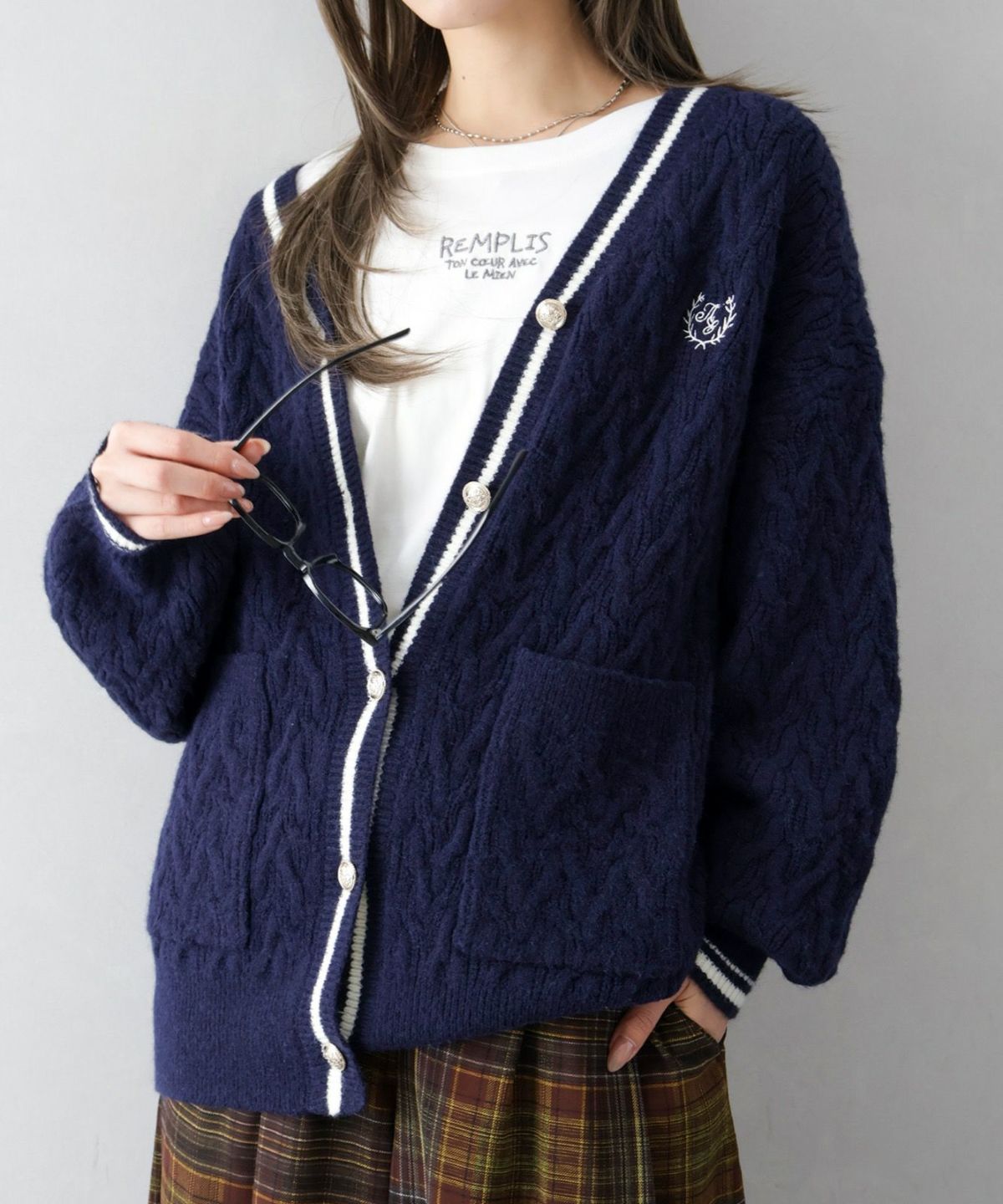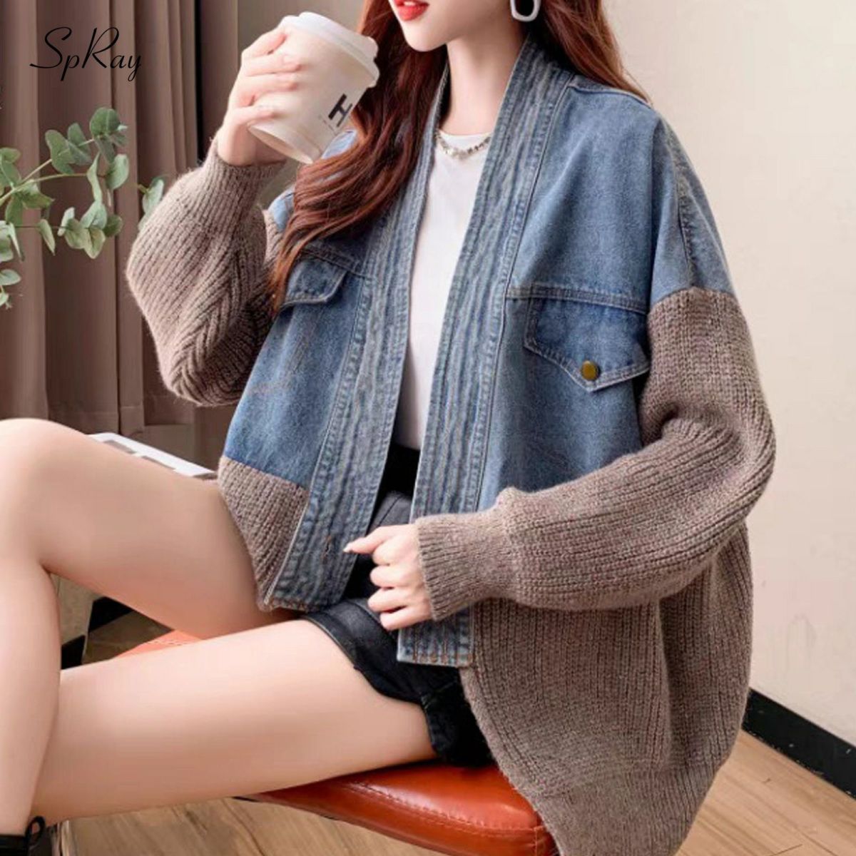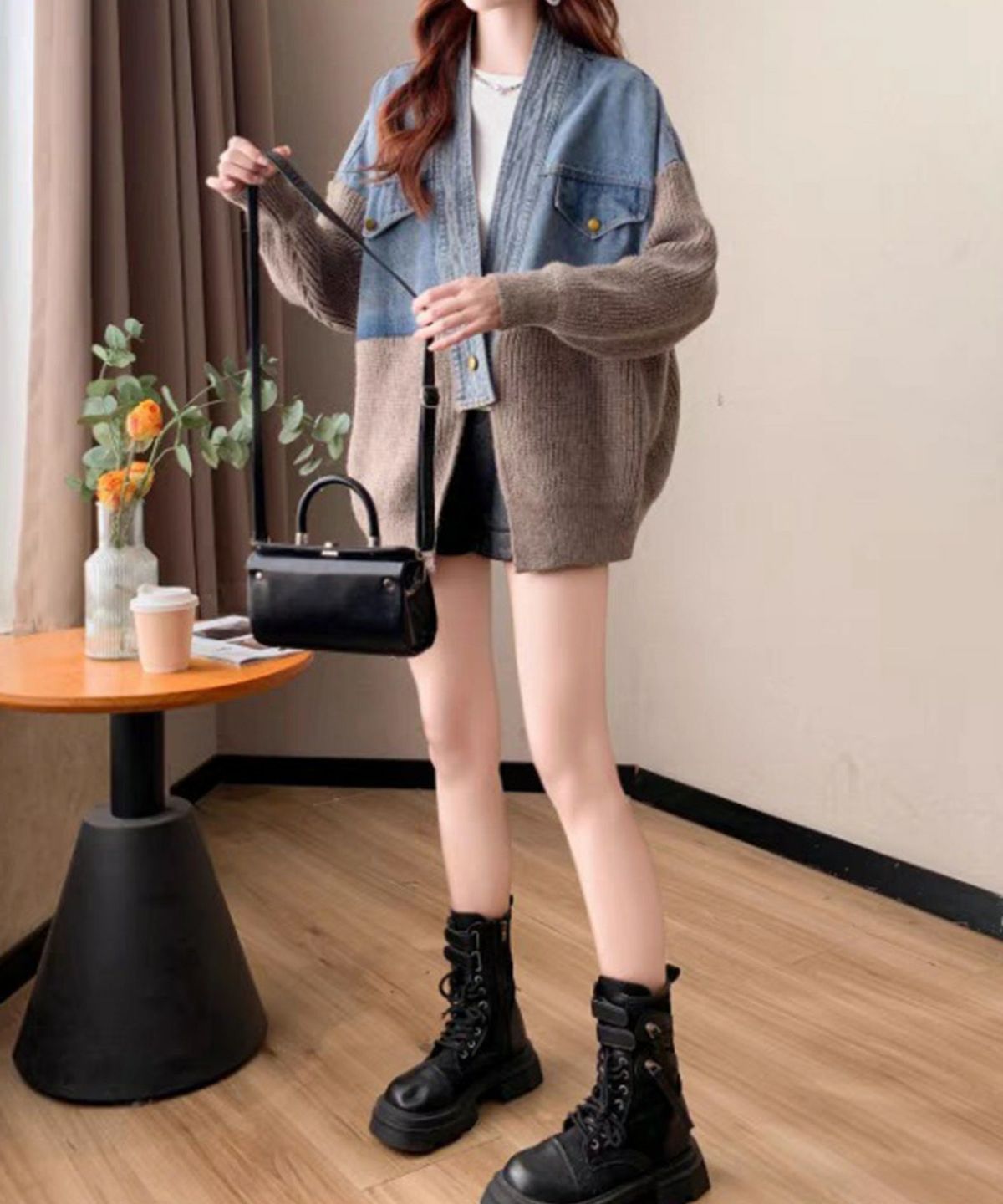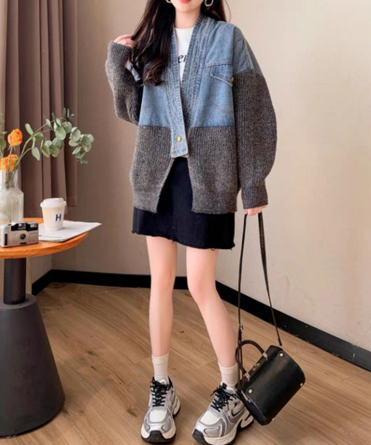 デニム切替ニットカーディガン