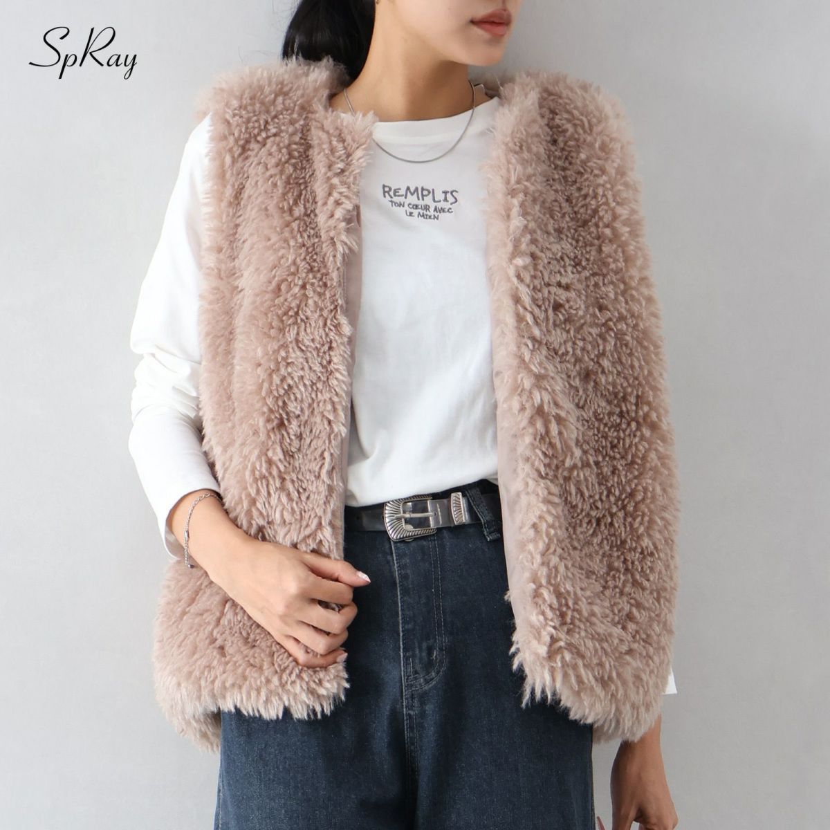 ロングフォックスノーカラーベスト
