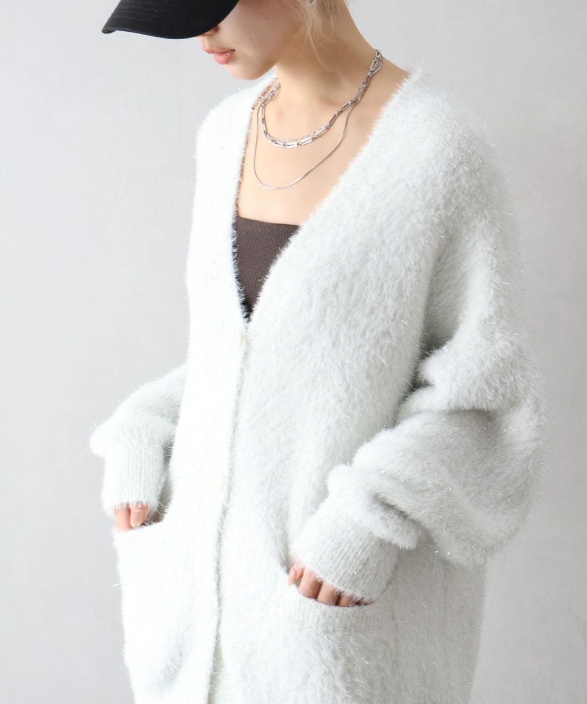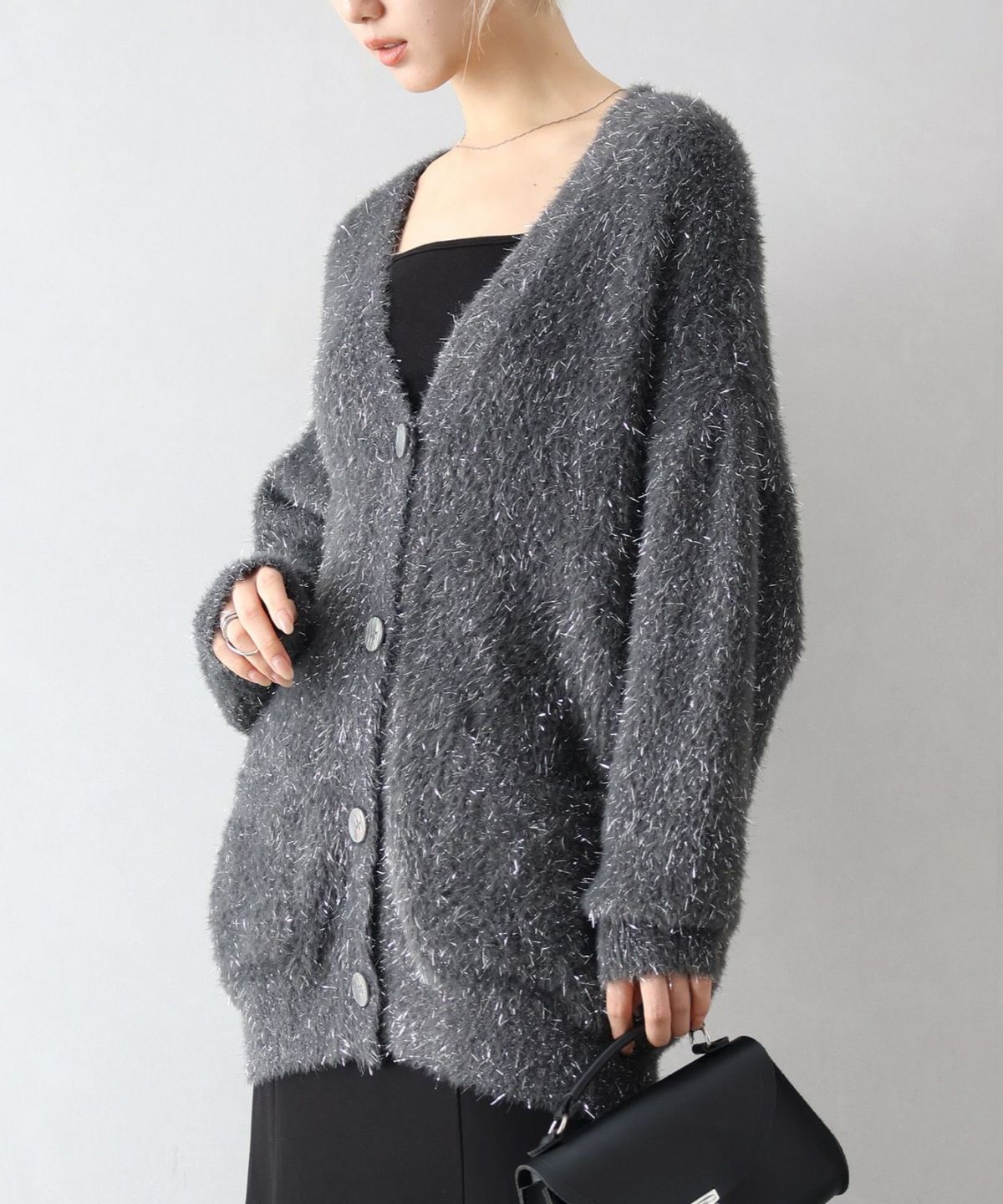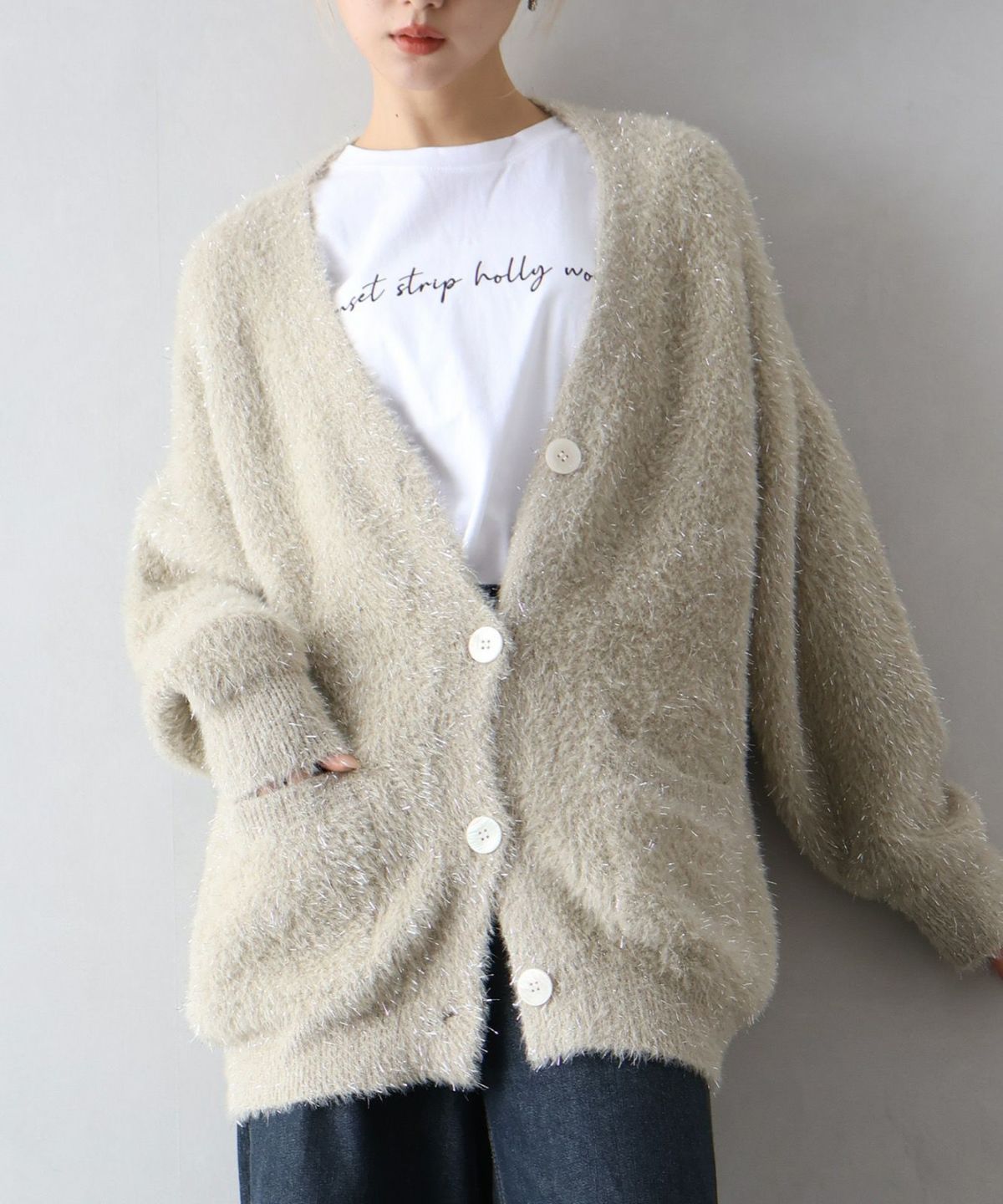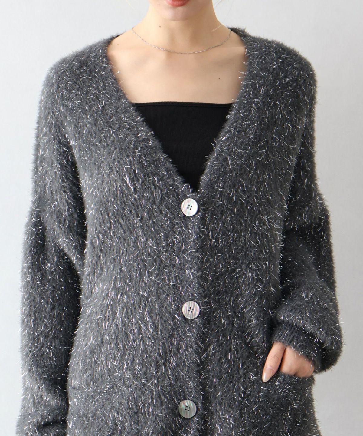 ラメシャギーロングVネックカーディガン