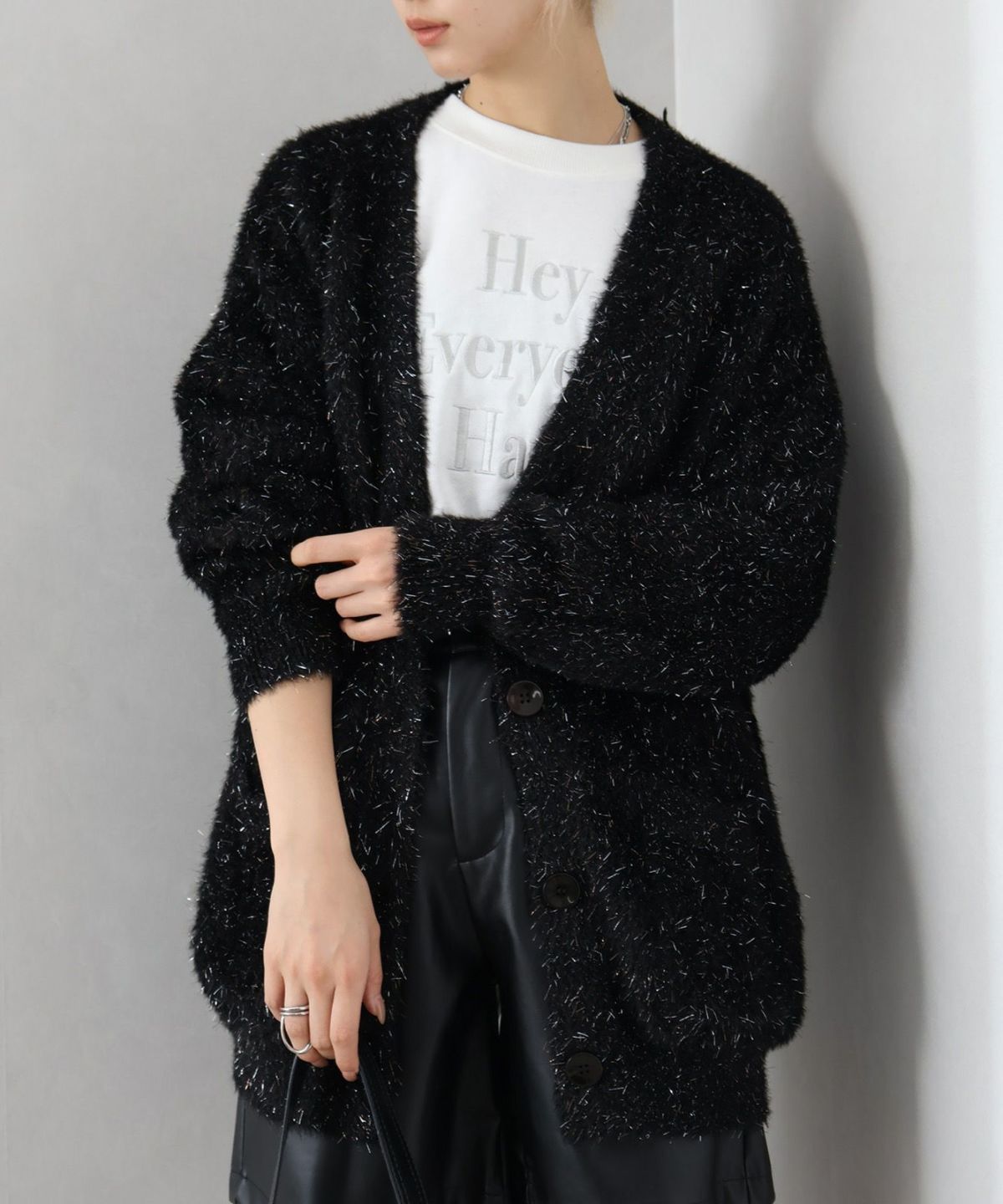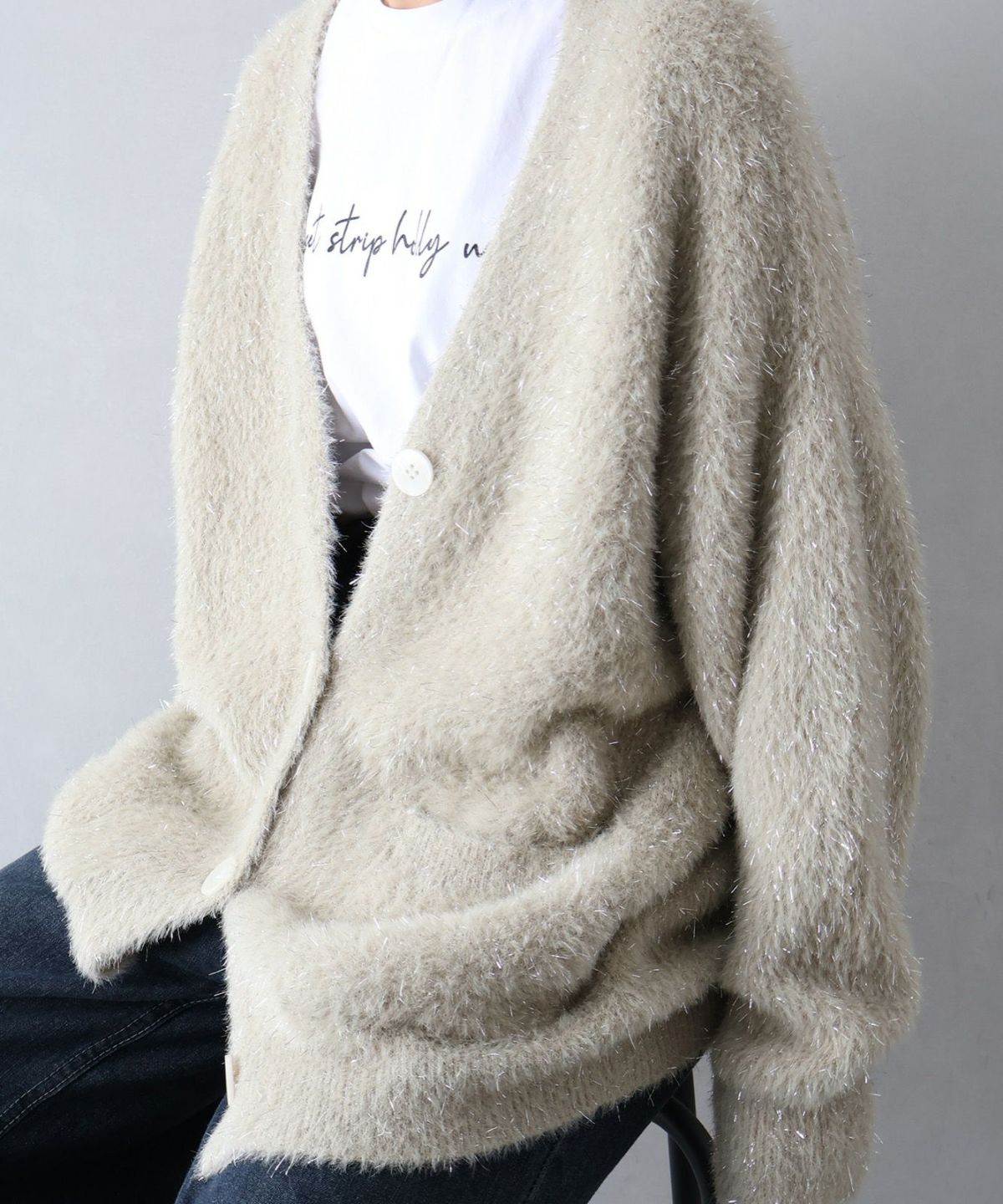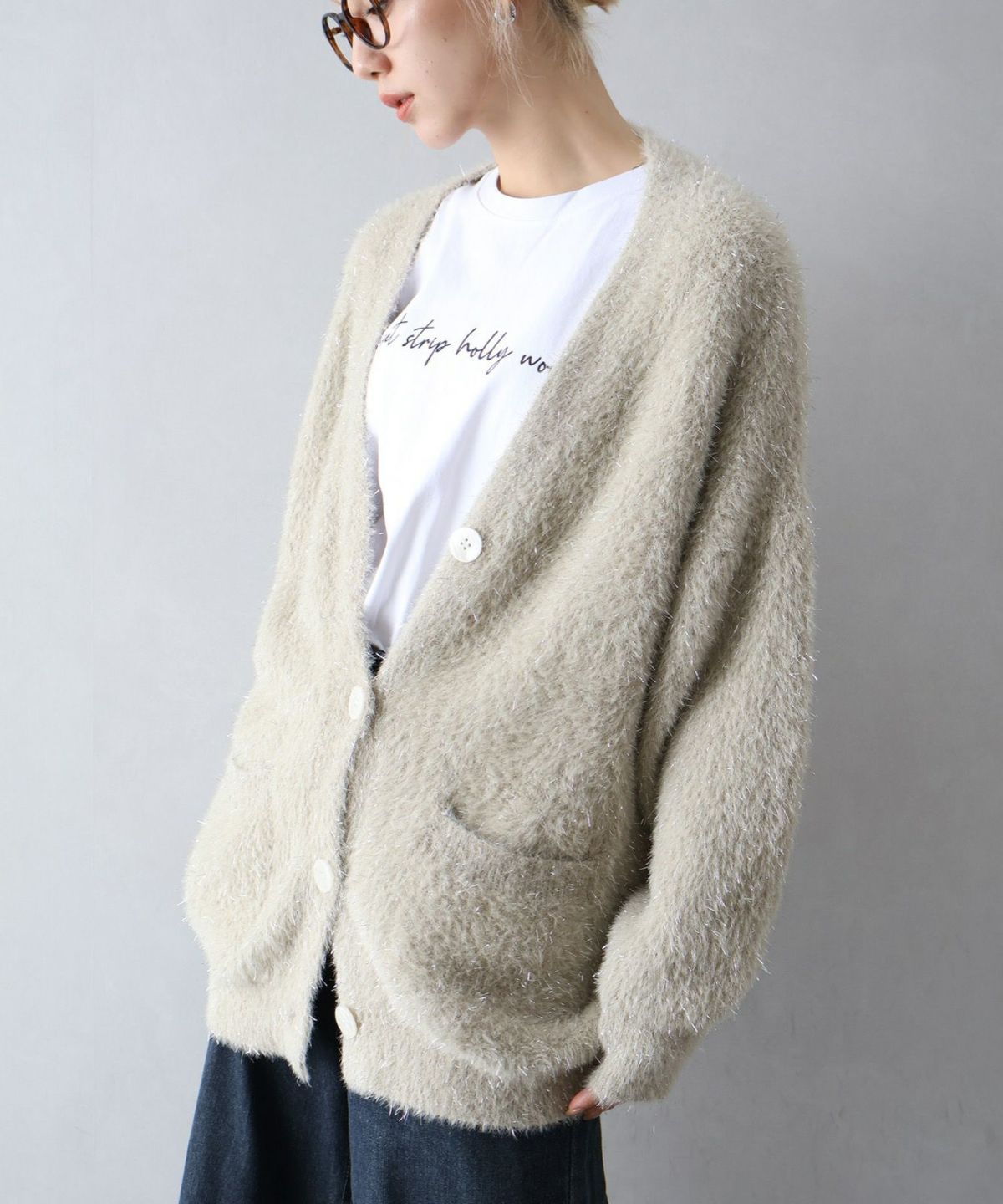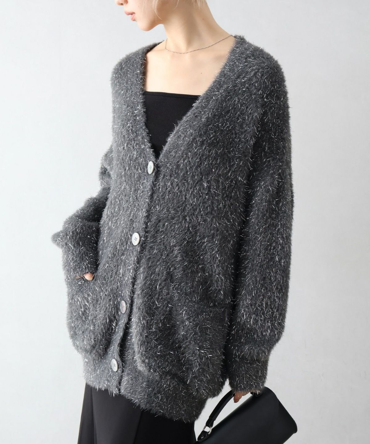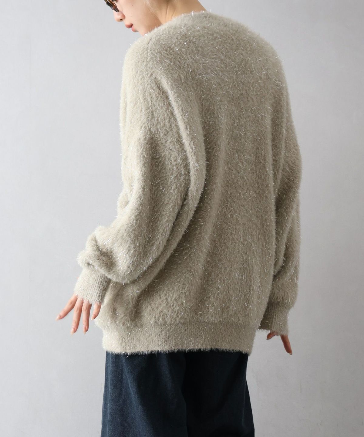 ラメシャギーロングVネックカーディガン