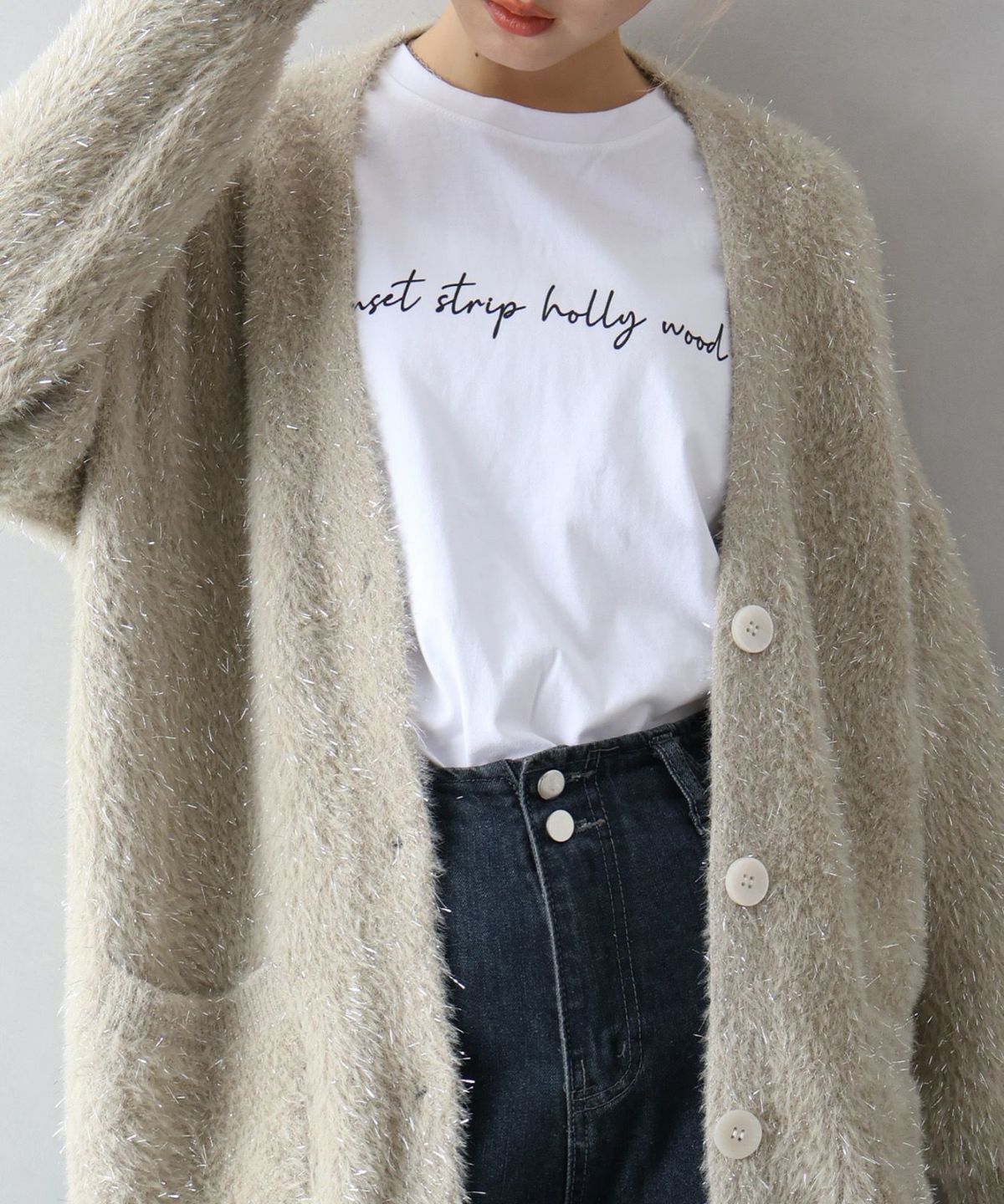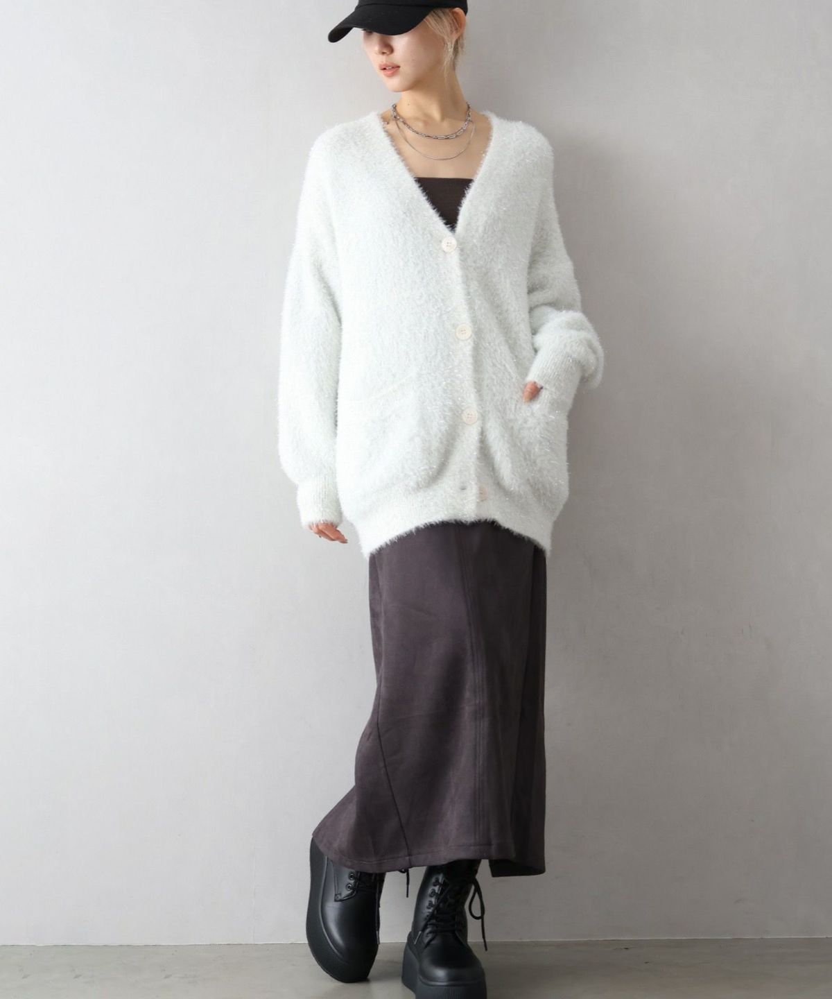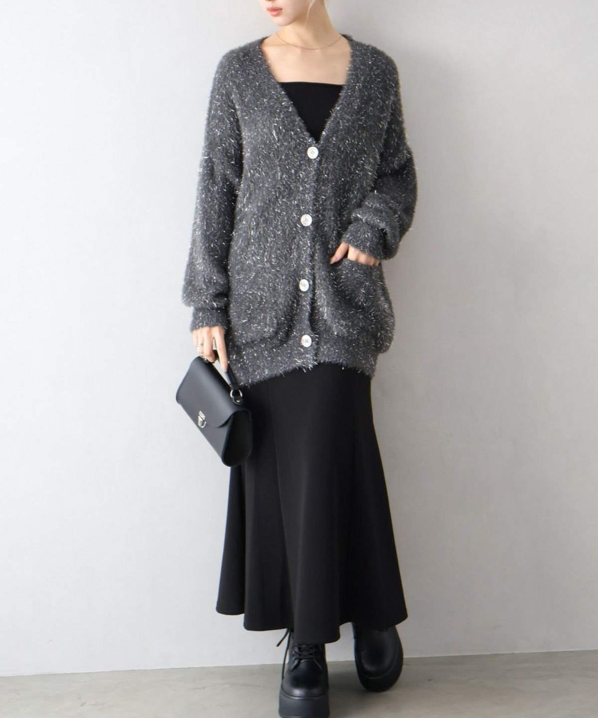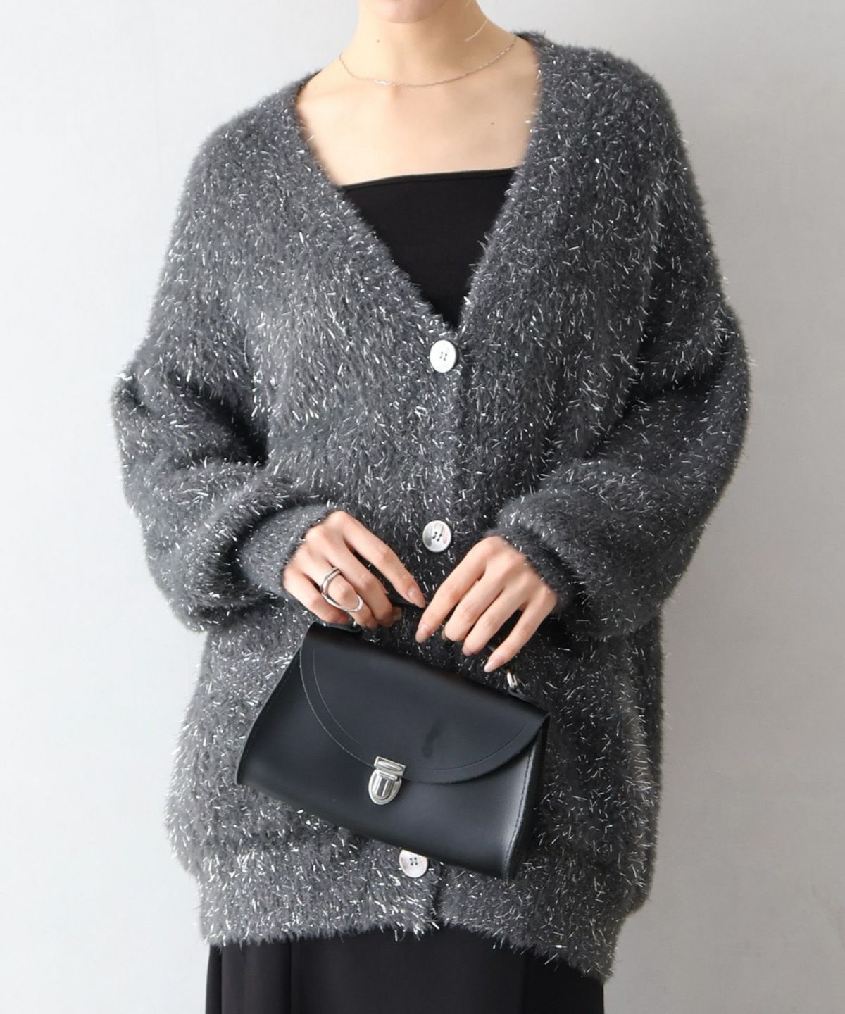 ラメシャギーロングVネックカーディガン